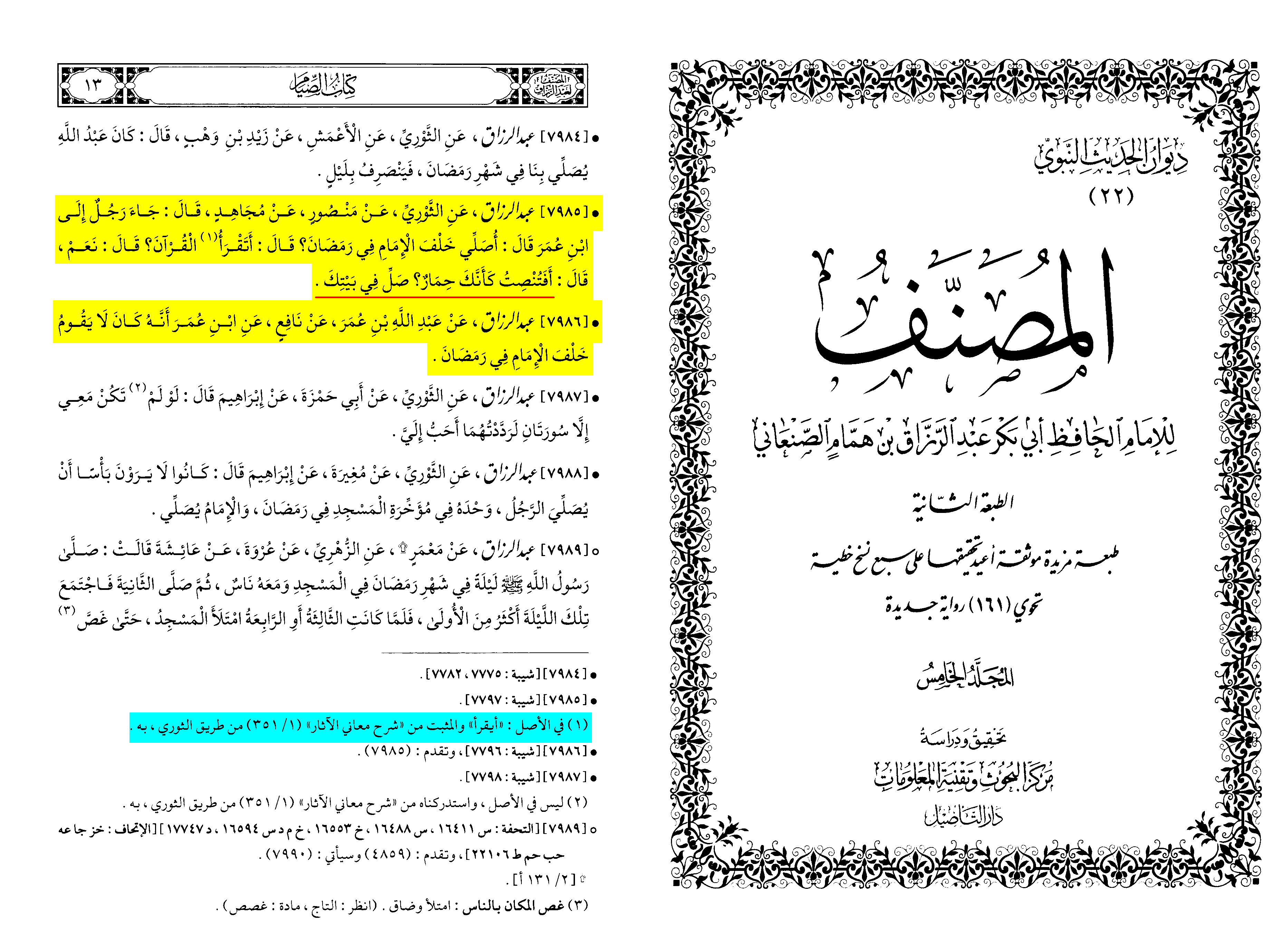 In this narration, we find several indications regarding the history of Tarāwīh and its origin.