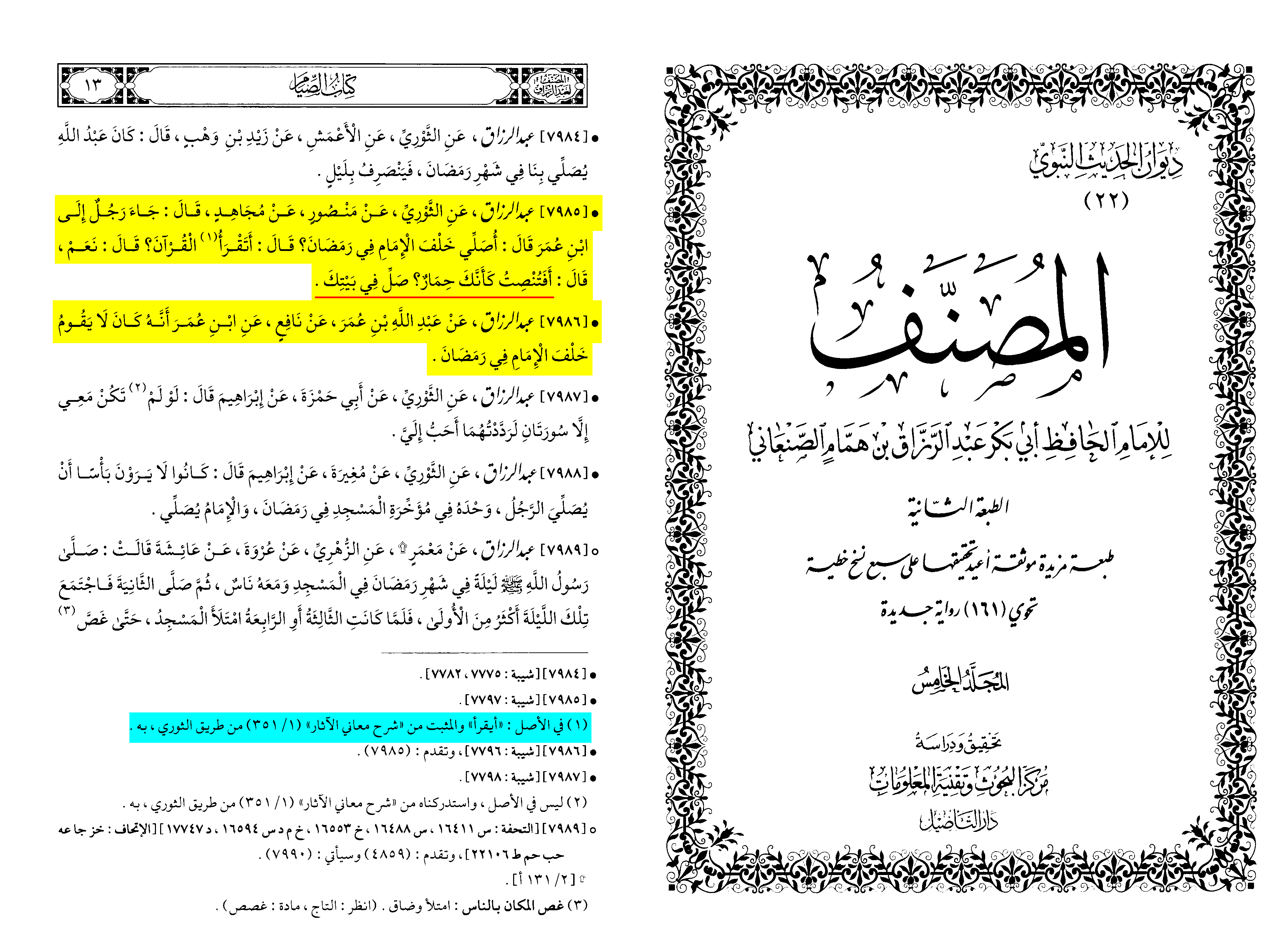 "The people used to watch the night in prayer during Ramaḍān for twenty-three units in the time of Umar b. al-Khaṭṭāb."