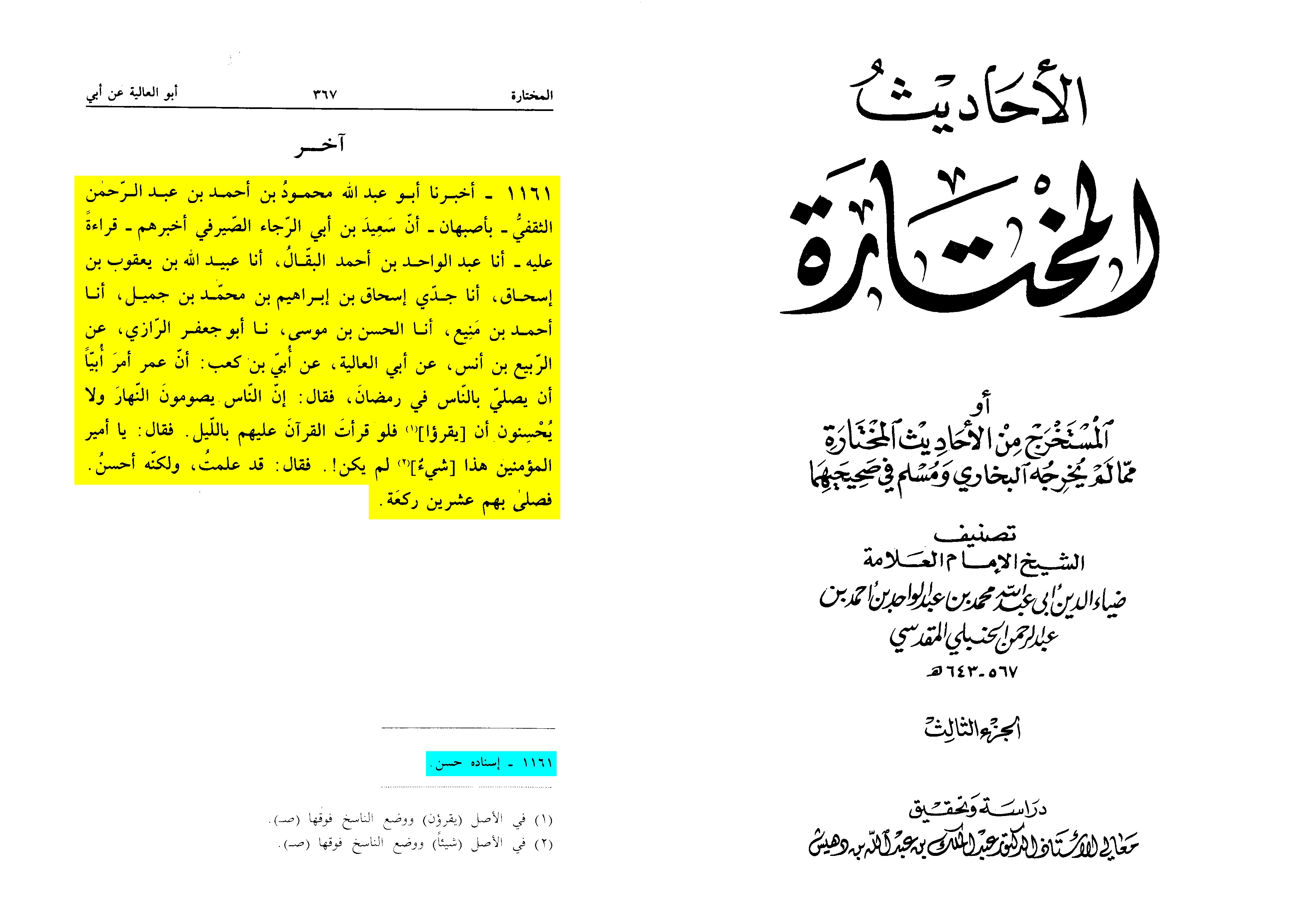 Ubayy replied, "O Commander of the Faithful, this is something that was not done before." Umar said, "I know, but it is good." So, he led them in twenty units (units of prayer).