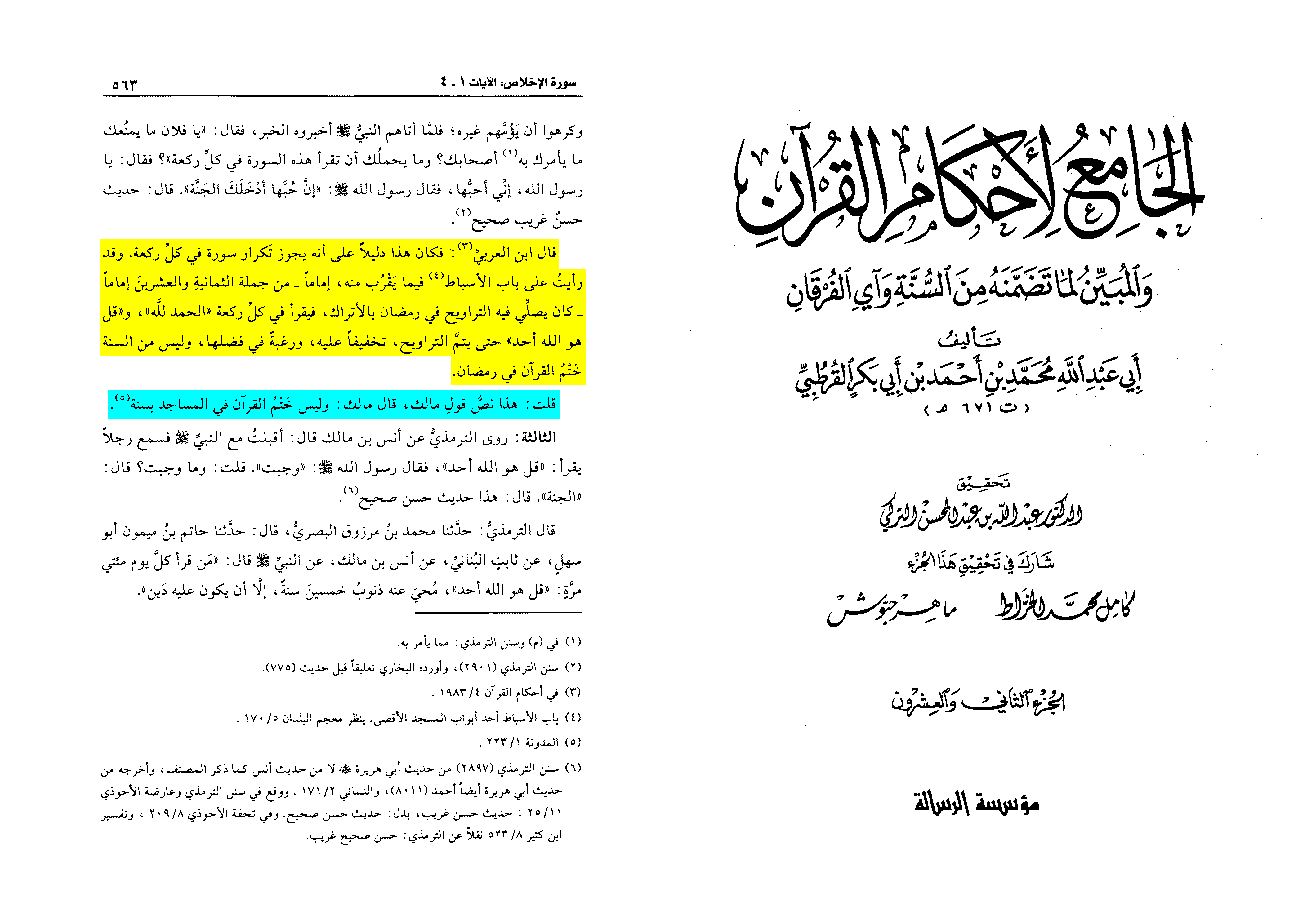Ibn al-’Arabi al-Māliki said: “It is not from the Sunnah to complete the Qur’an in Ramadān (i.e in congregation).”