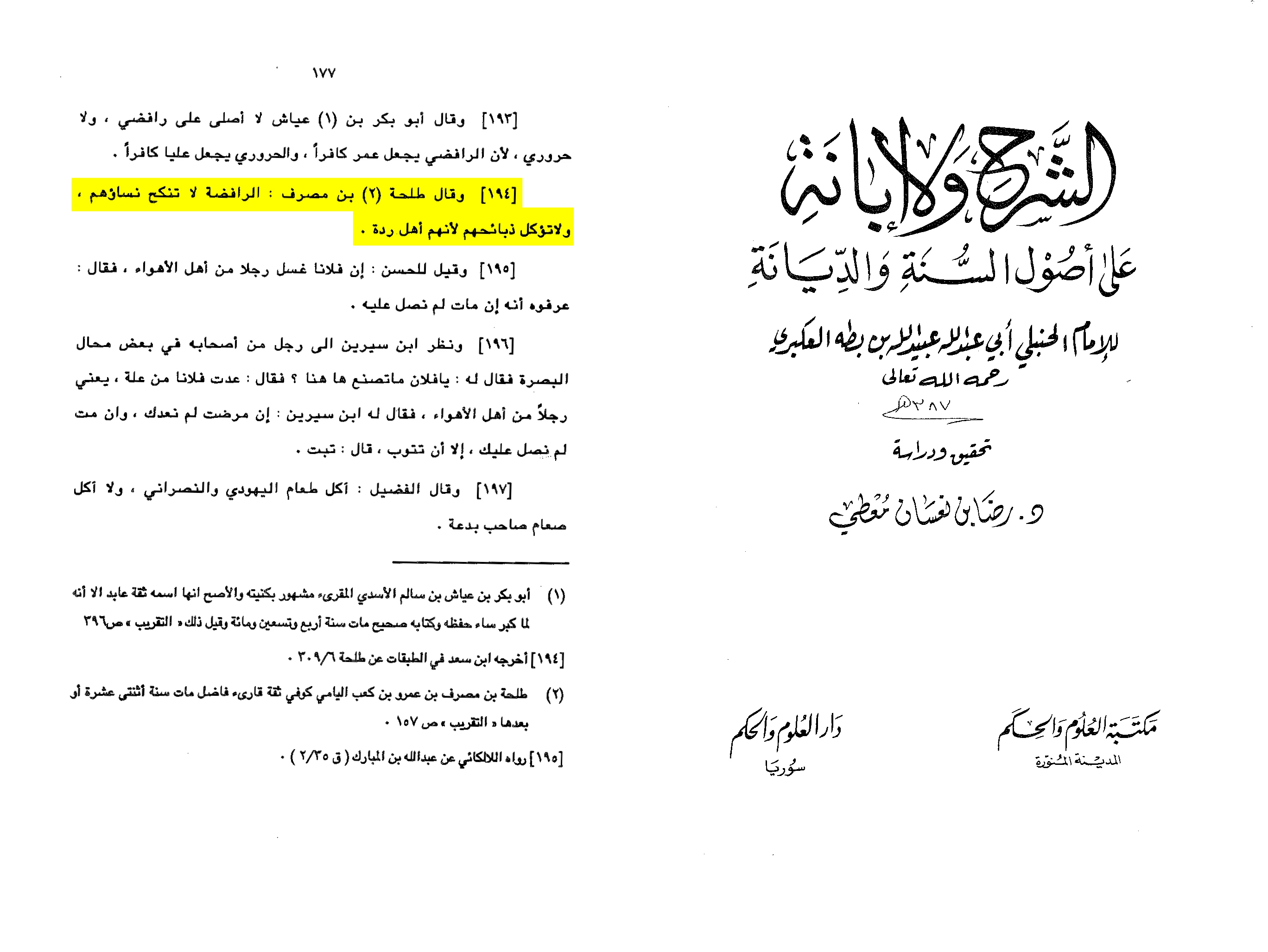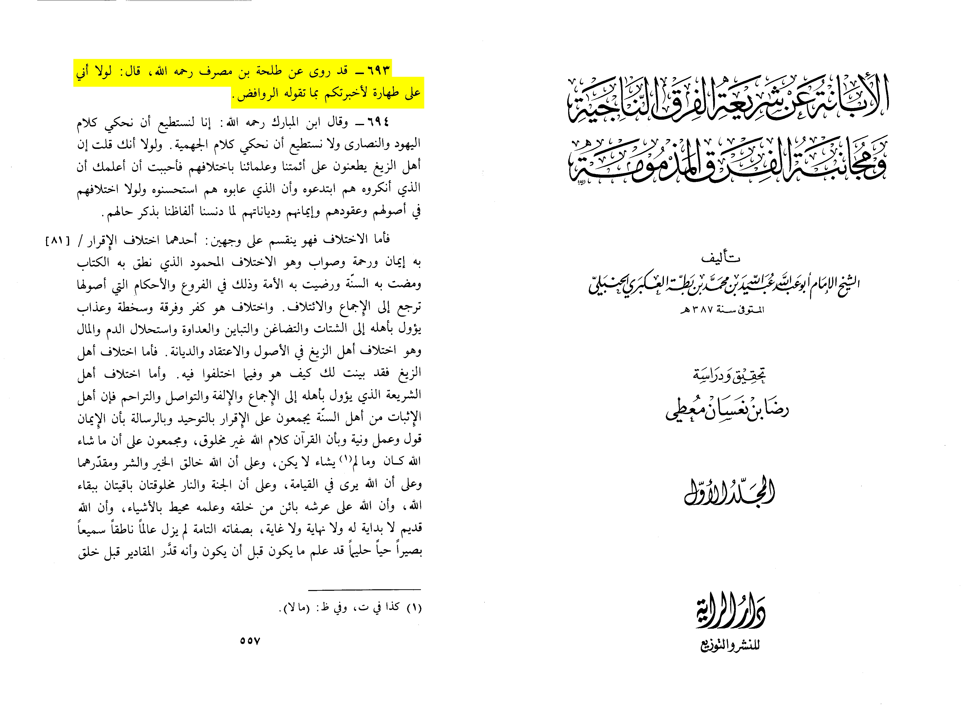 Yet, we read in the following report recorded by Ibn Battah in his Kitab al-Sharh wal-Ibanah, pg. 177 & in his al-Ibana, pg. 557: