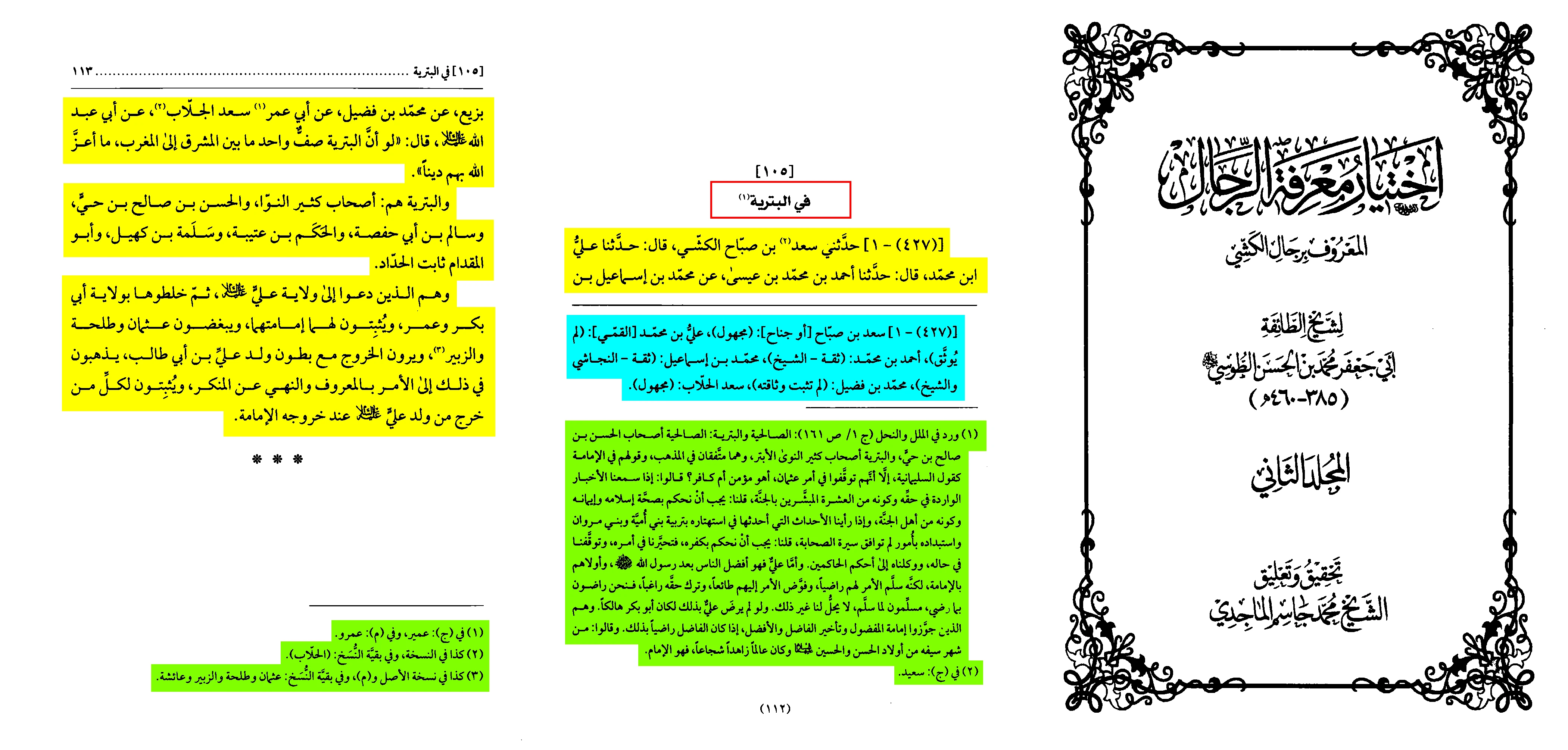 Earlier on pg. 113, al-Kashi explains that al-Batriyya were a sect who accepted and endorsed the imamate of Abu Bakr & Umar.