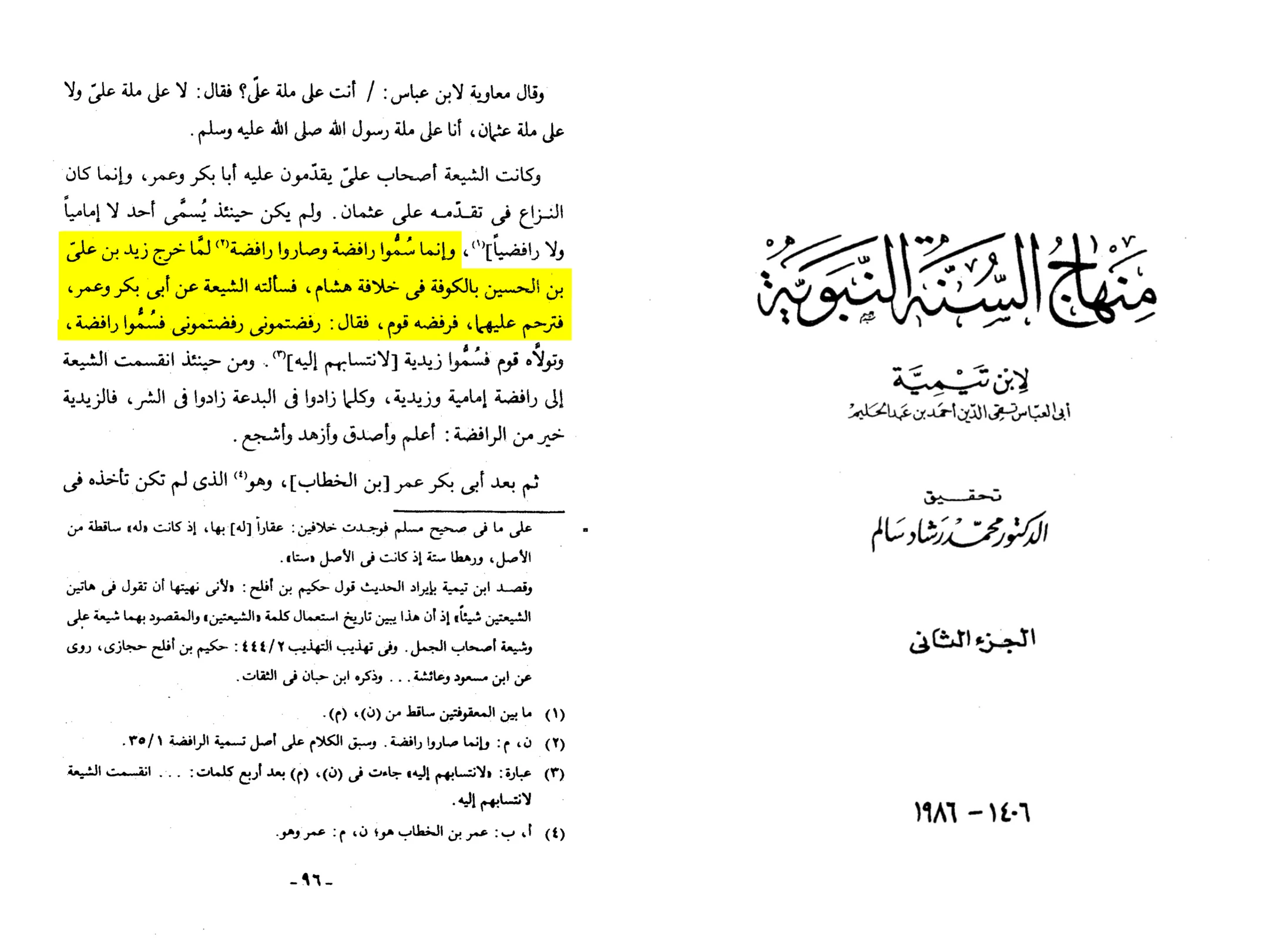 Firstly, the Rafida existed as a group way before Zayd’s uprising and this is well-known to any researcher & historian. In fact, this should’ve been clear to Ibn Taymiyyah himself as he conceded that there were Tabi’een who used this word long before.