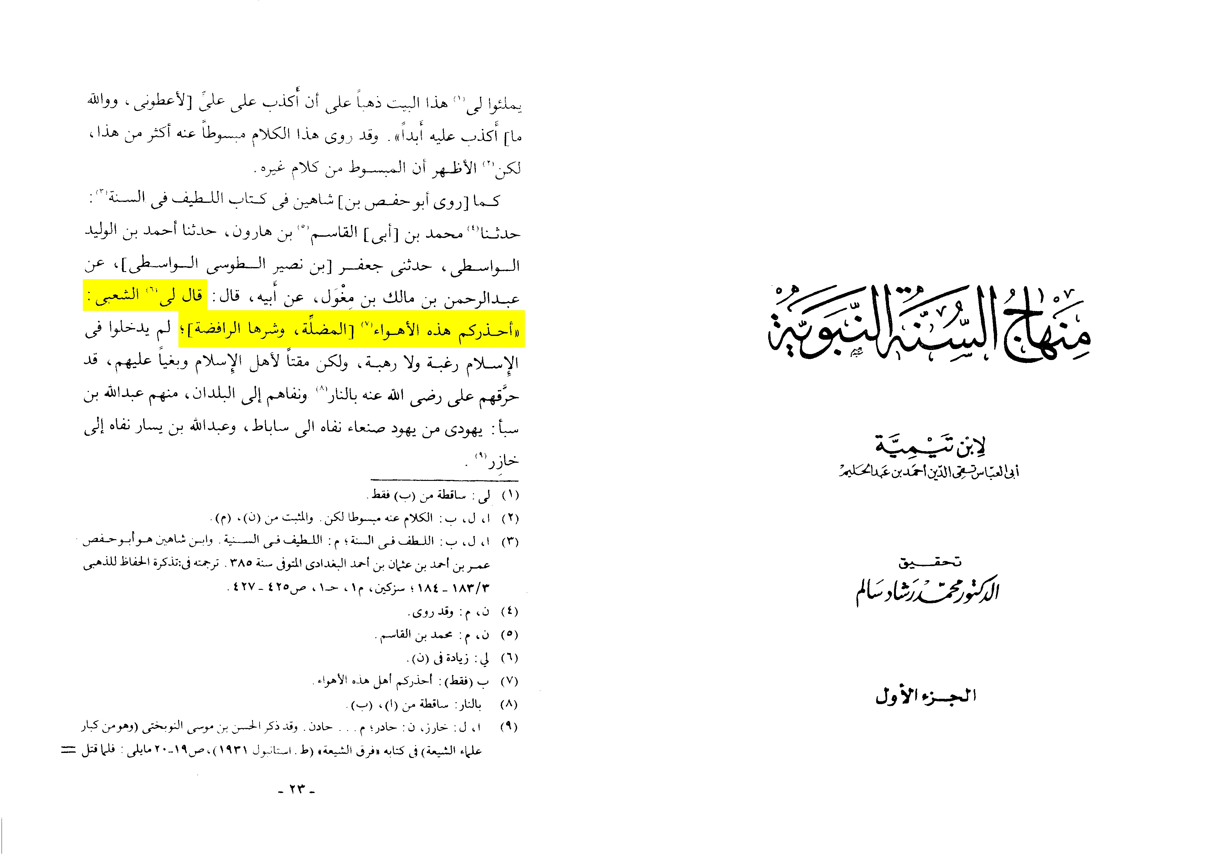 For example, earlier in his book he says in Minhaj al-Sunnah Vol. 1, pg. 23: