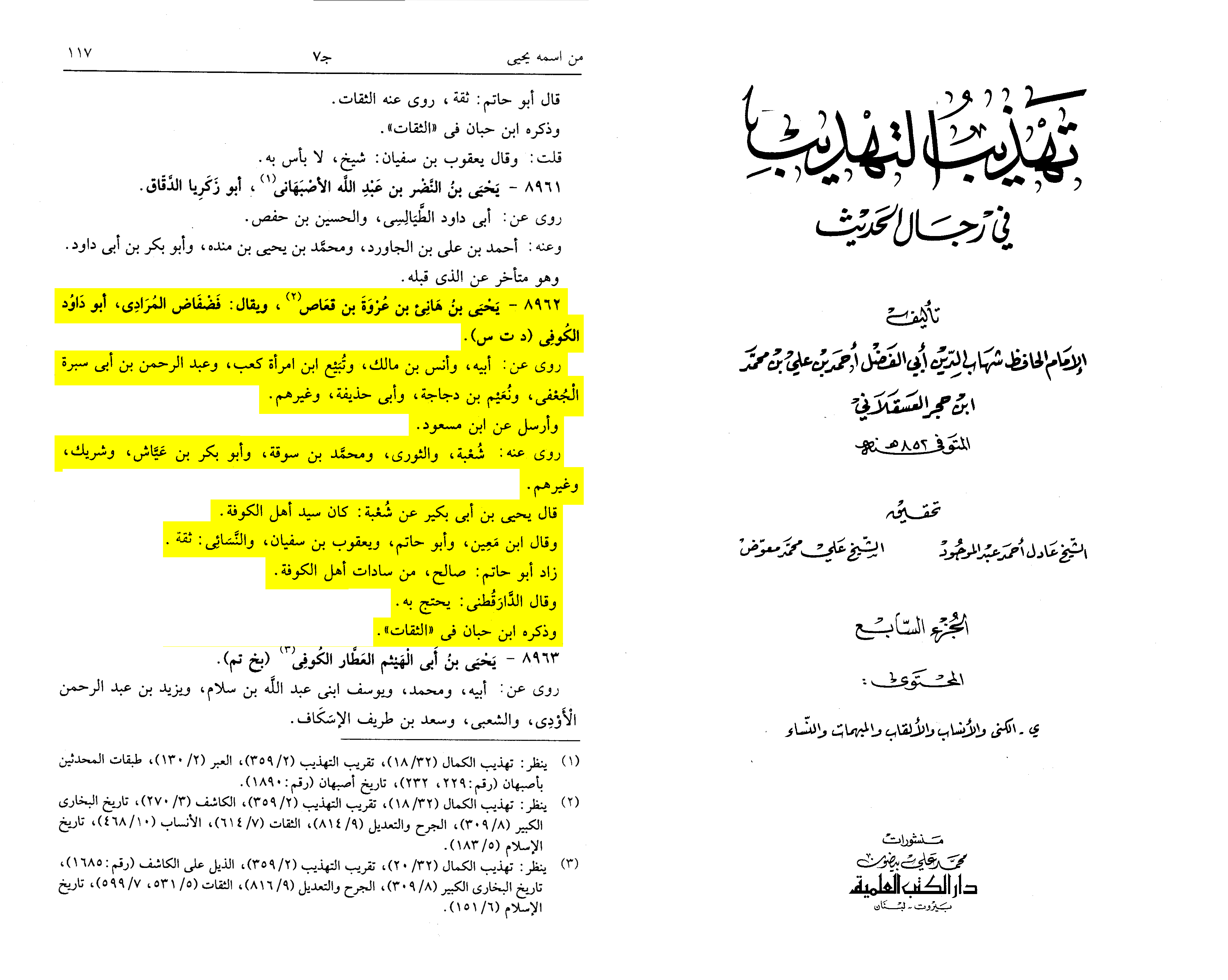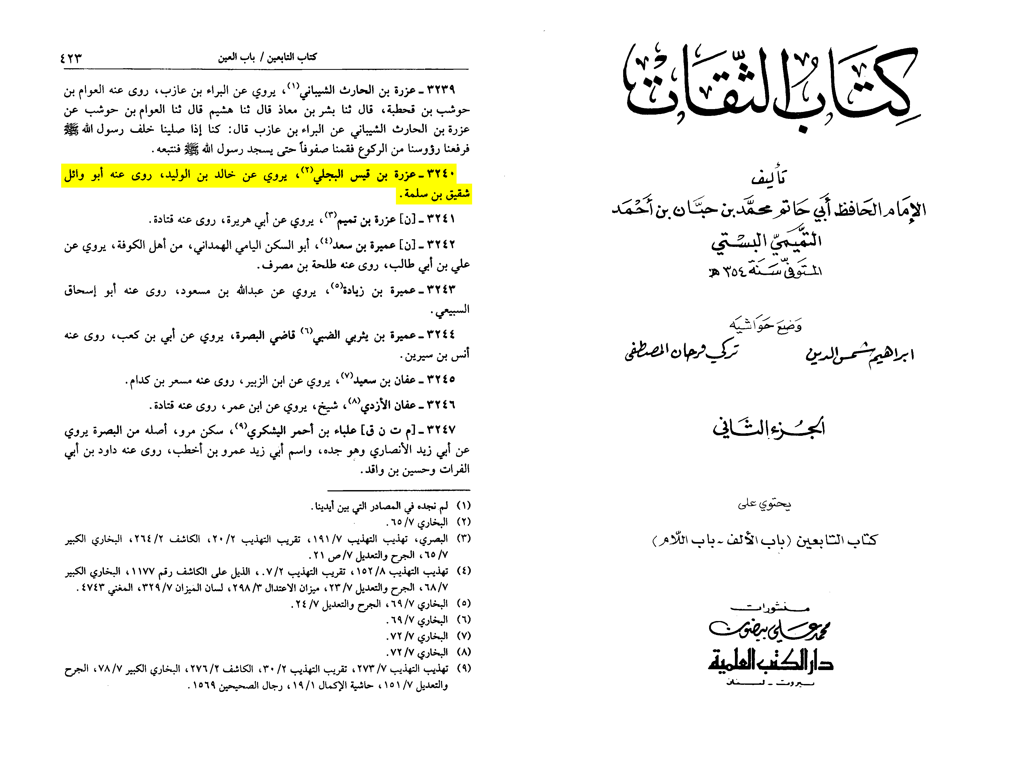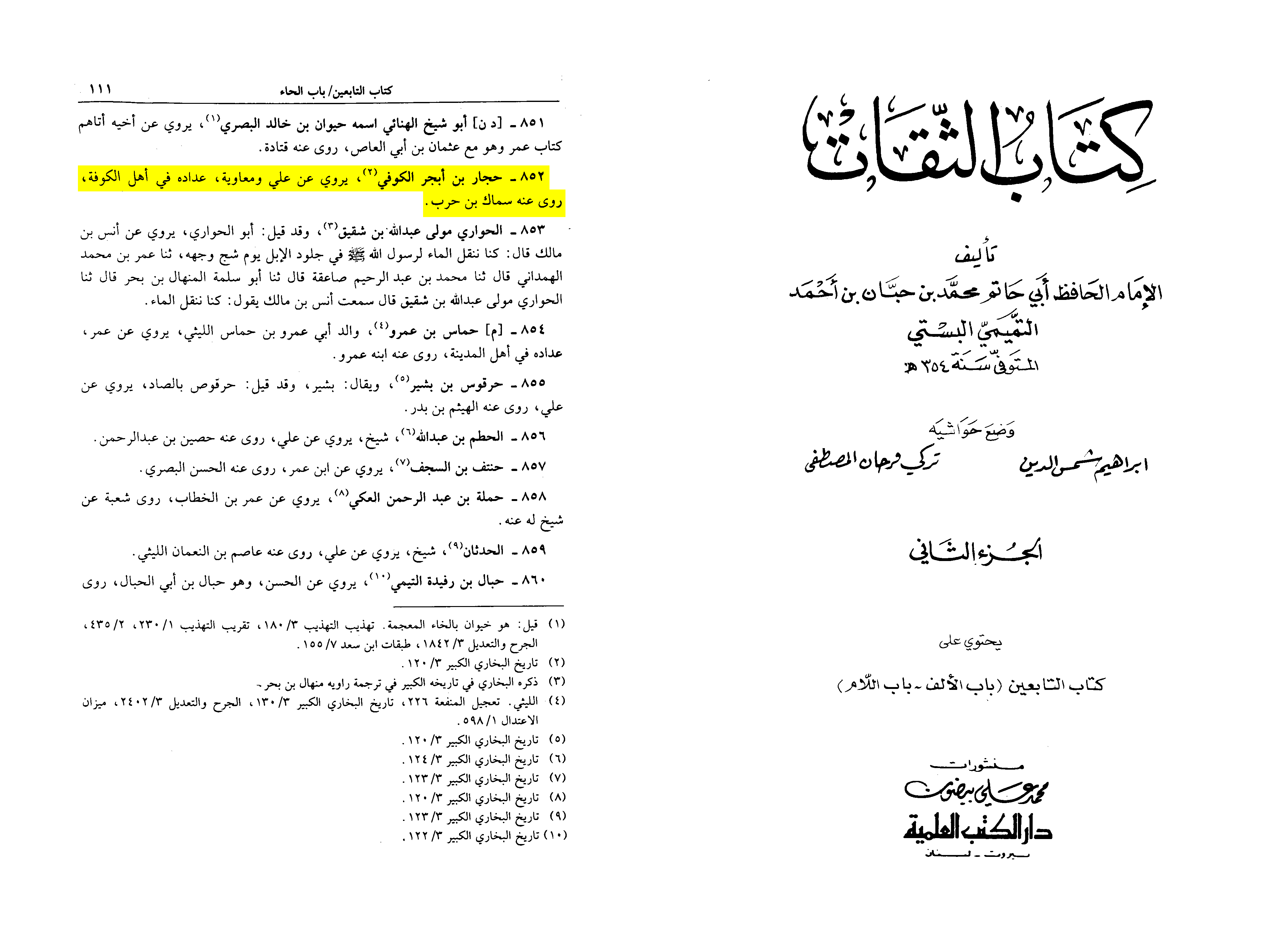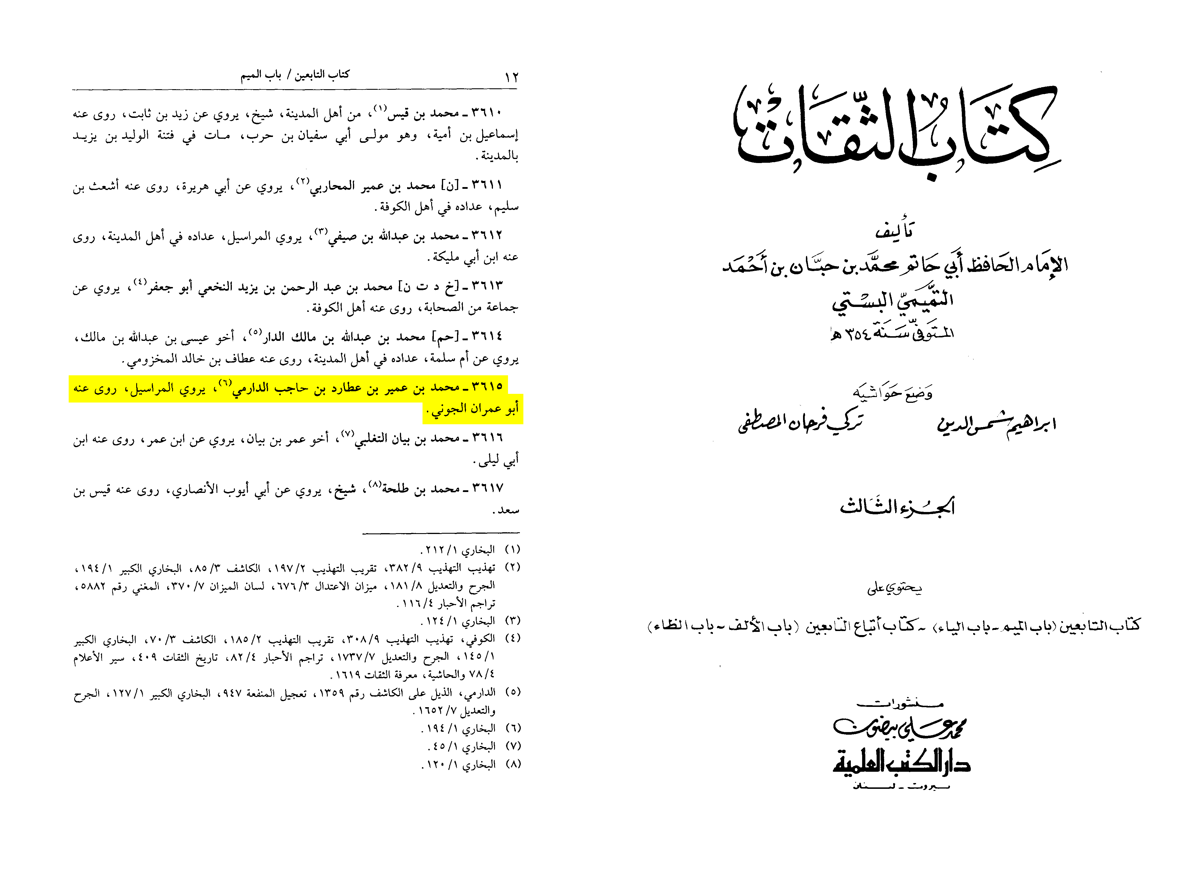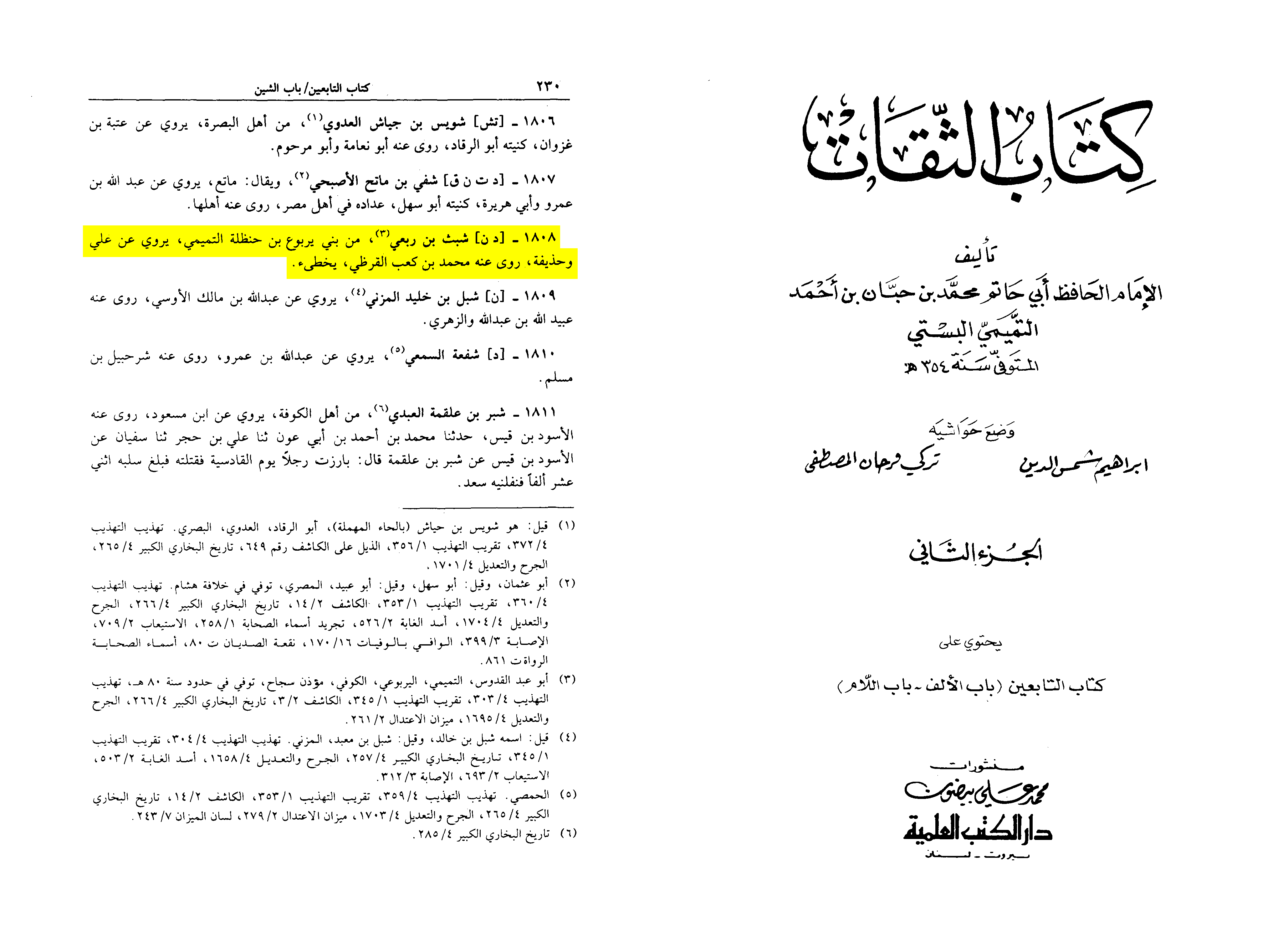 This includes Ibn Hibban who included him in his Kitab al-Thiqat, vol. 2, pg. 230, Bio # 1808, and al-’Ijli in his own Tarikjh al-Thiqat pg. 214 Bio # 652.