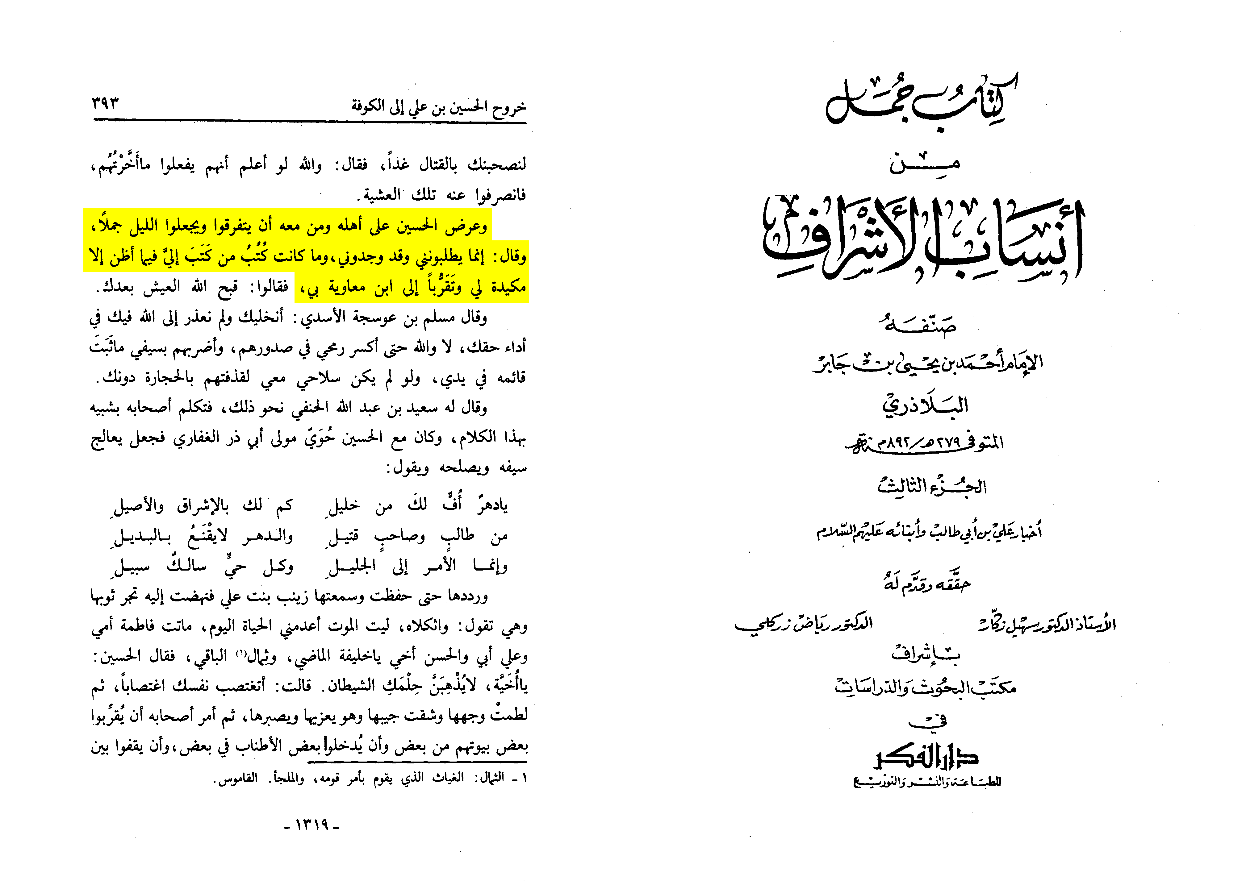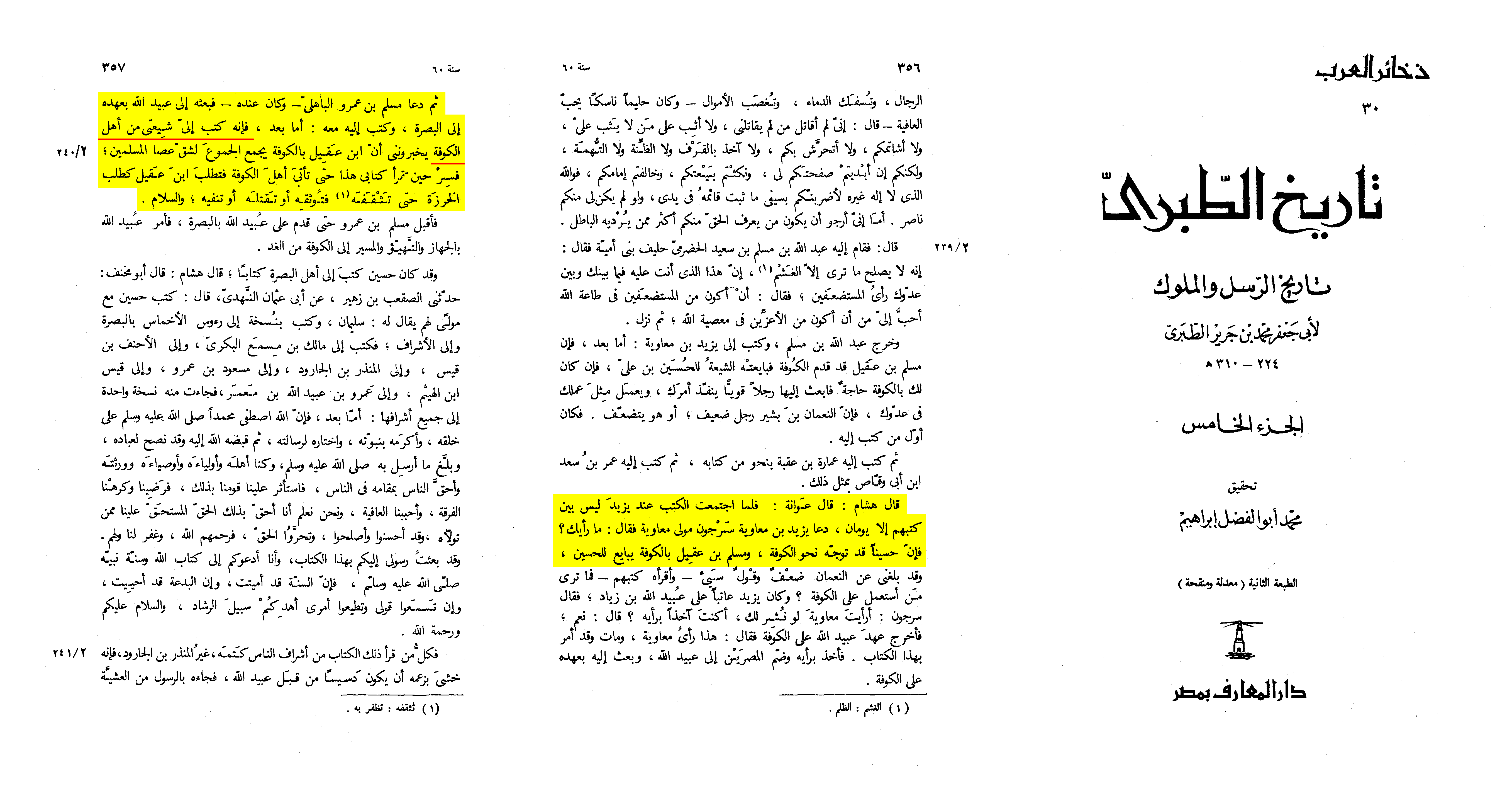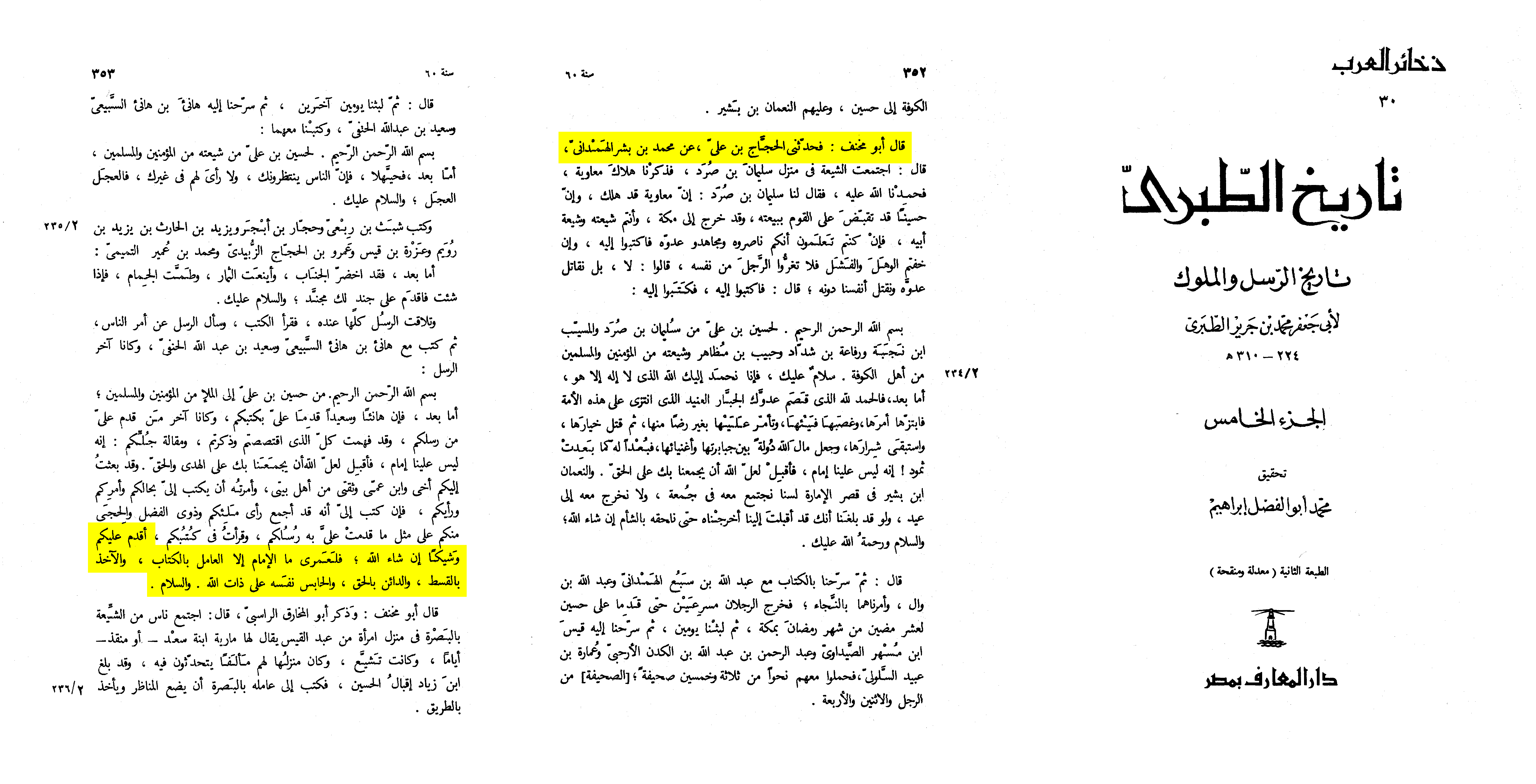 “My followers (Shi’a) among the people of Kufa have written to me to inform me that Ibn Aqil is in al-Kufah gathering units in order to spread the rebellion among the Muslims…”.