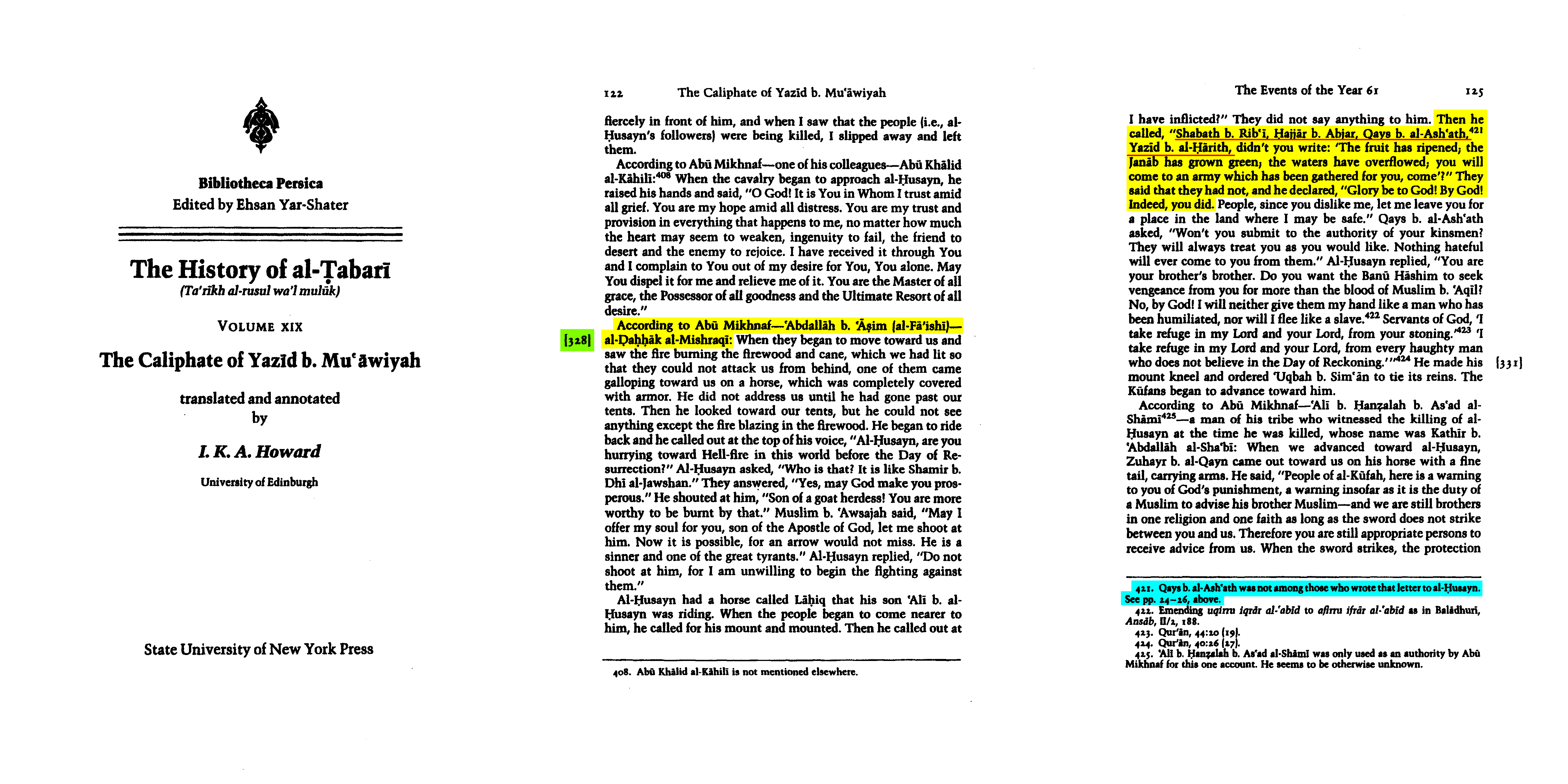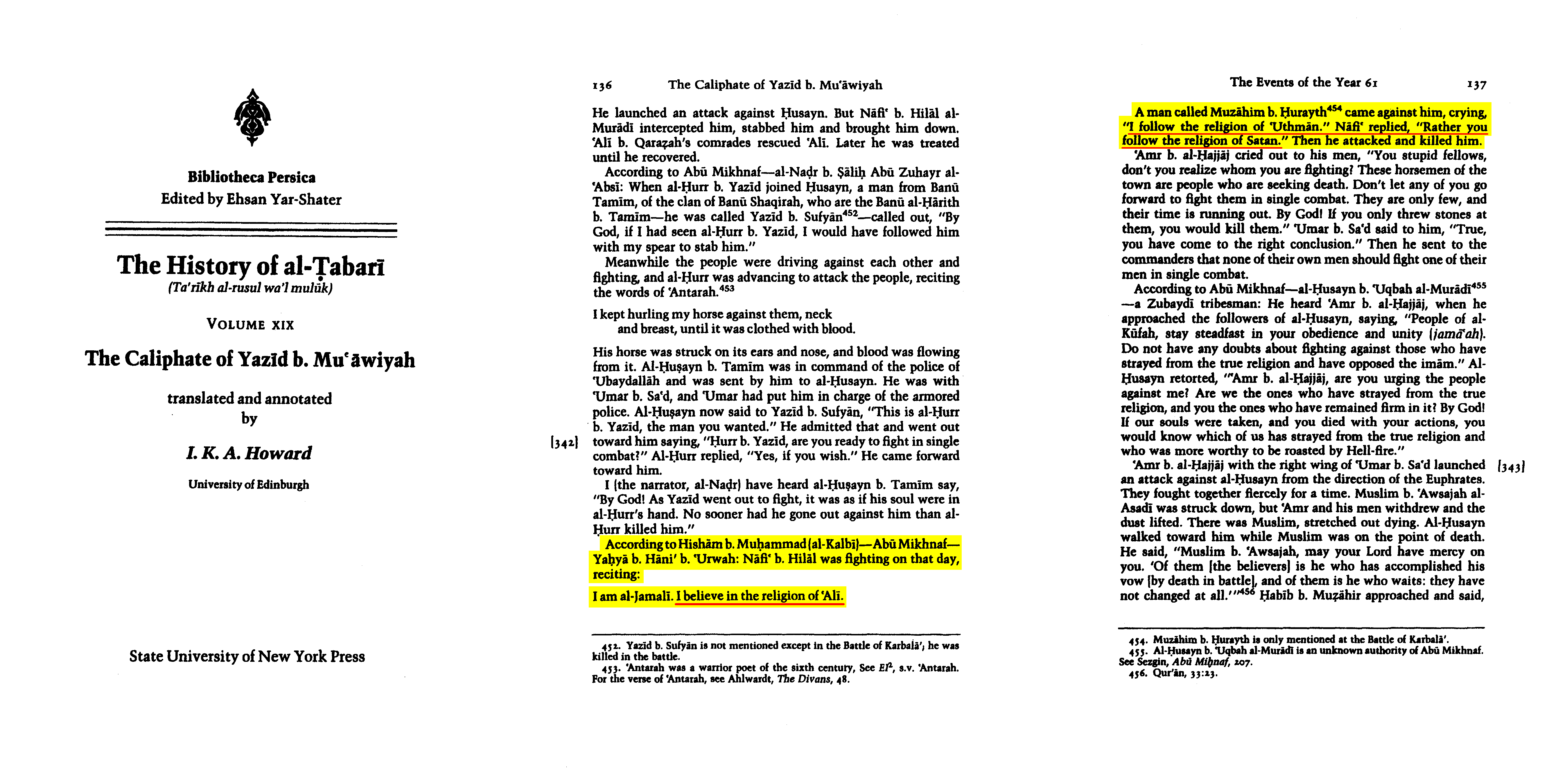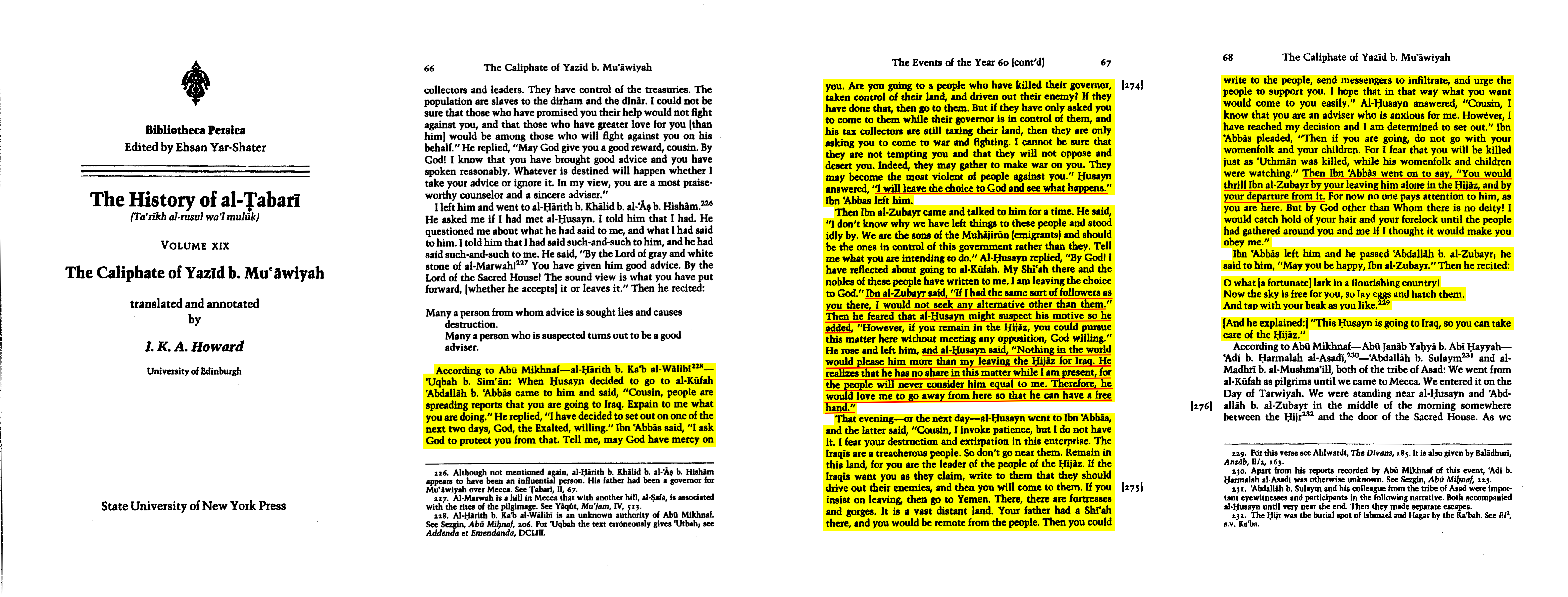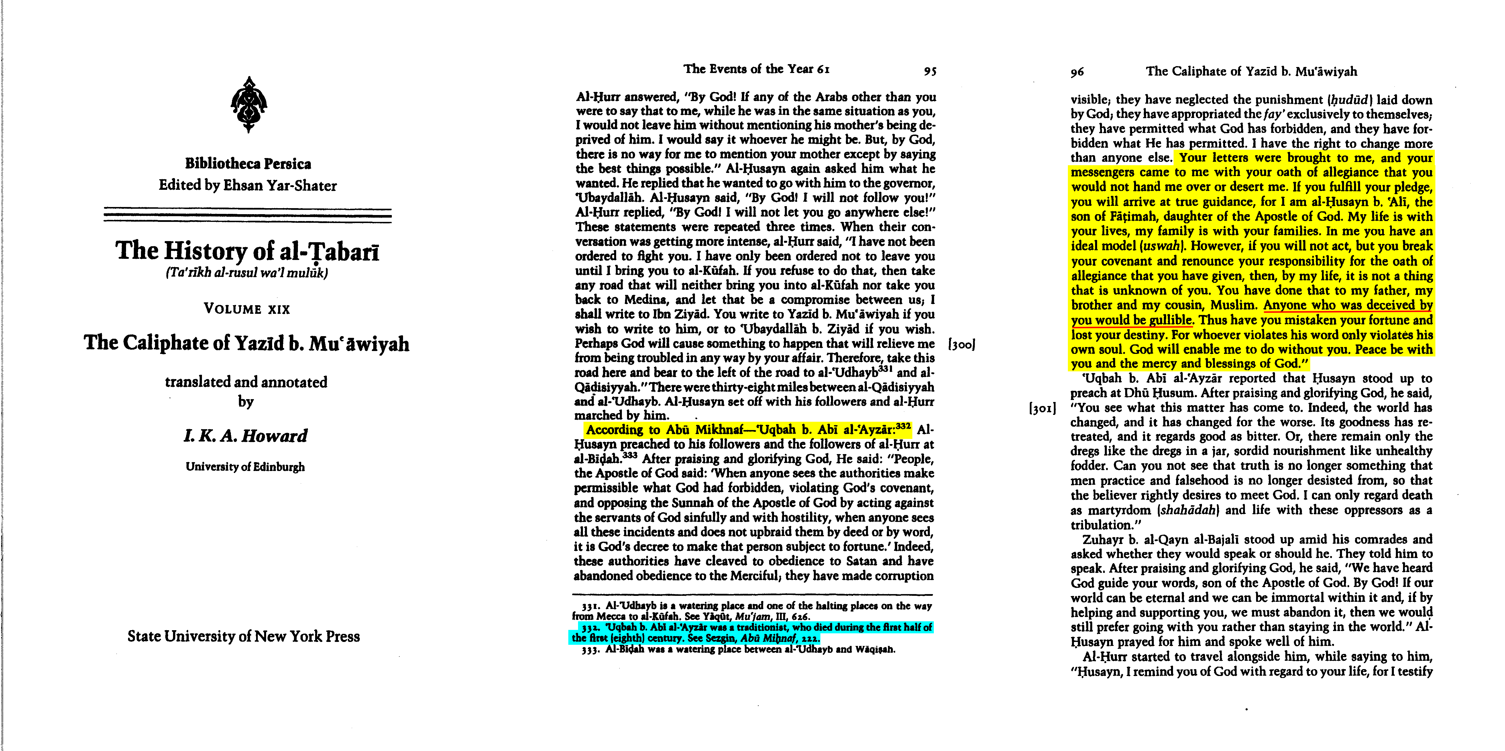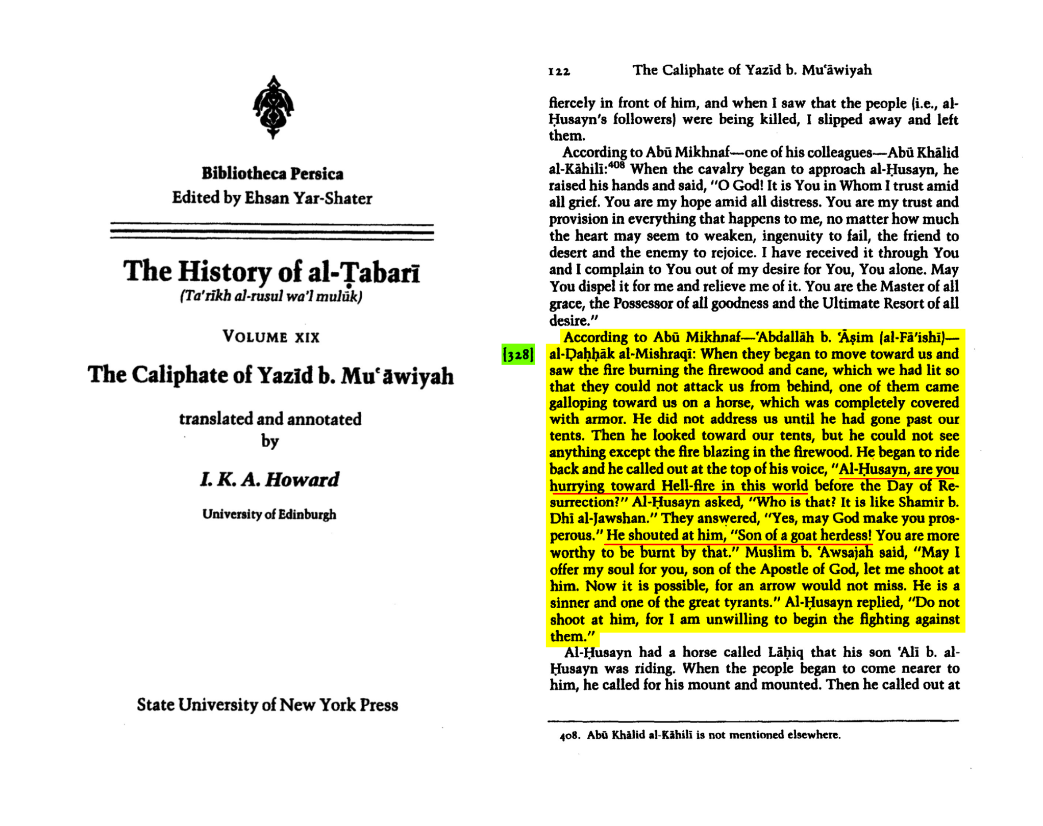 ‘One of those horsemen, who was keeping watch over us, heard Husayn. He cried out, ‘By the Lord of the Ka’bah! We are good, we have been distinguished from you!’.