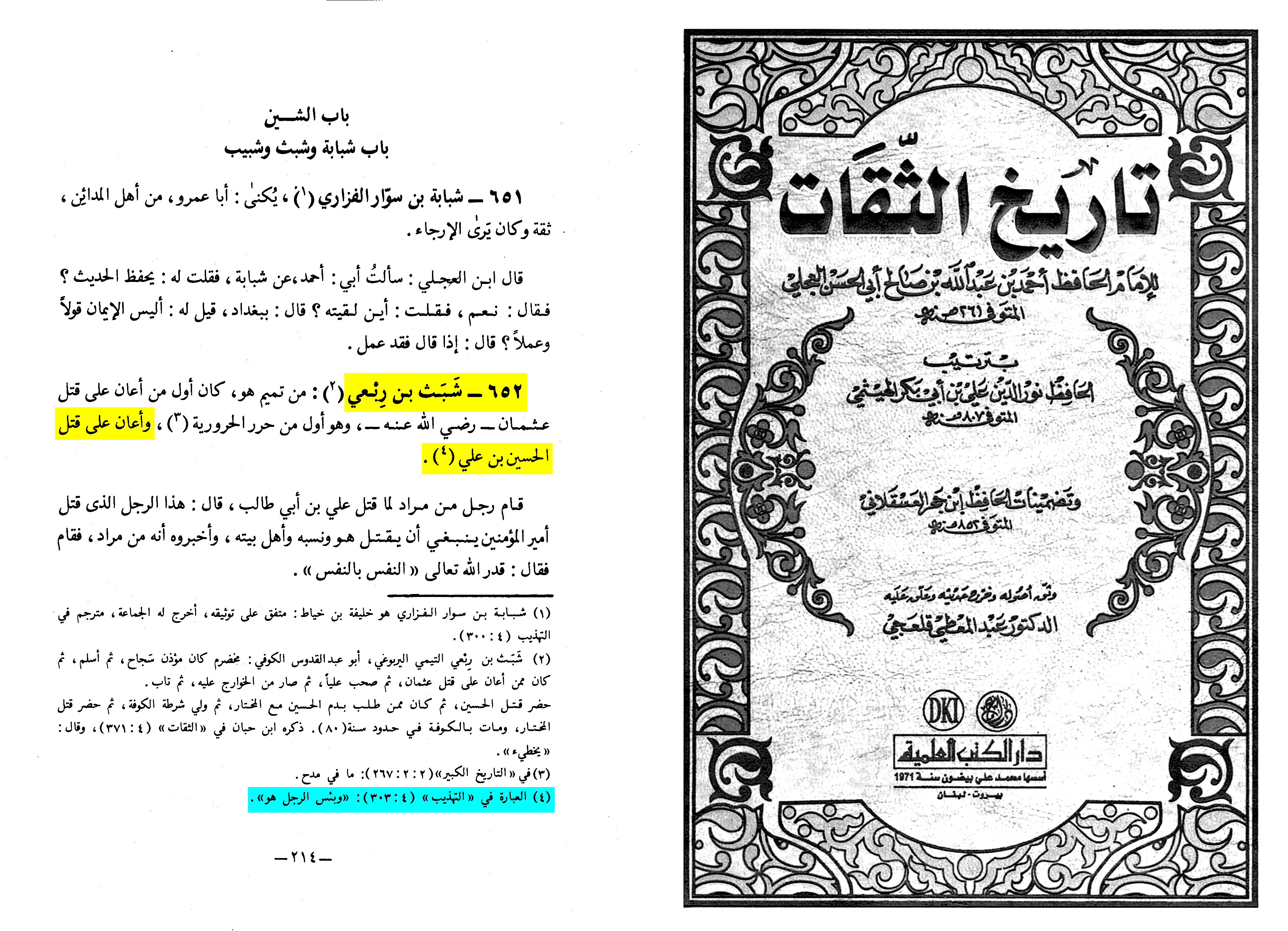 We will present further evidence from the ones we have already mentioned (such as of Shabbath, Hajjar and others) for the examples where the killers of al-Husayn (AS) were authenticated or narrated from by Ahlus Sunnah wal-Jam’a,