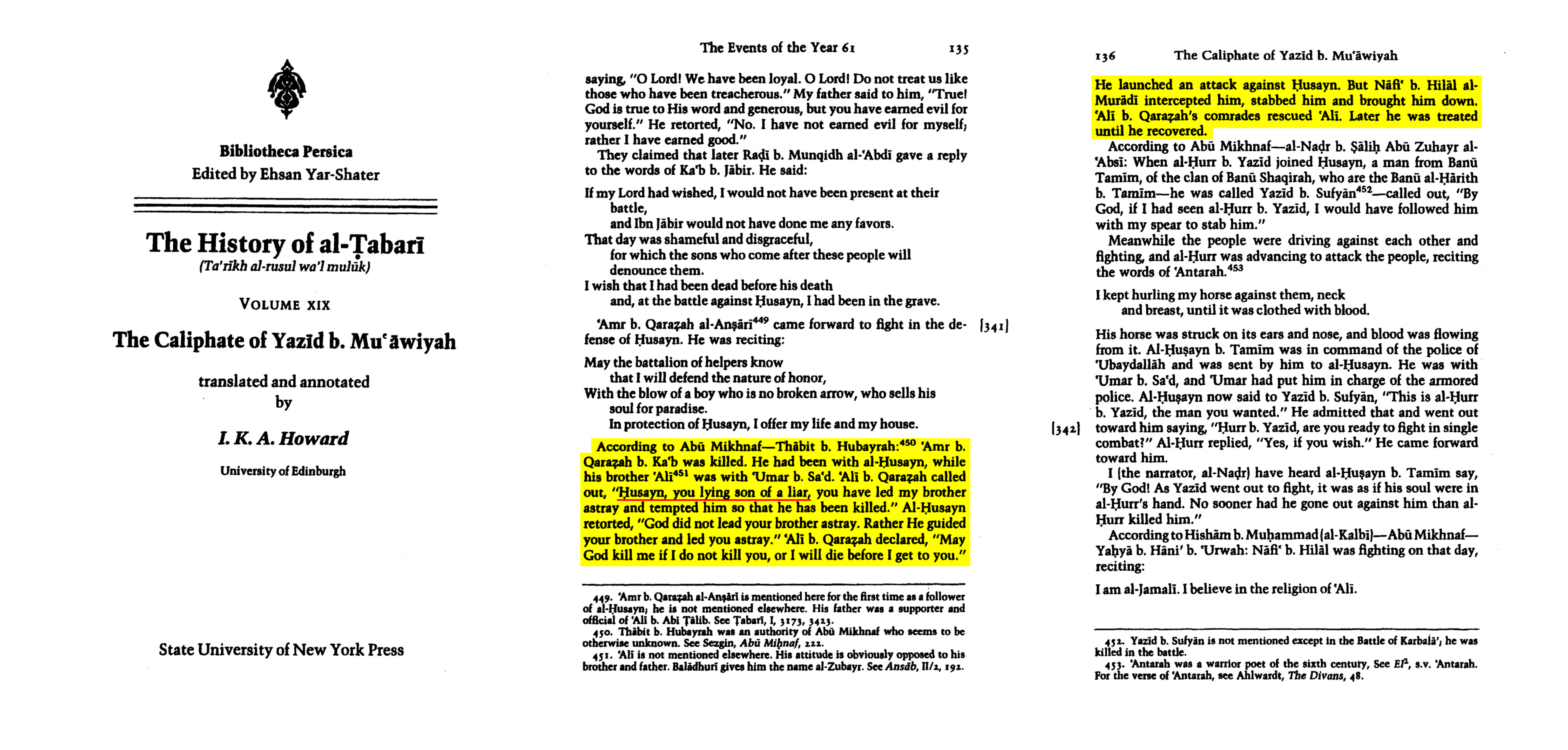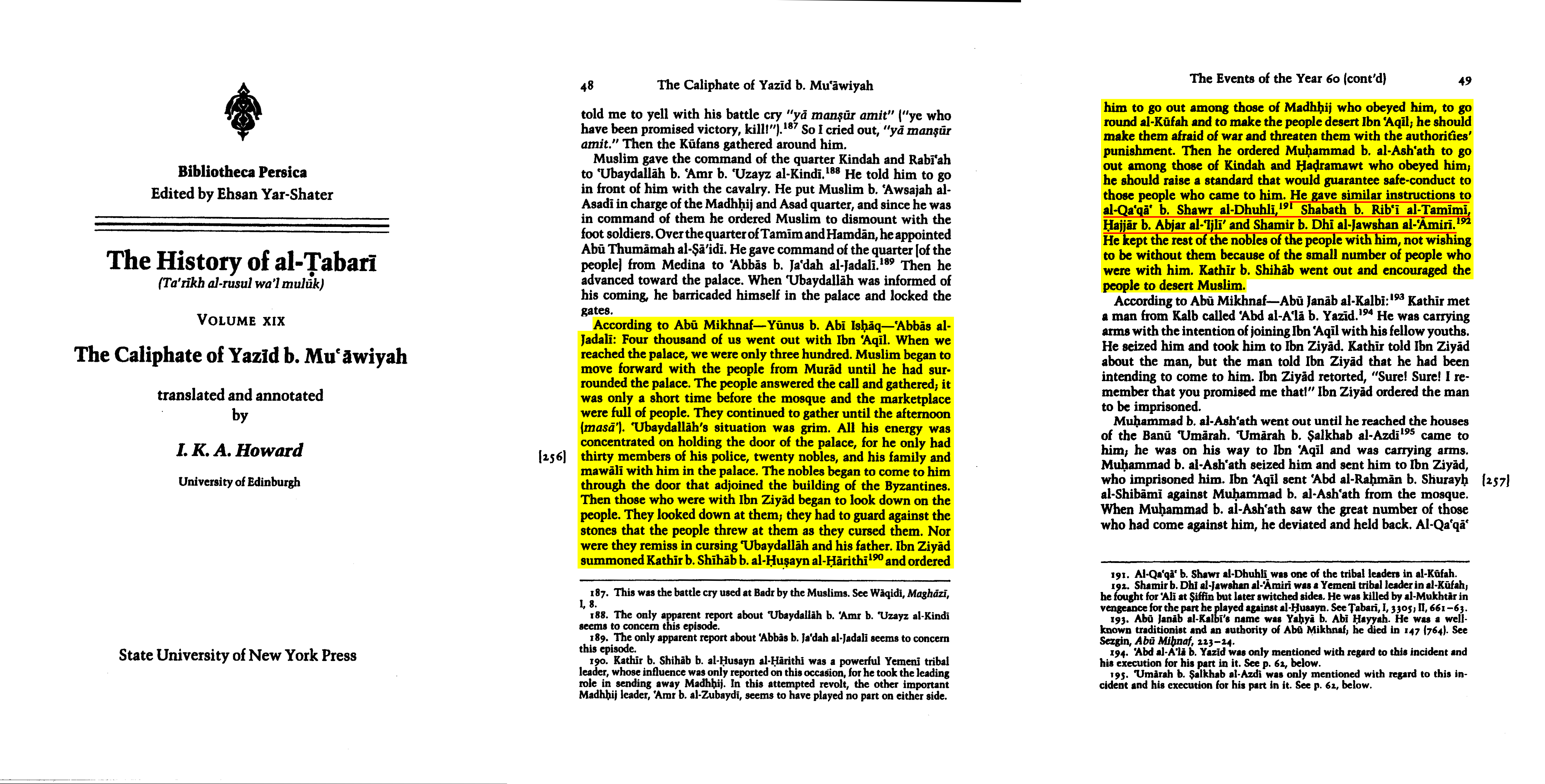 Al-Tabari records in his Tarikh al-Tabari, vol. 19, pg. 175 - 6: [Arabic]