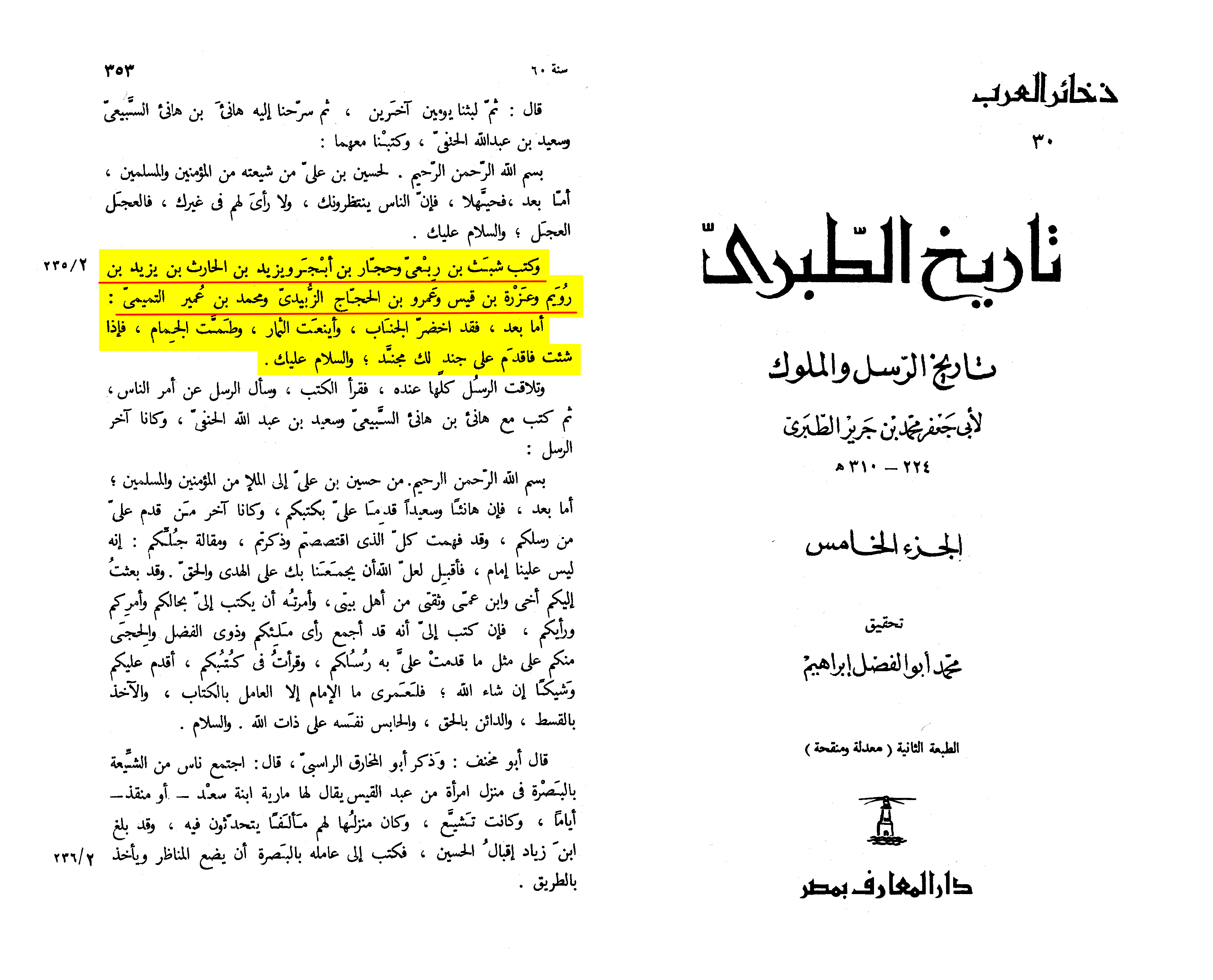 These same people would later on to be on the enemy side of Imam al-Husayn (AS) and be from his killers, denying to have ever said these letters as we see later on in Tarikh of Tabari Vol. 19, pg. 122 - 125: