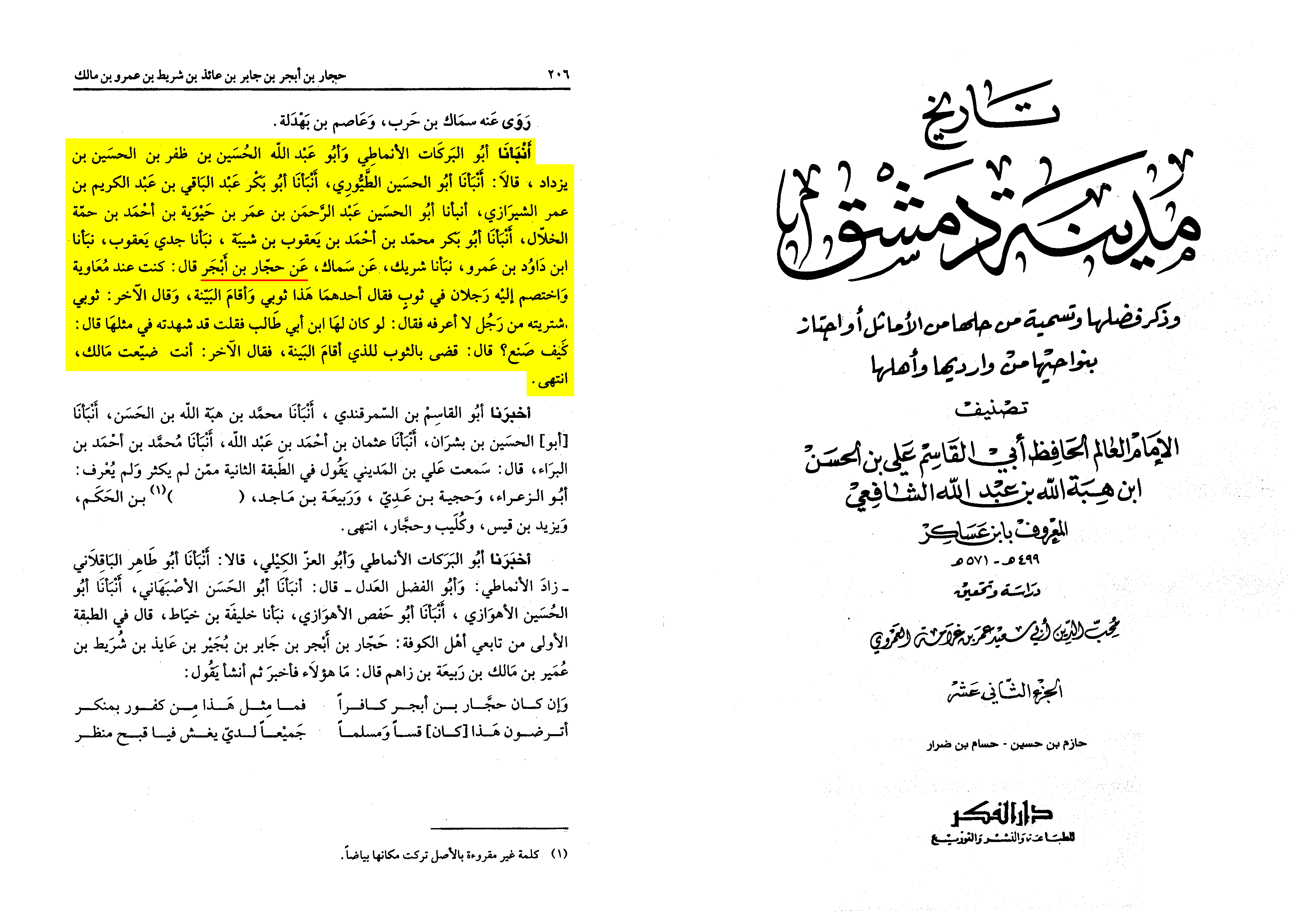 Muhammad b. al-Ash’ath: We mentioned earlier under ‘Amr b. Hurayth that he was commanded by Ibn Ziyad to collect Muslim b. ‘Aqil (AS), and then he was killed after. An associate of this murder was Muhammad b. al-Asha’th, the head of the Umayyad police force. He is- without surprise an accepted and praised narrator in the Sunni corpus. Al-Dhahabi counted him among the narrators in the six main Sunni books in al-Kashif Vol 2 pg. 158, Bio # 4731, and Ibn Hajar affirmed that he is an acceptable (maqbul) narrator in Taqrib al-Tahdhib pg. 525, Bio # 5742.