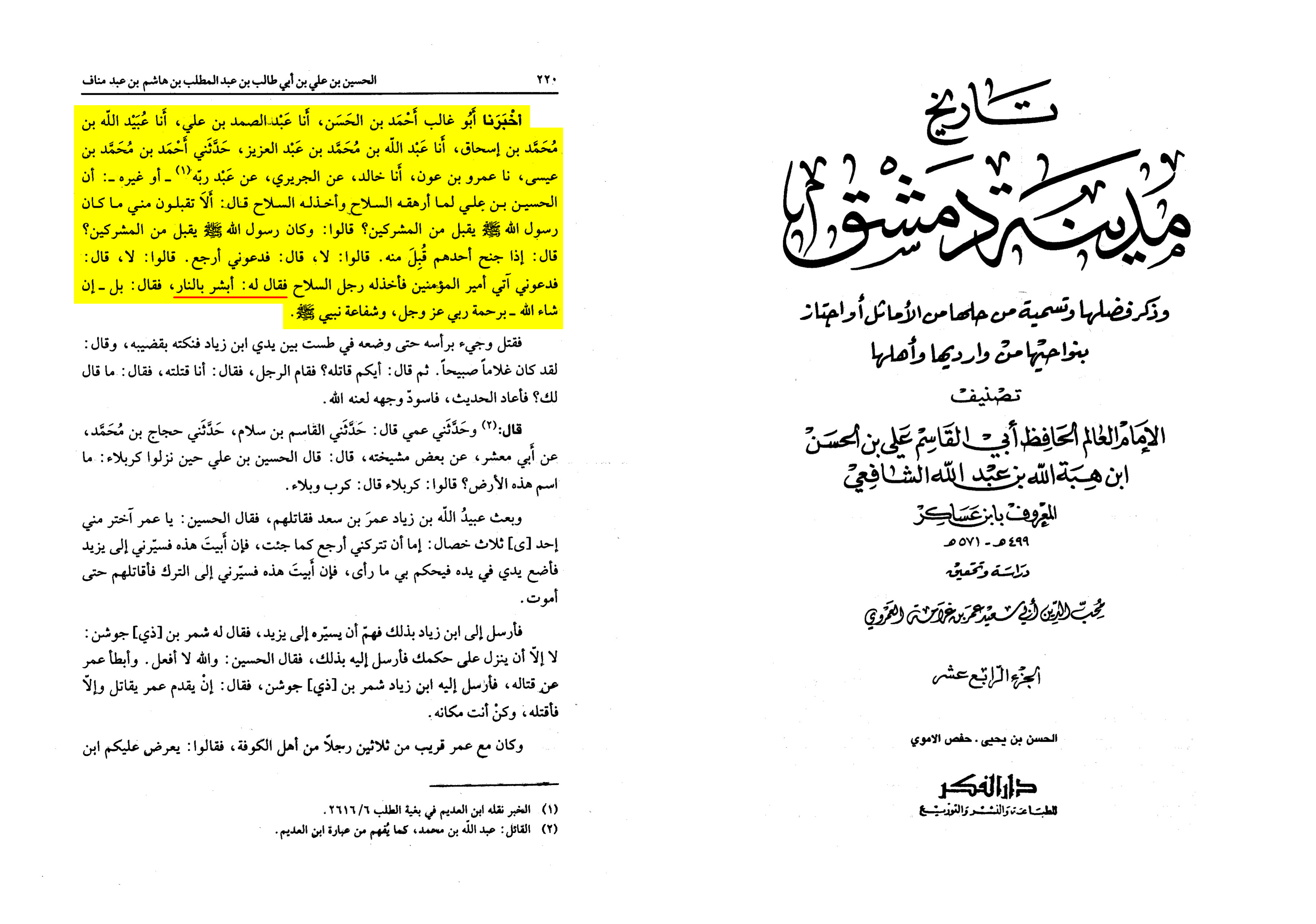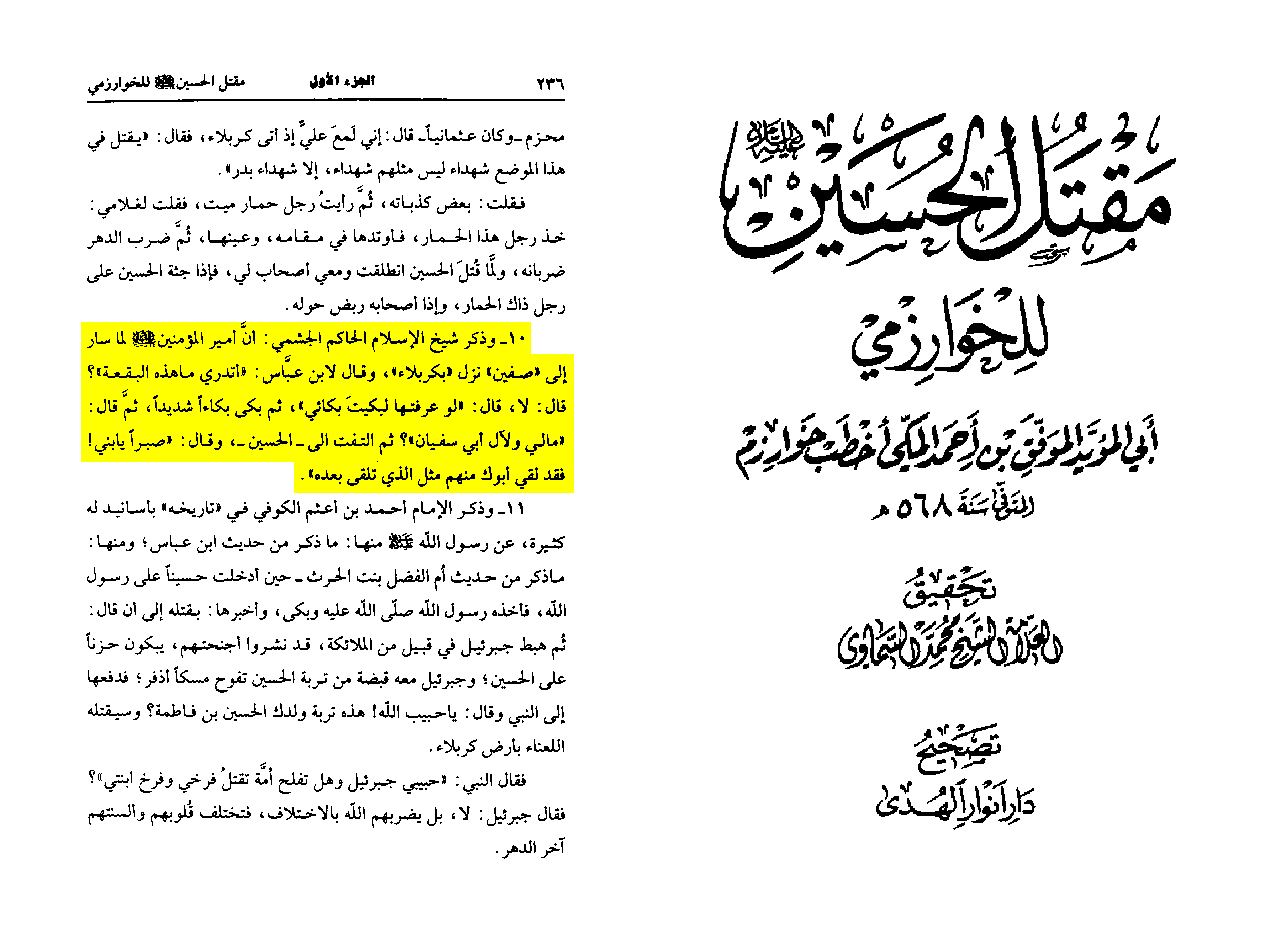 And Shaykh al-Islām al-Ḥākim al-Jushmī mentioned: When the Commander of the Faithful (ʿAlī) marched to Ṣiffīn, he stopped at Karbalāʾ and said to Ibn ʿAbbās: