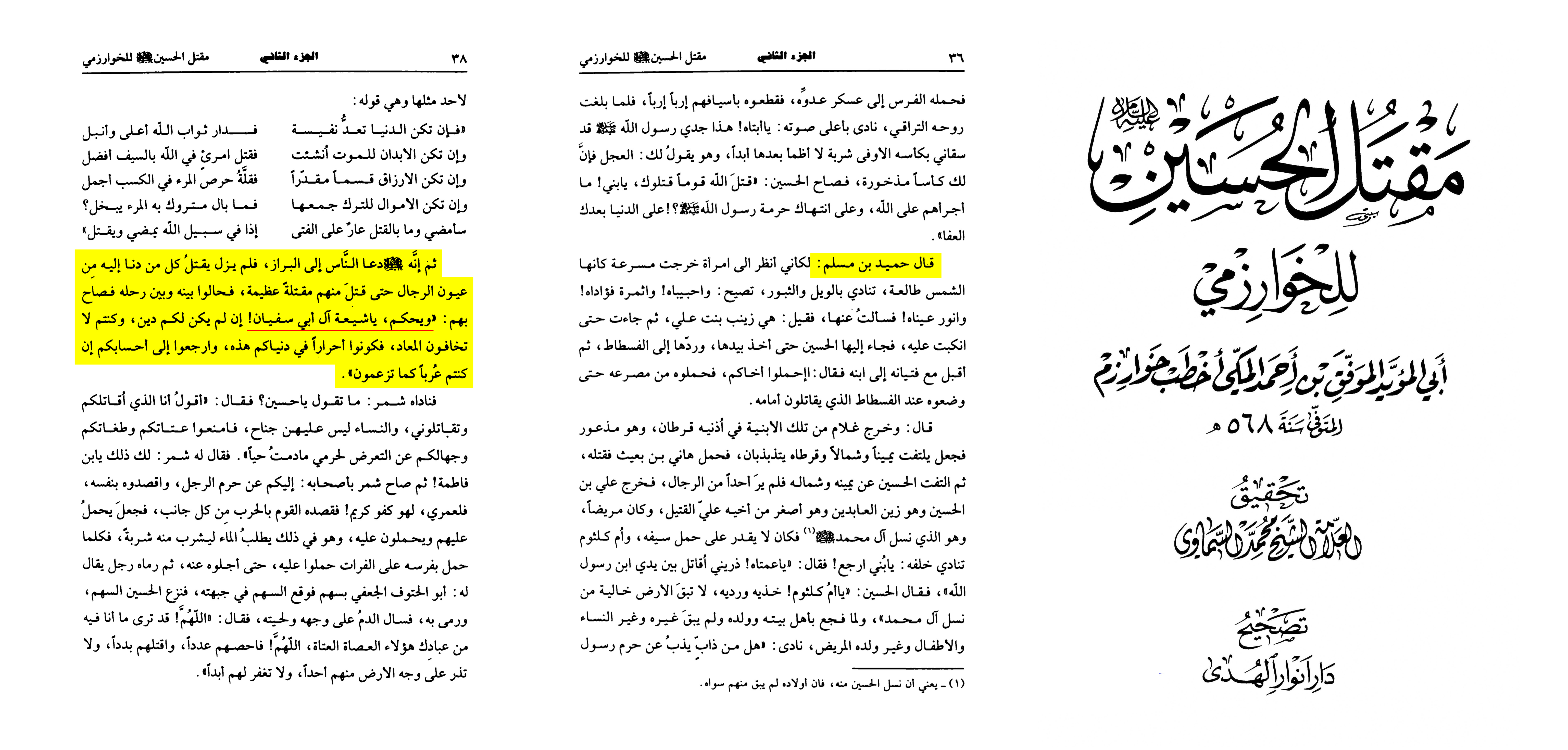 In another report Imam al-Husayn (AS) says this in al-Khwarazmi’s Maqtal al-Husayn, vol. 2, p. 38: