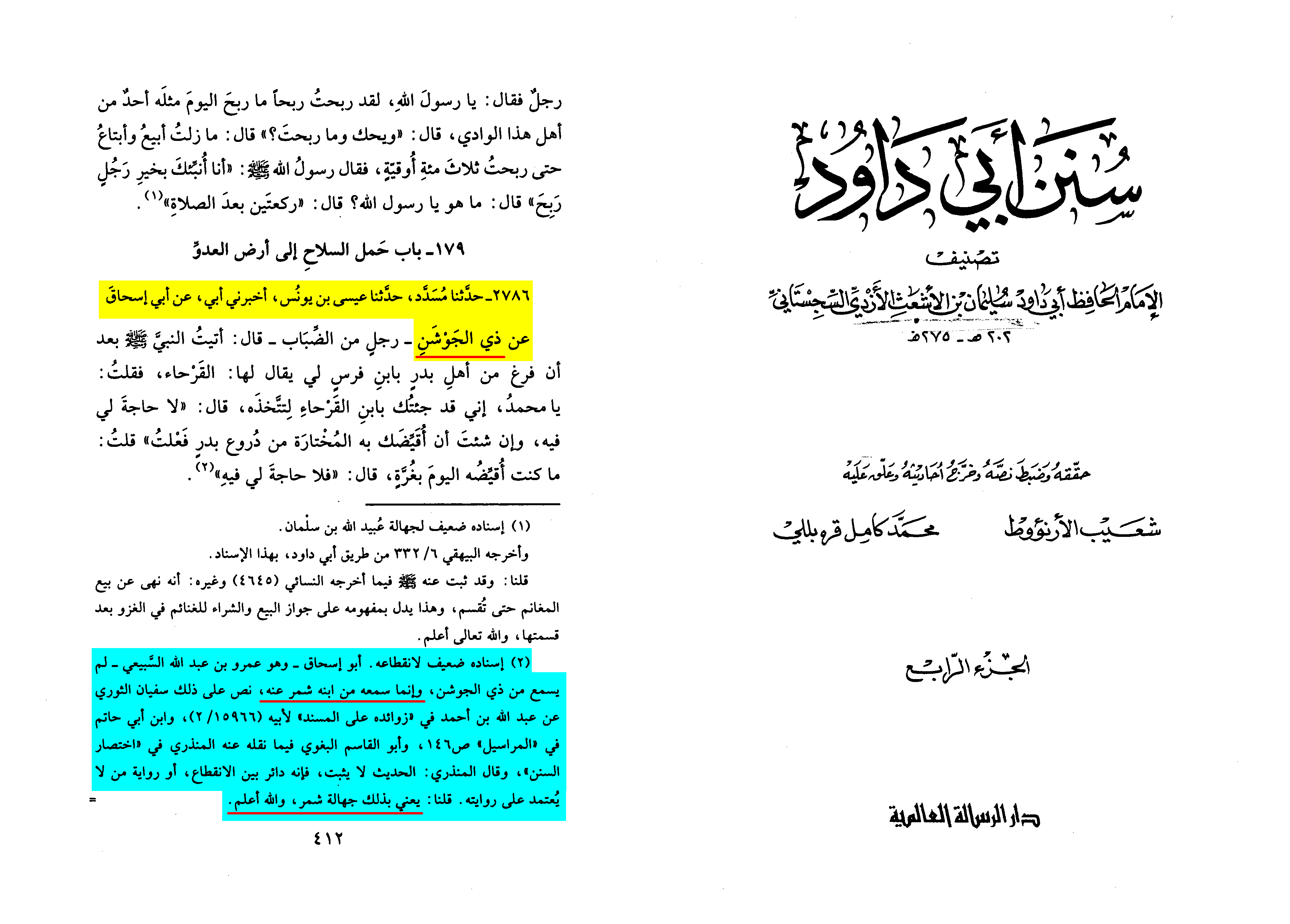 Shimr: He was the khariji present in the battle of Nahrawan that called for the killing of al-Husayn (AS). While Sunnis do not authenticate him, it is shocking to find that he narrates in their main books, such as in Sunan Abi Dawud 2786. Although it says his father (Dhi’l-Jawshan) here, Shu’ayb al-Arna'ut in his tahqiq of Sunan Abi Dawud, vol. 3, pg. 412 have confirmed that this is a scribal error and that it is actually Shimr (his son) who is narrating.