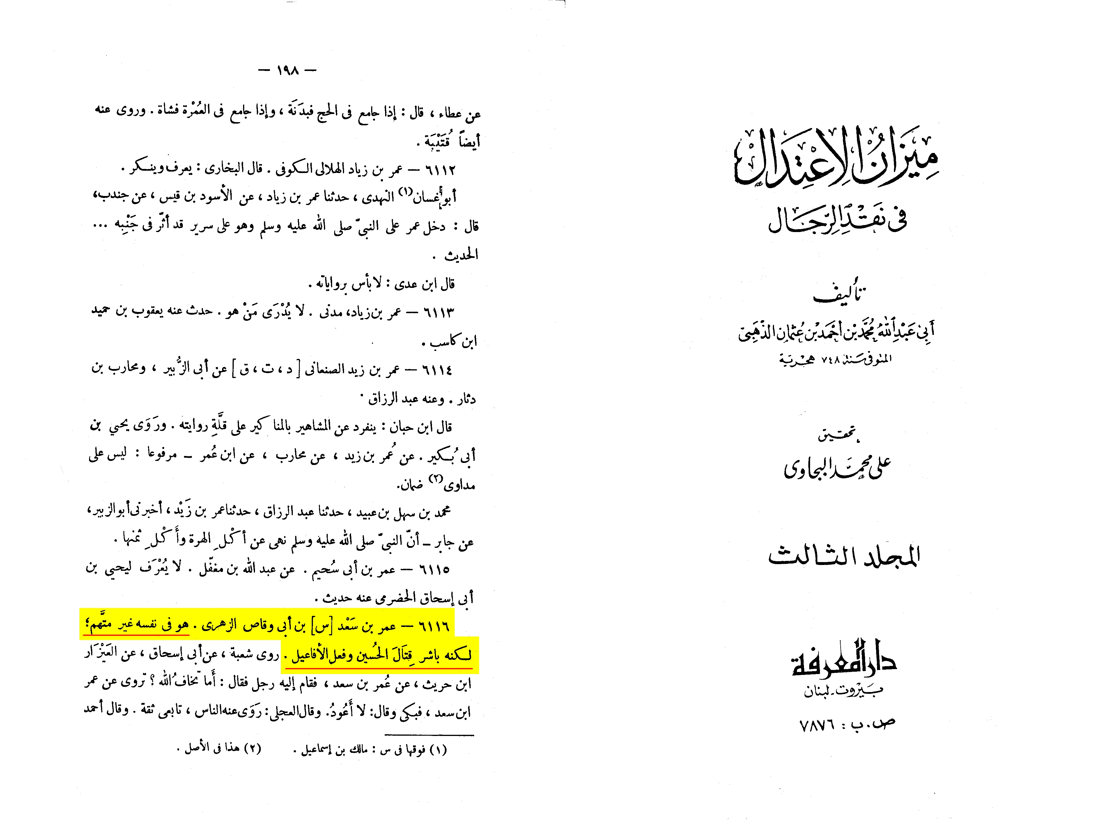 Al-Dhahabi likewise comments in his biography work, Siyar A'lam al-Nubala, vol. 4, pg. 349 - 350. Bio. # 123: