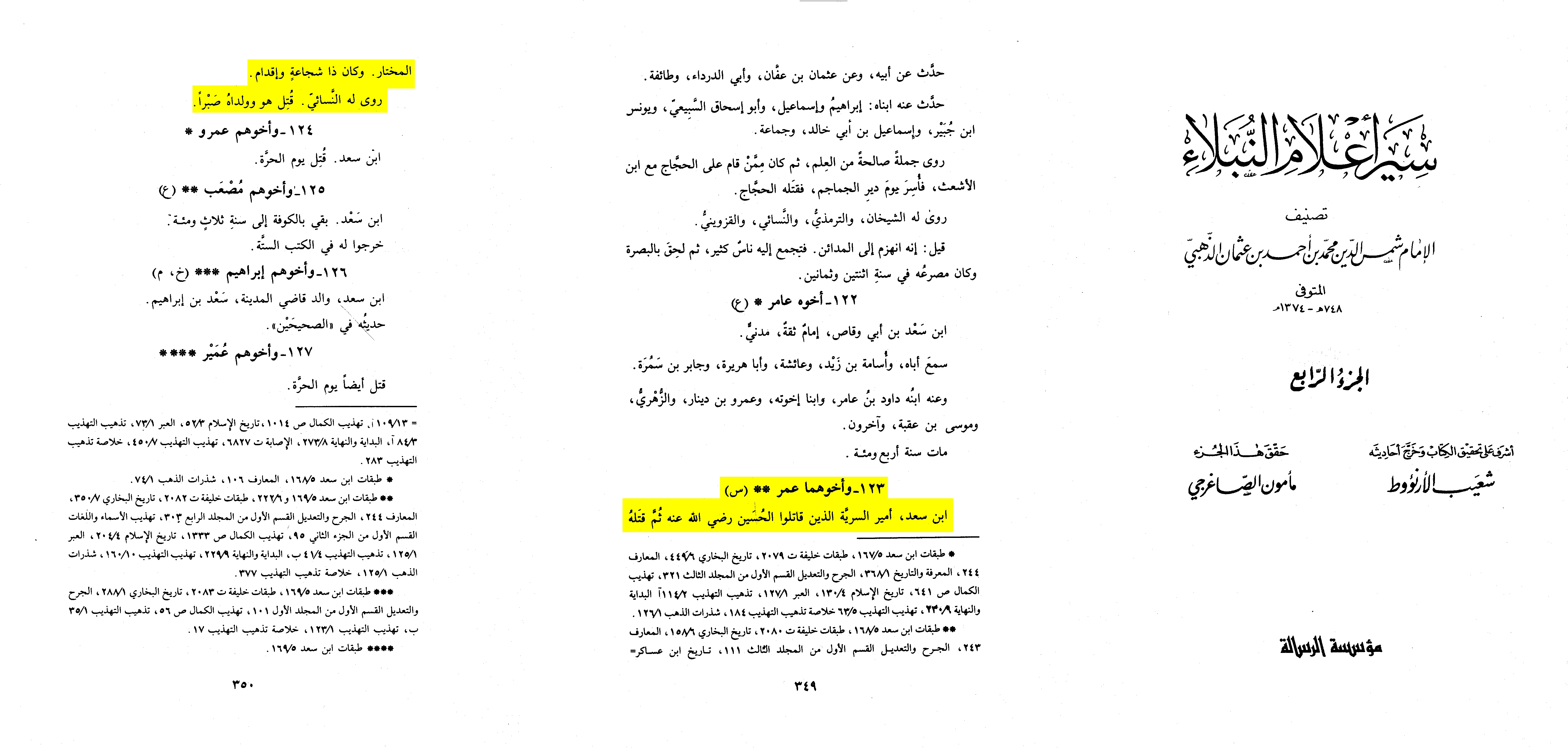 عمر ابن سعد ابن أبي وقاص المدني نزيل الكوفة صدوق ولكن مقته الناس لكونه كان أميرا على الجيش الذين قتلوا الحسين ابن علي
