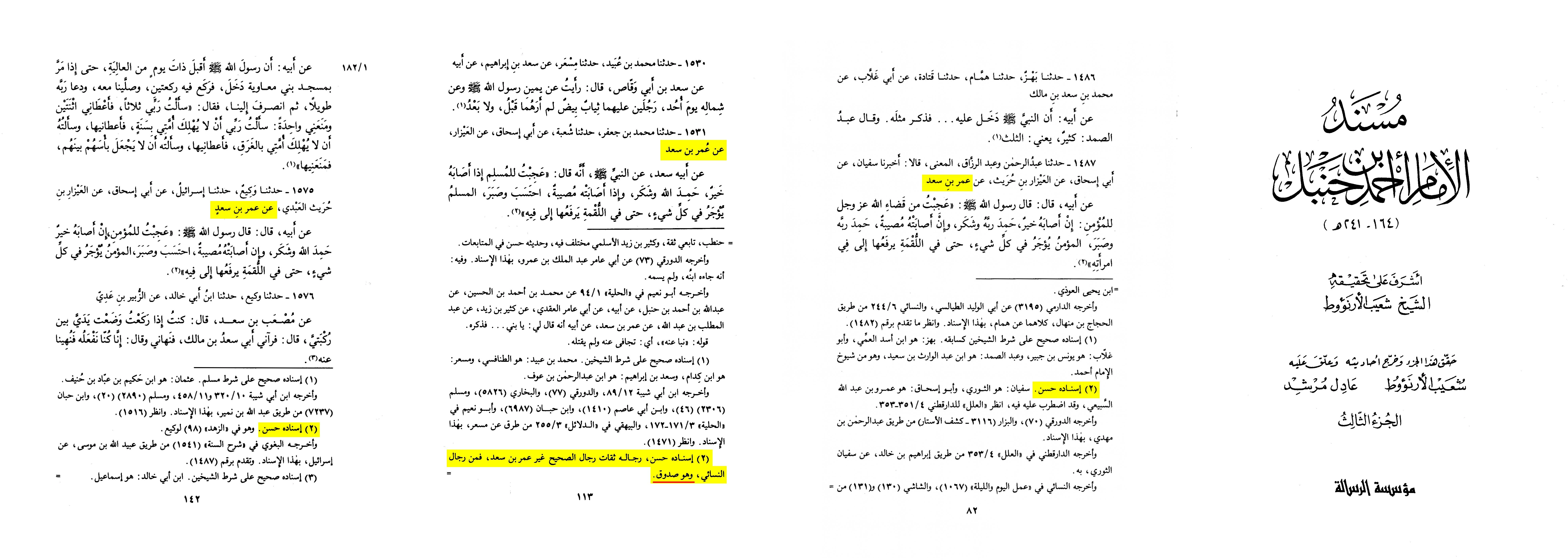 Ahmad b. Hanbal had also transmitted hadiths from Umar b. Sa'ad in his Musnad Ahmad, vol. 3, pg. 82, with the examiner, Shu'ayb al-Arnaut declaring him and the chain as reliable.