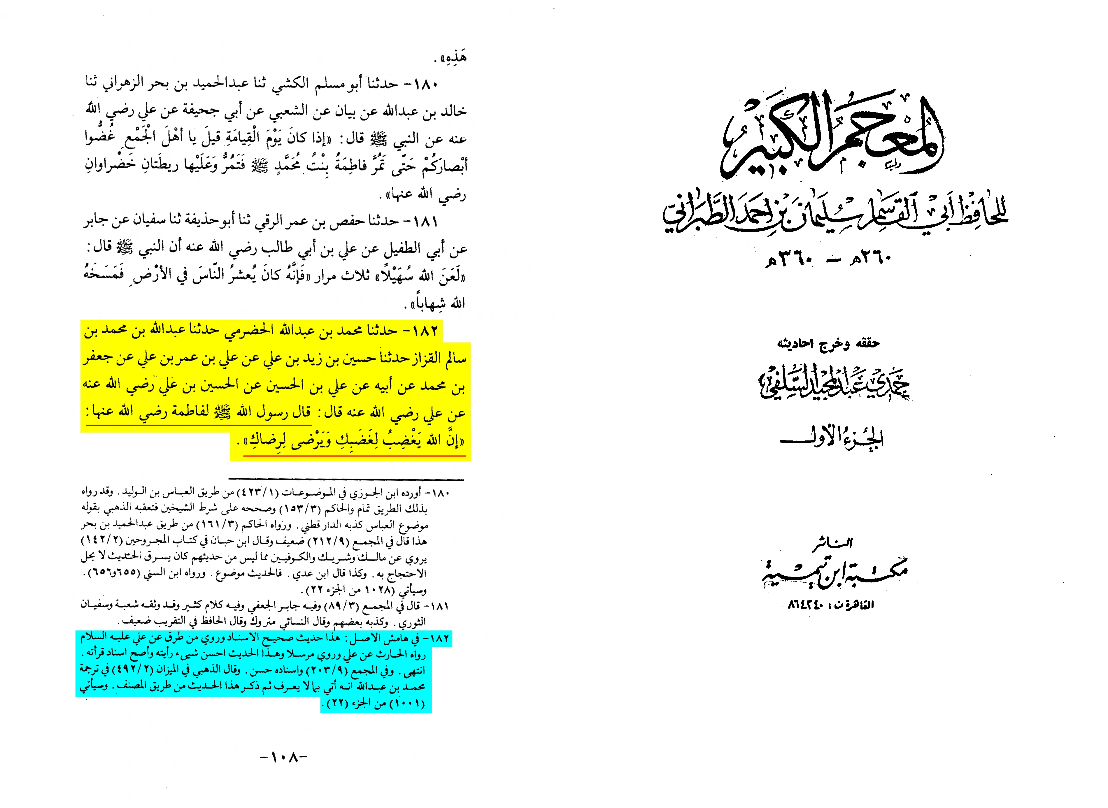 Imam Ali (as) mentions the hadith ‘Allah gets angry at your anger, and pleased with your pleasure’, without any mention of Abu Jahl’s daughter in al-Tabarani’s Al-Mu’jam al-Kabir. Vol. 1, pg. 108 (Graded hasan by al-Haythami in Majma’ al-Zawa’id. Vol. 9, pg. 240).