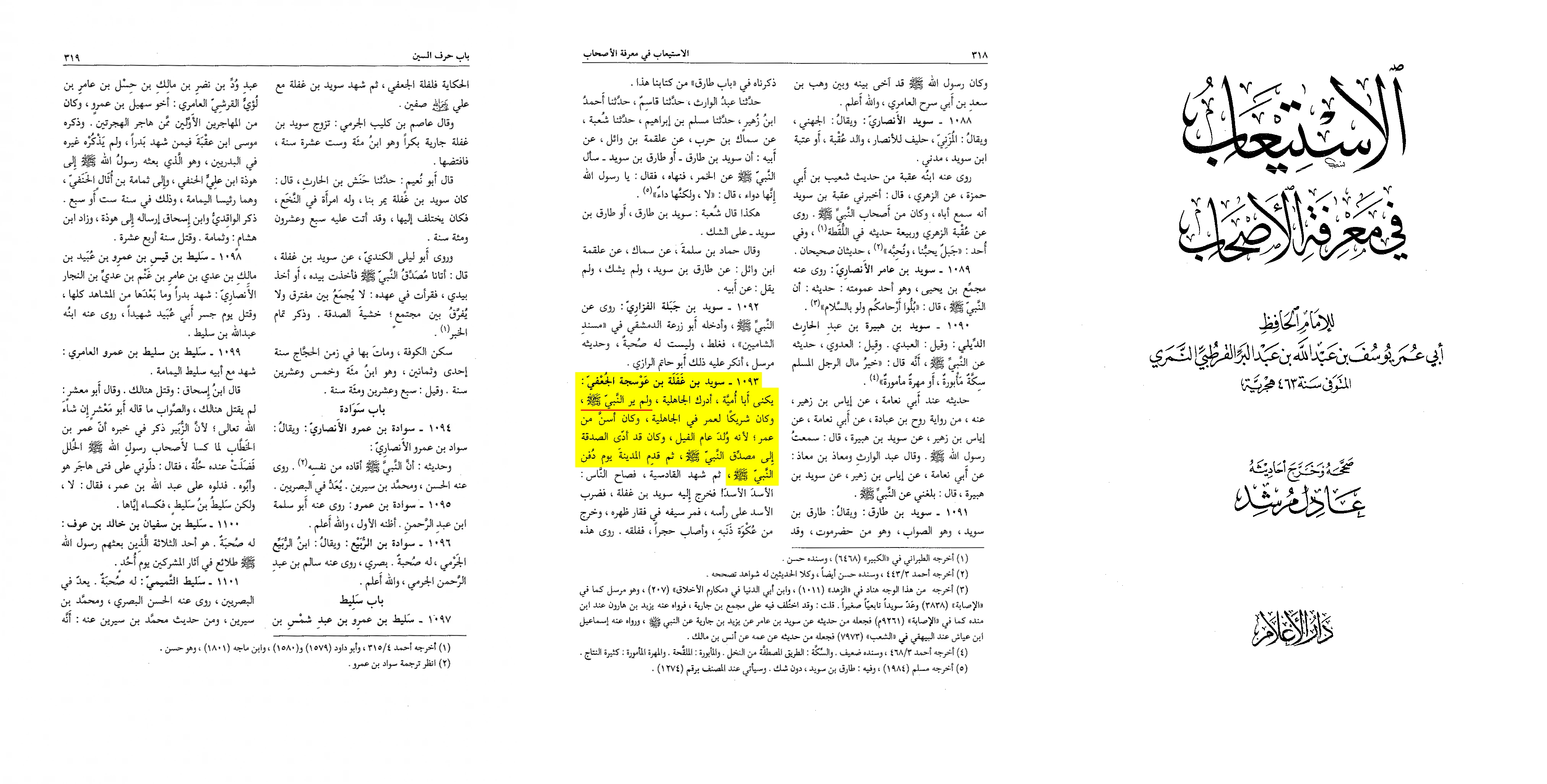 And it is mentioned in Sahih Muslim from his narration (al-Miswar) in Ali's sermon to the daughter of Abu Jahl. Al-Miswar said, 'I heard the Prophet while I muhtalim giving sermons to the people,' and he mentioned the hadith. There is a problem in accepting the hadith because the historians never disagreed about his (Miswar's) birth which was after the migration while the story of Ali's (as) proposal is about six or seven years after Miswar's birth, so how could he be a muhtalim?