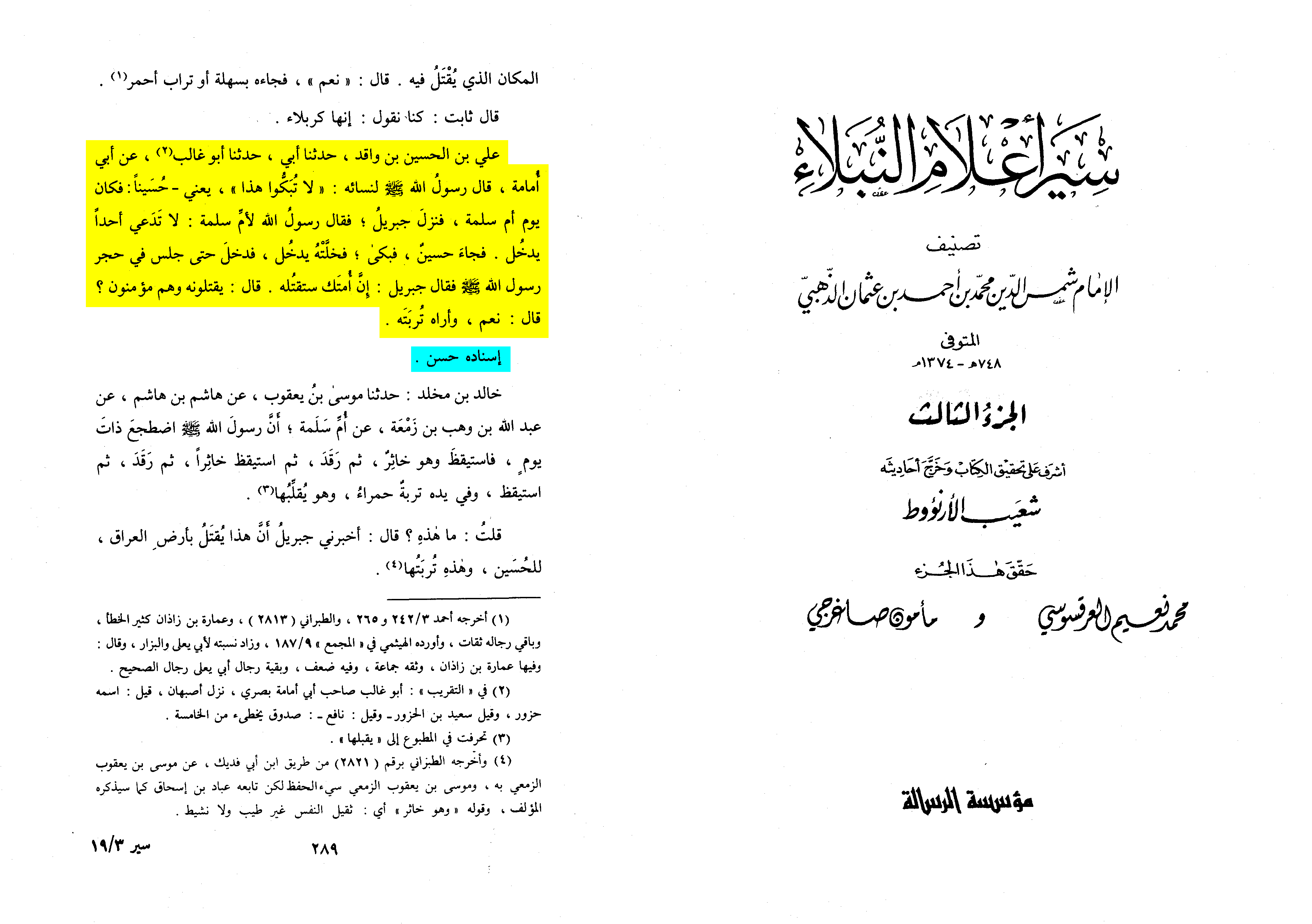 When the Sunnis attack our visitation of the grandson of the Holy Prophet, then they are in fact attacking their own companions who did the same. This was confirmed in Siyar A’lam al-Nubala Vol. 3, pg. 540 by al-Dahabi: