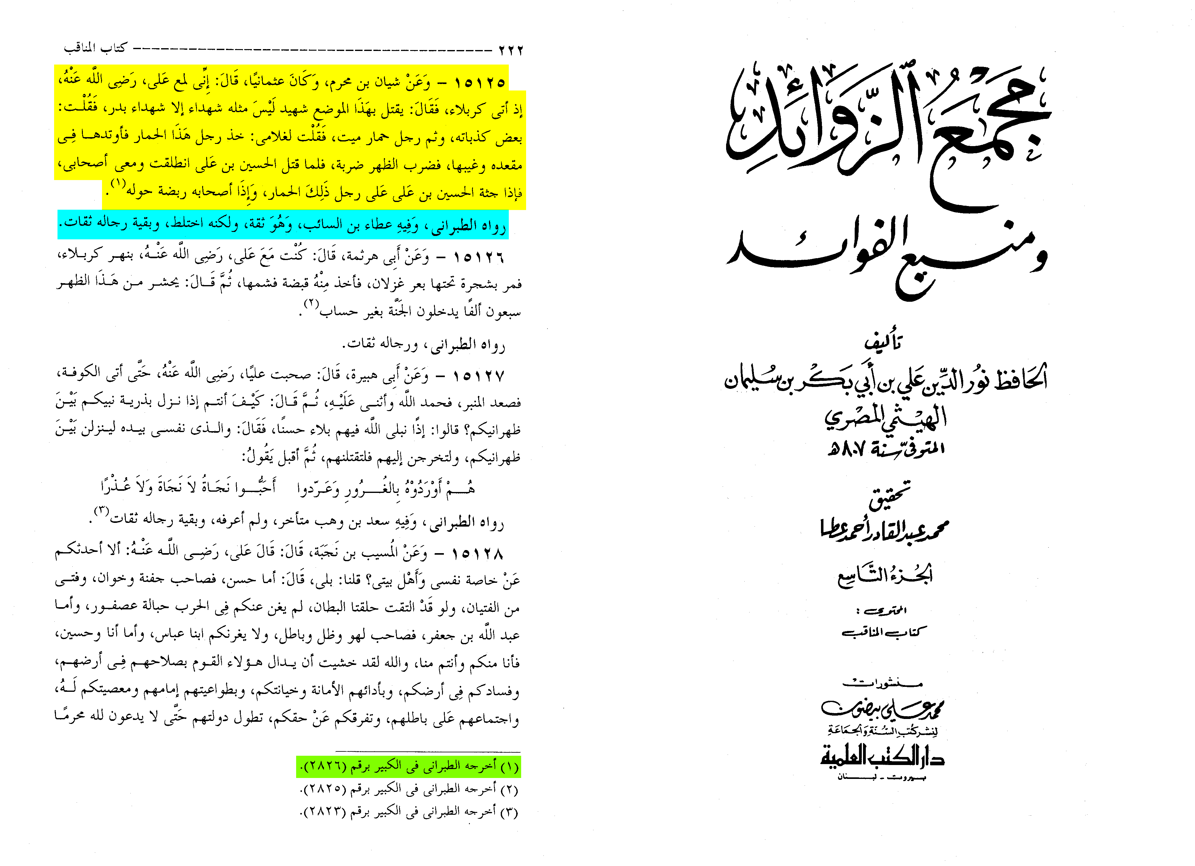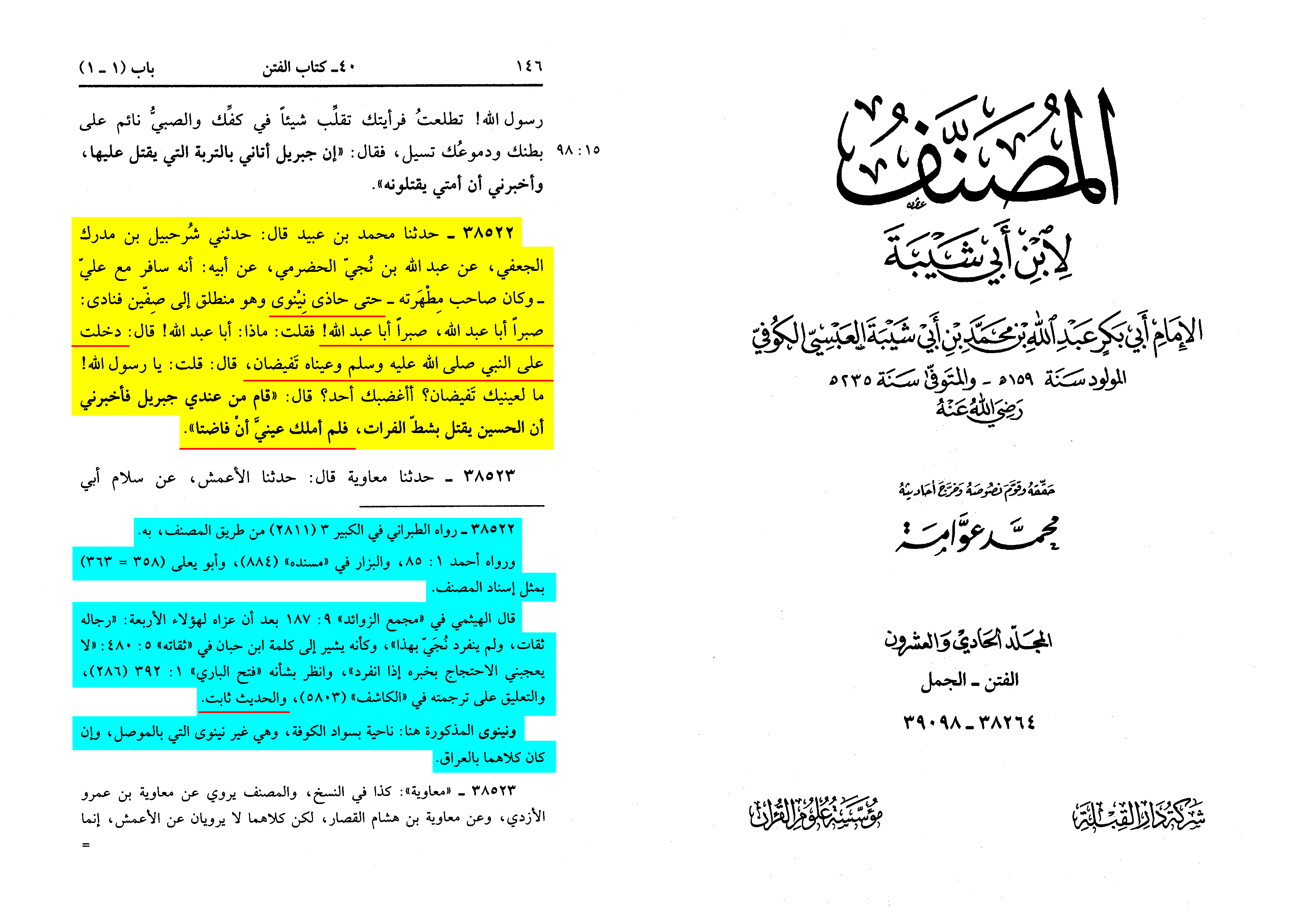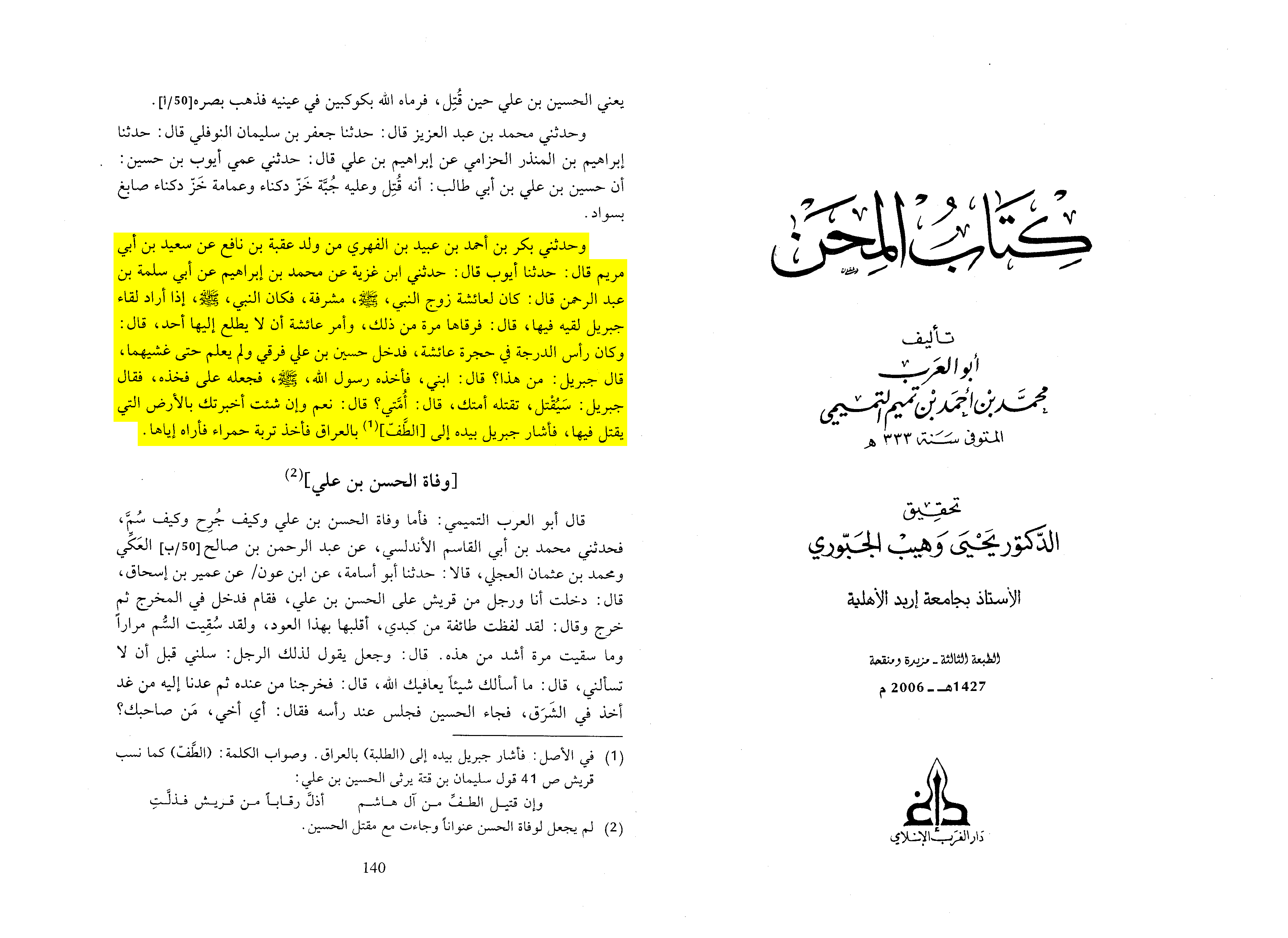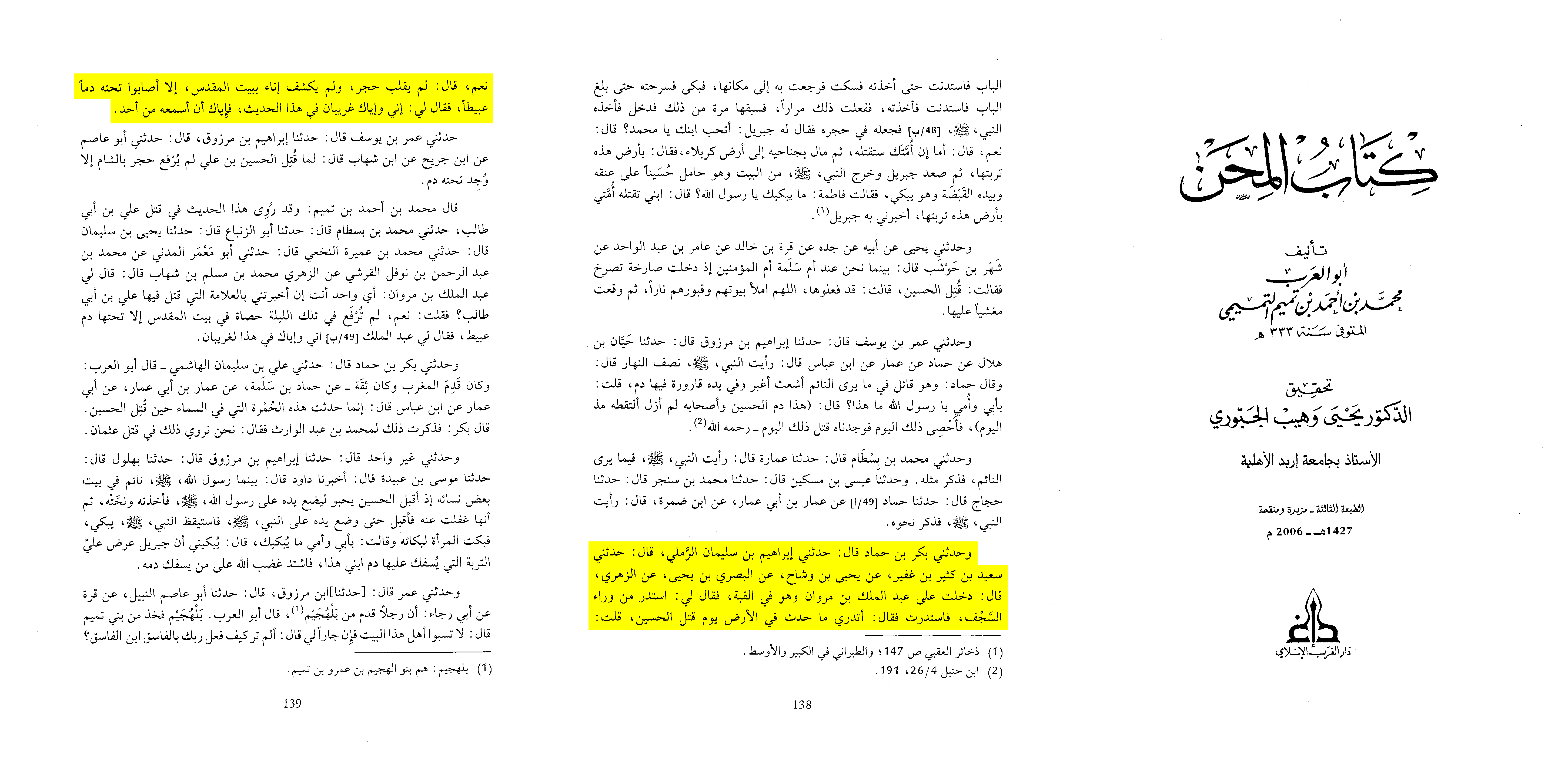 Note: It was also recorded with a different chain in Kitab al-Mihan, pg. 138 - 139, and in Shi’i sources, such as Kamil al-Ziyarat, Ch. 24, Hadith # 3 and al-Amali of Saduq, Ch. 31, Hadith # 34.