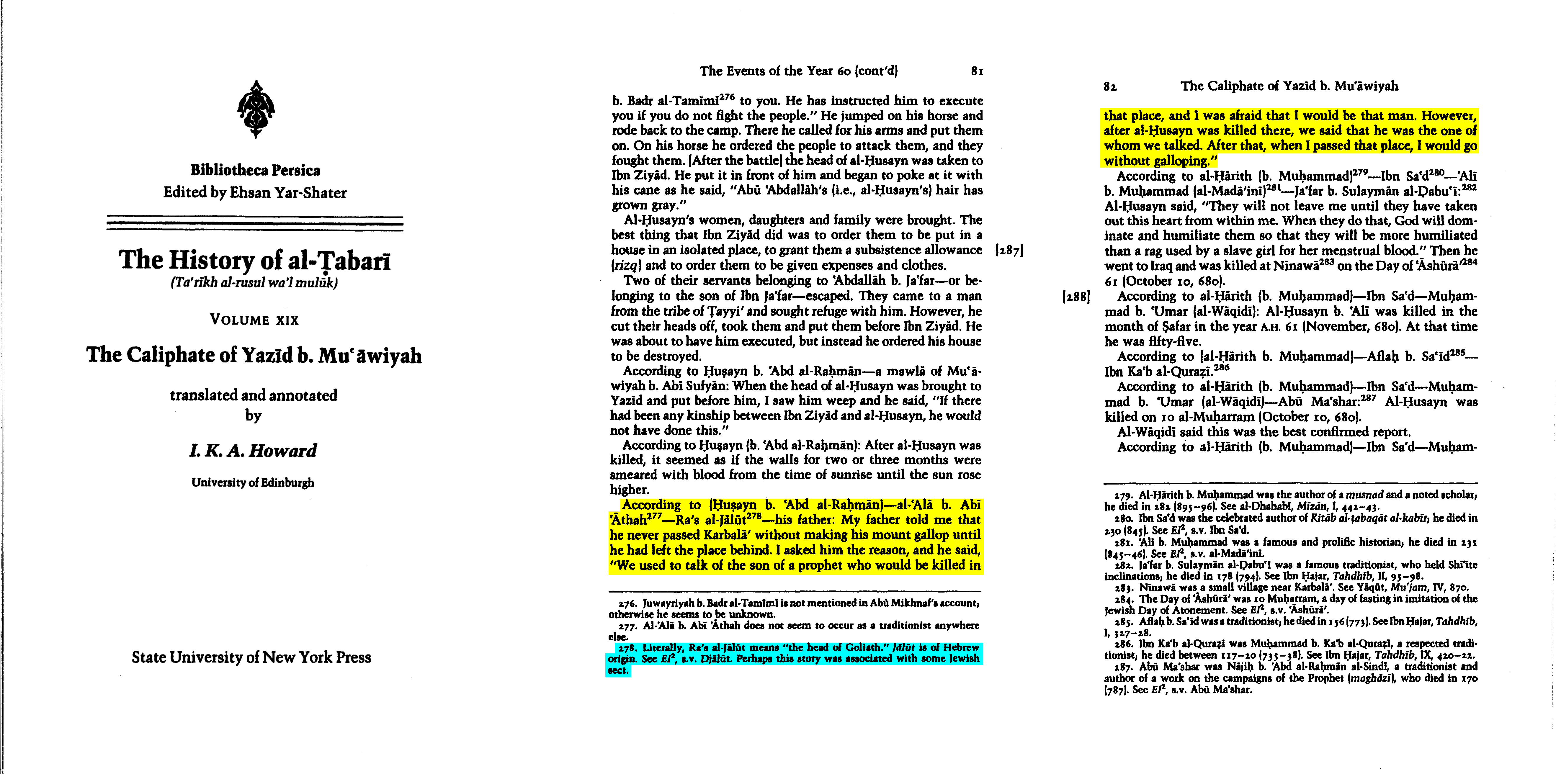 ... And, by God, I saw them thronging about the tomb of al Husayn more thickly than the people throng around the Black Stone.