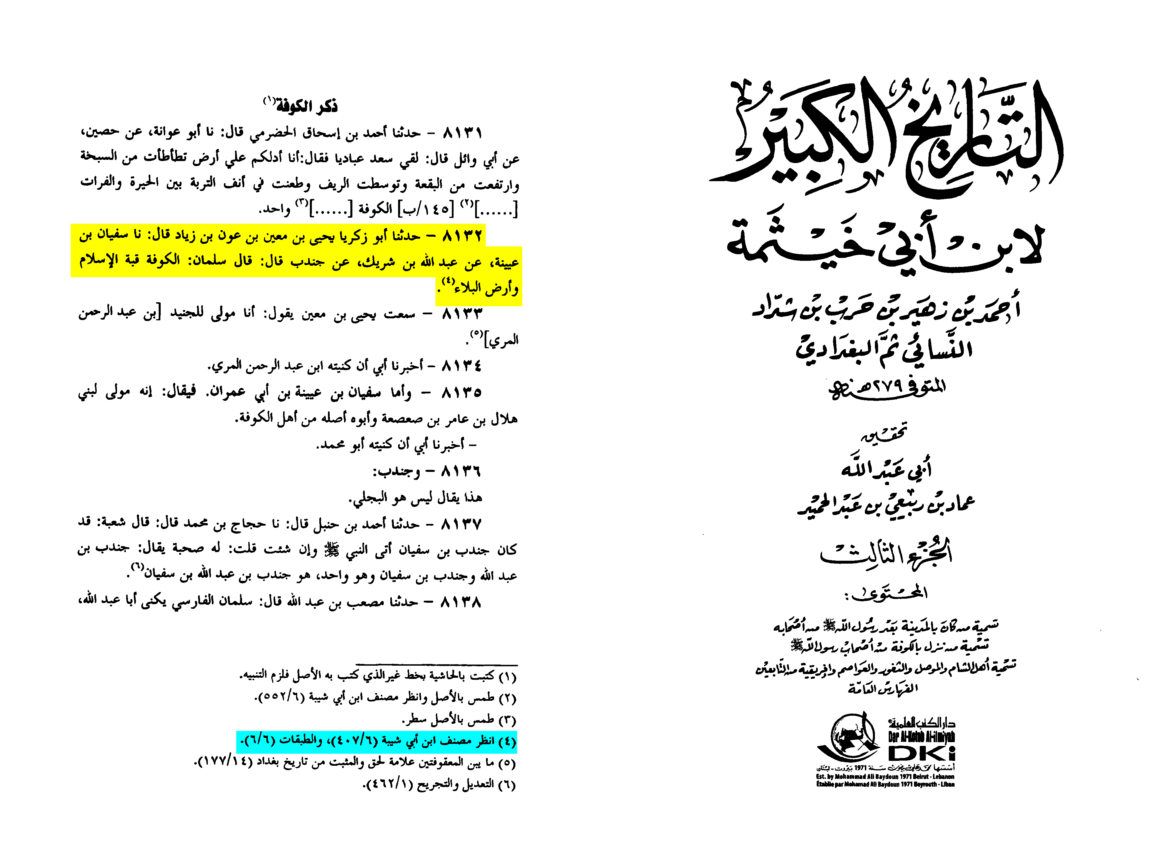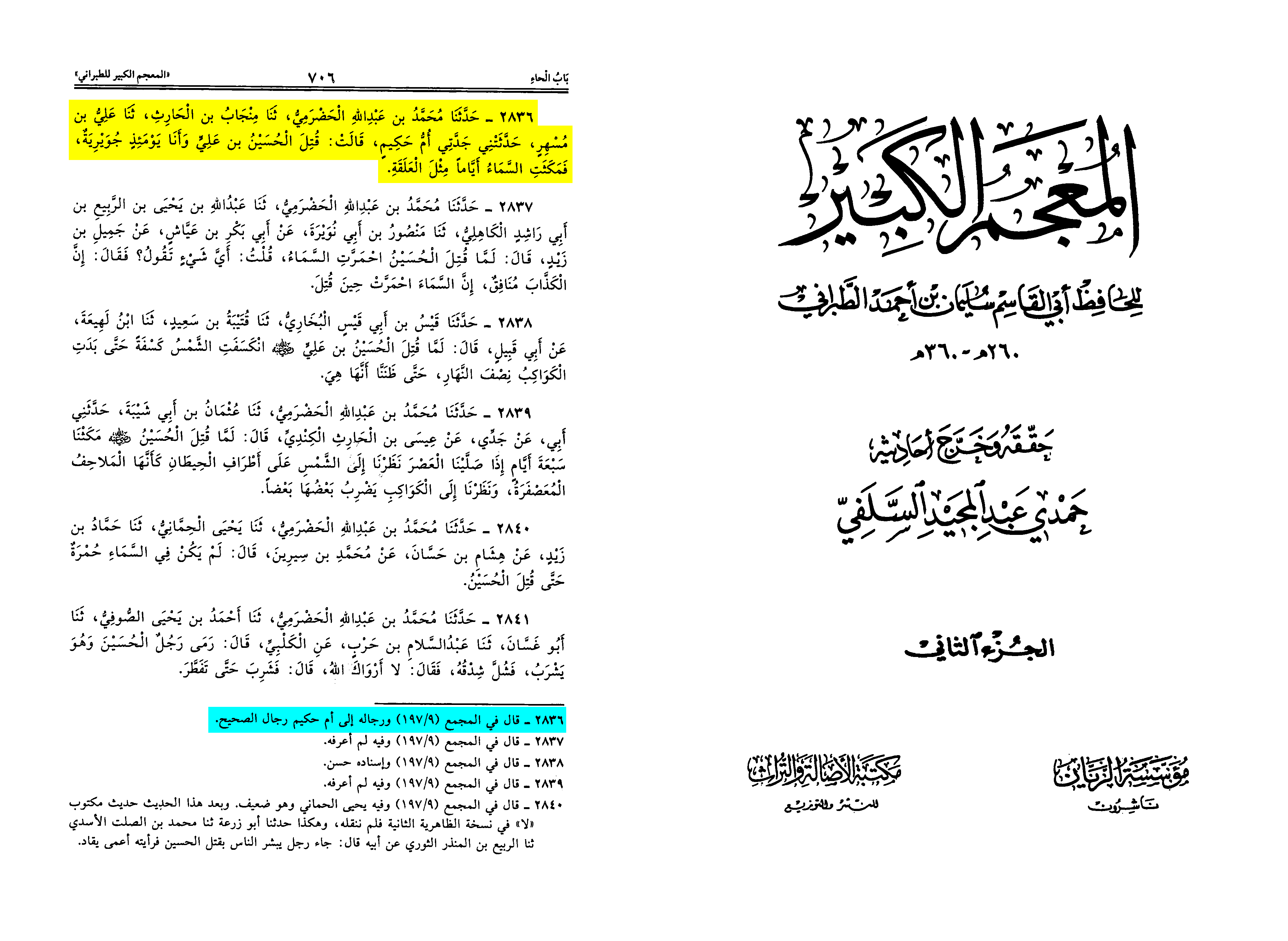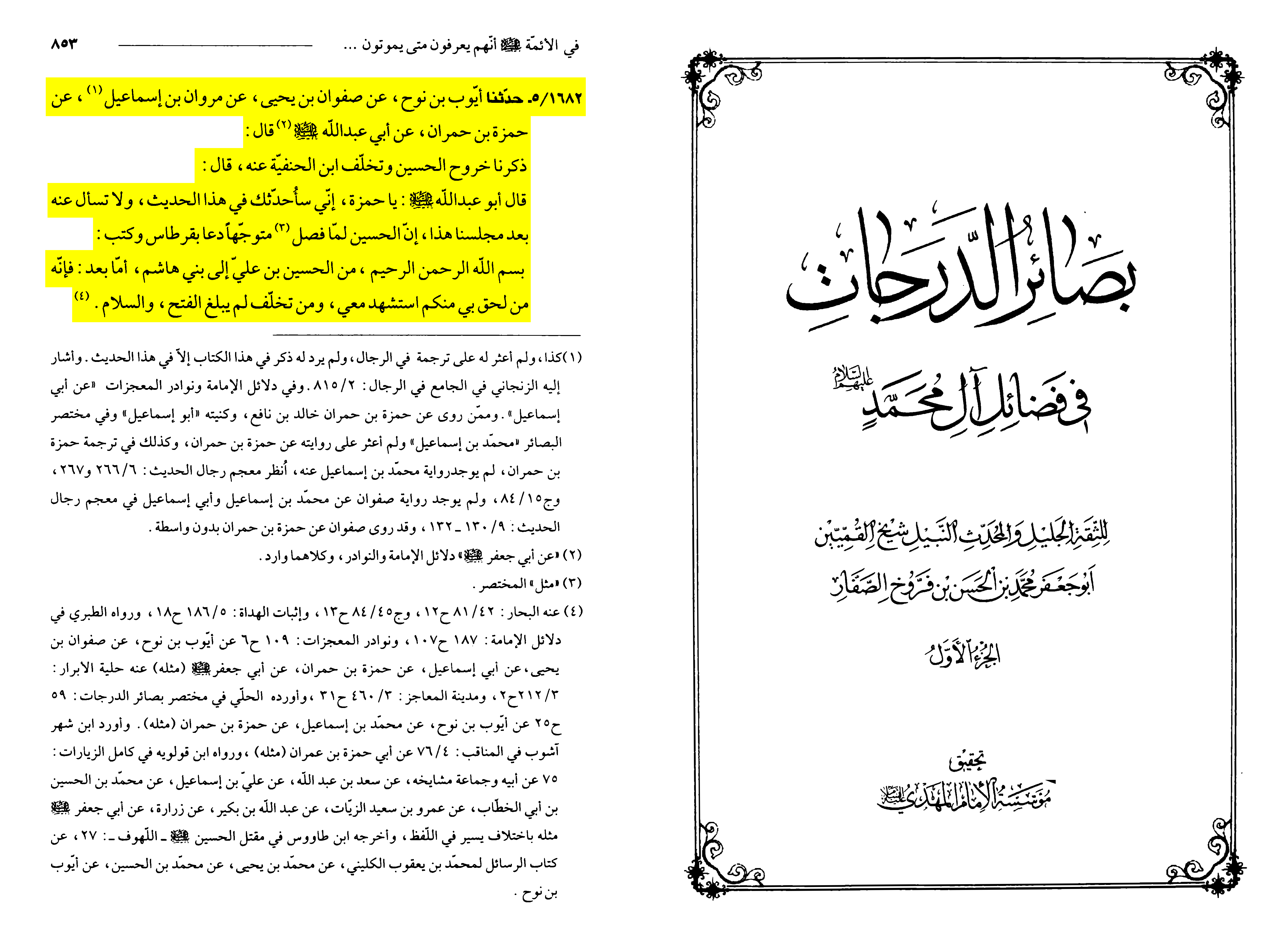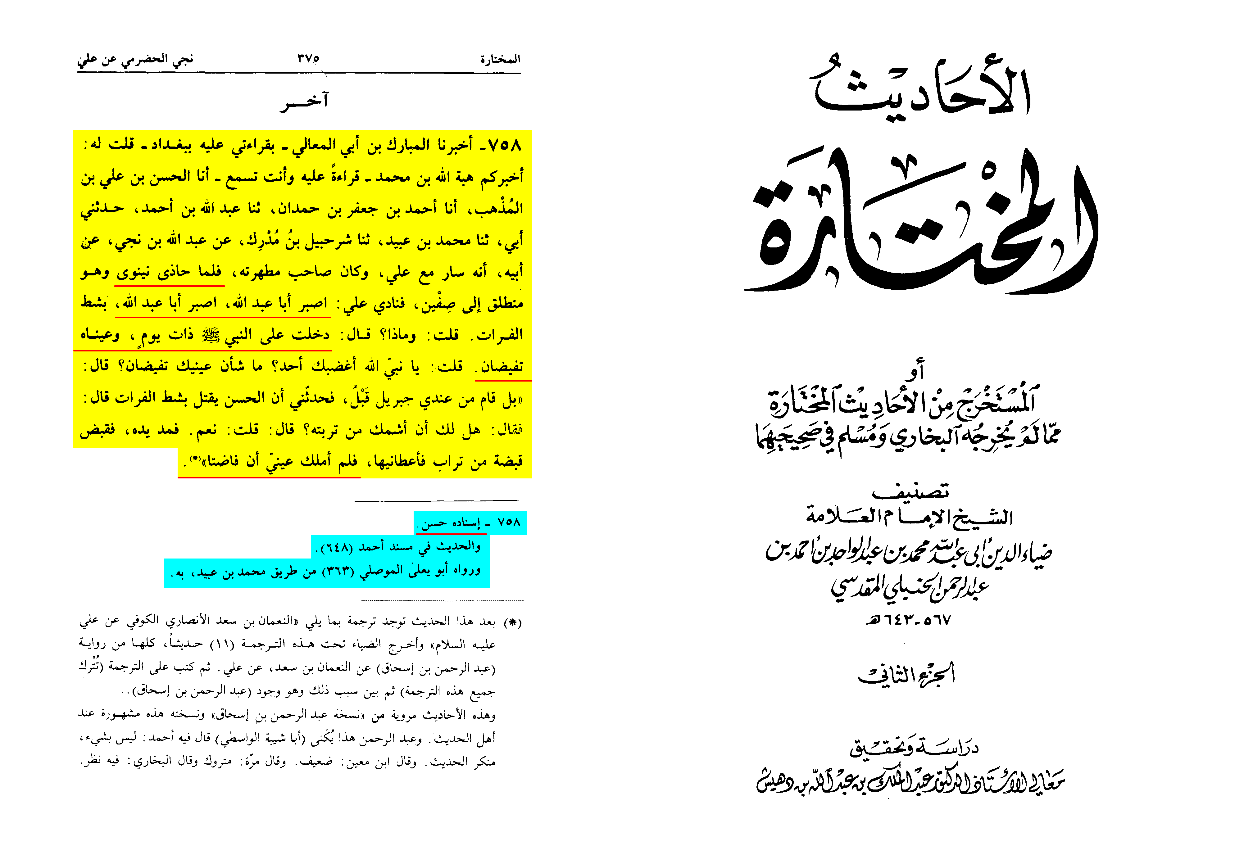 The second most popular variant of this report is the one transmitted on the authority of Ali b. Abi Talib (AS), when he came to Naywaniyah in Iraq.