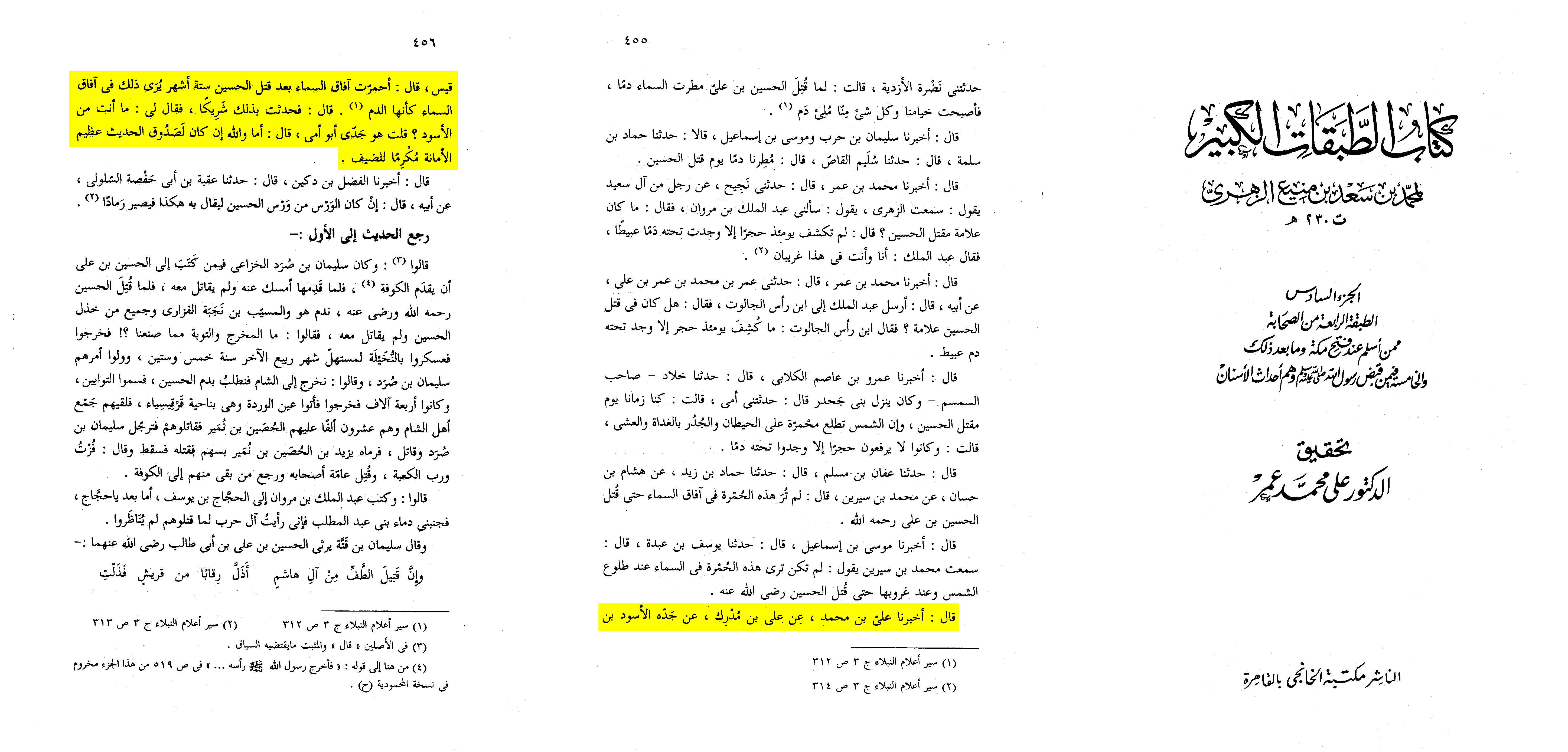Instead of blood rain, it records strange activities occurring with the skies of stars colliding and suddenly moving. This is in line with what Muslim historians have noted about the occurrences that happened after the death of al-Husayn (AS), such as al-Suyuti in Tarikh al-Khulafa, pg. 160 & 166:
