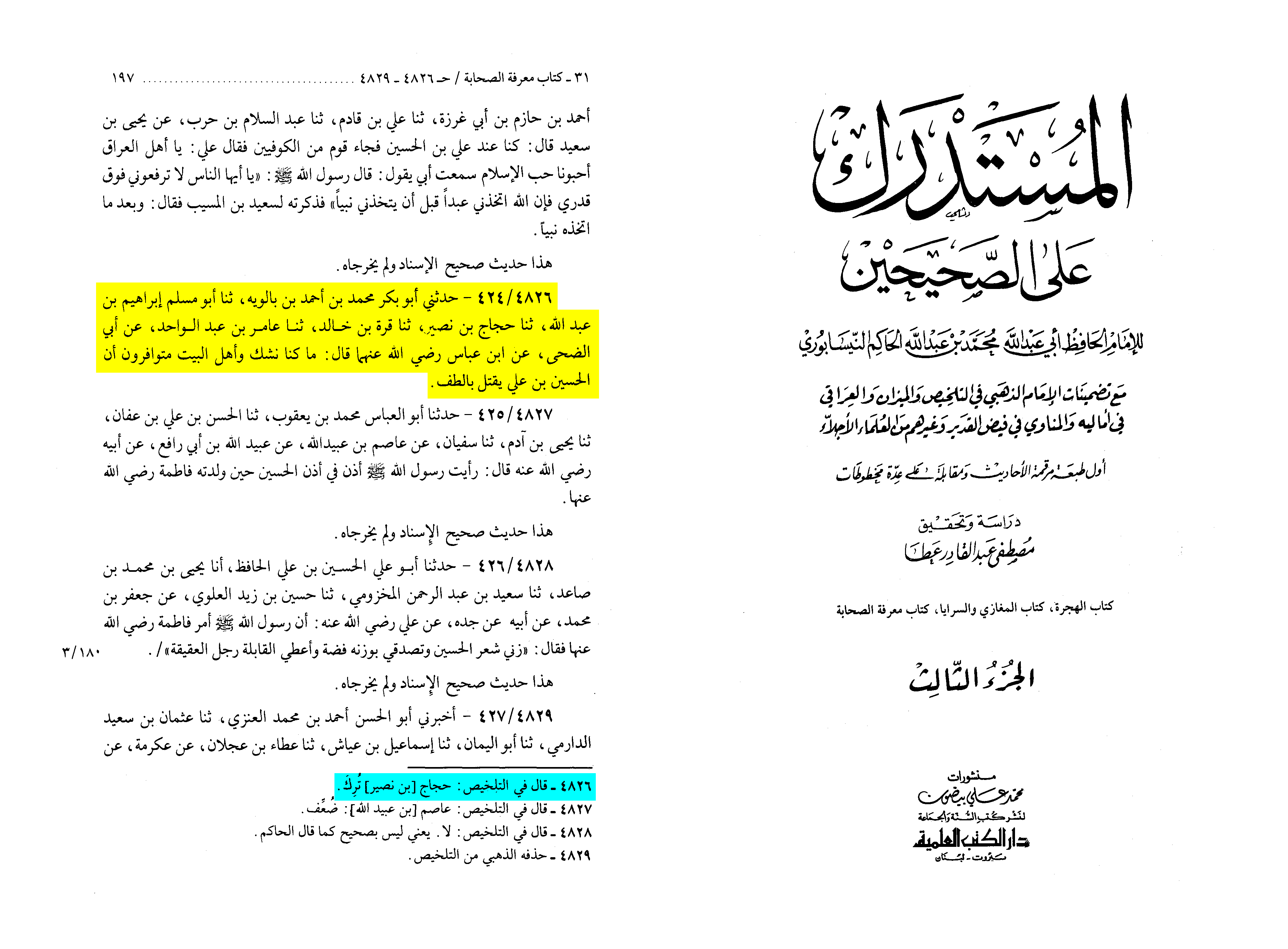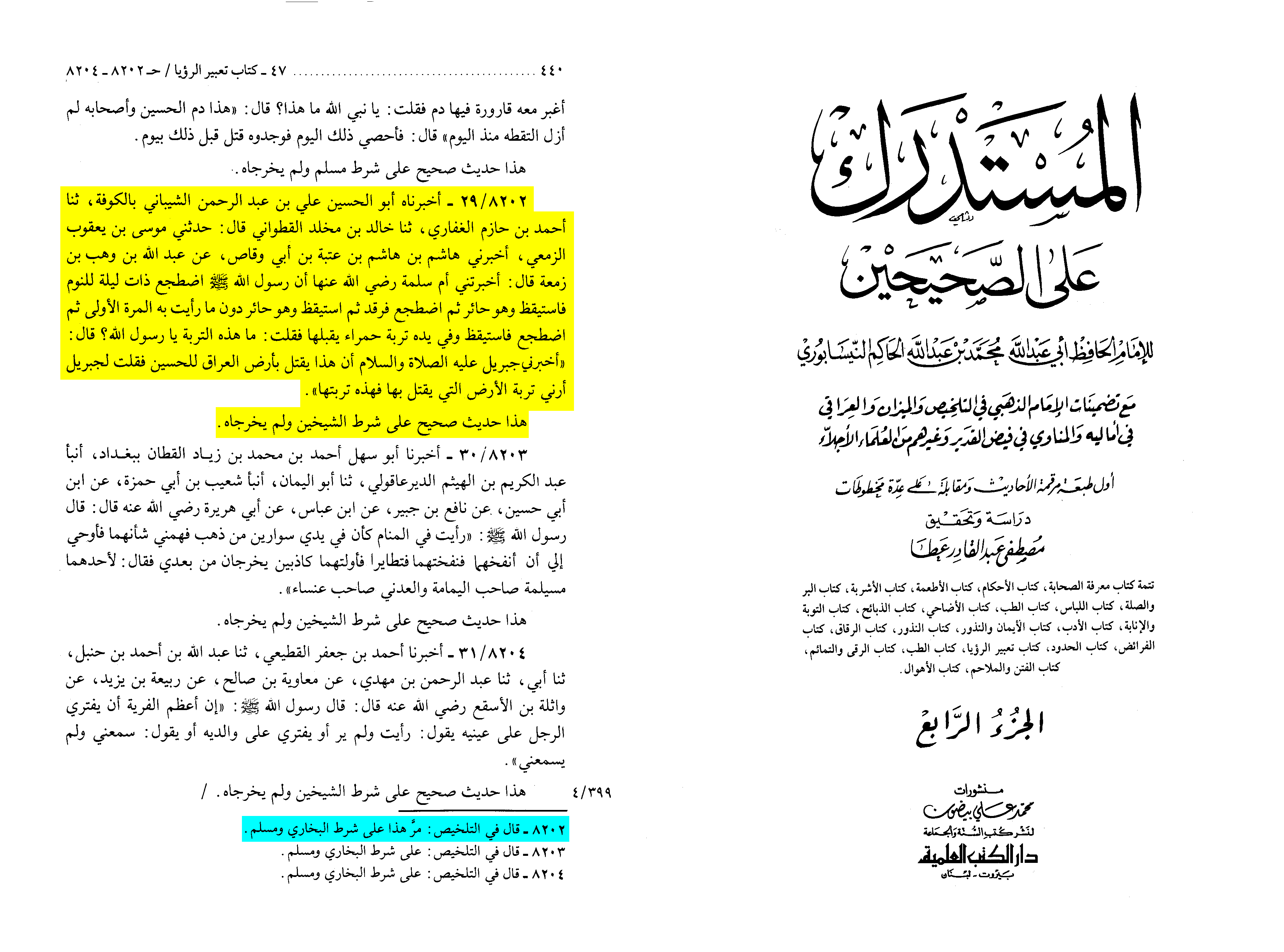 Al-Hakim’s Mustadrak ‘ala al-Sahihain Vol 4, pg. 440, Hadith # 8202 by al-Dhahabi.