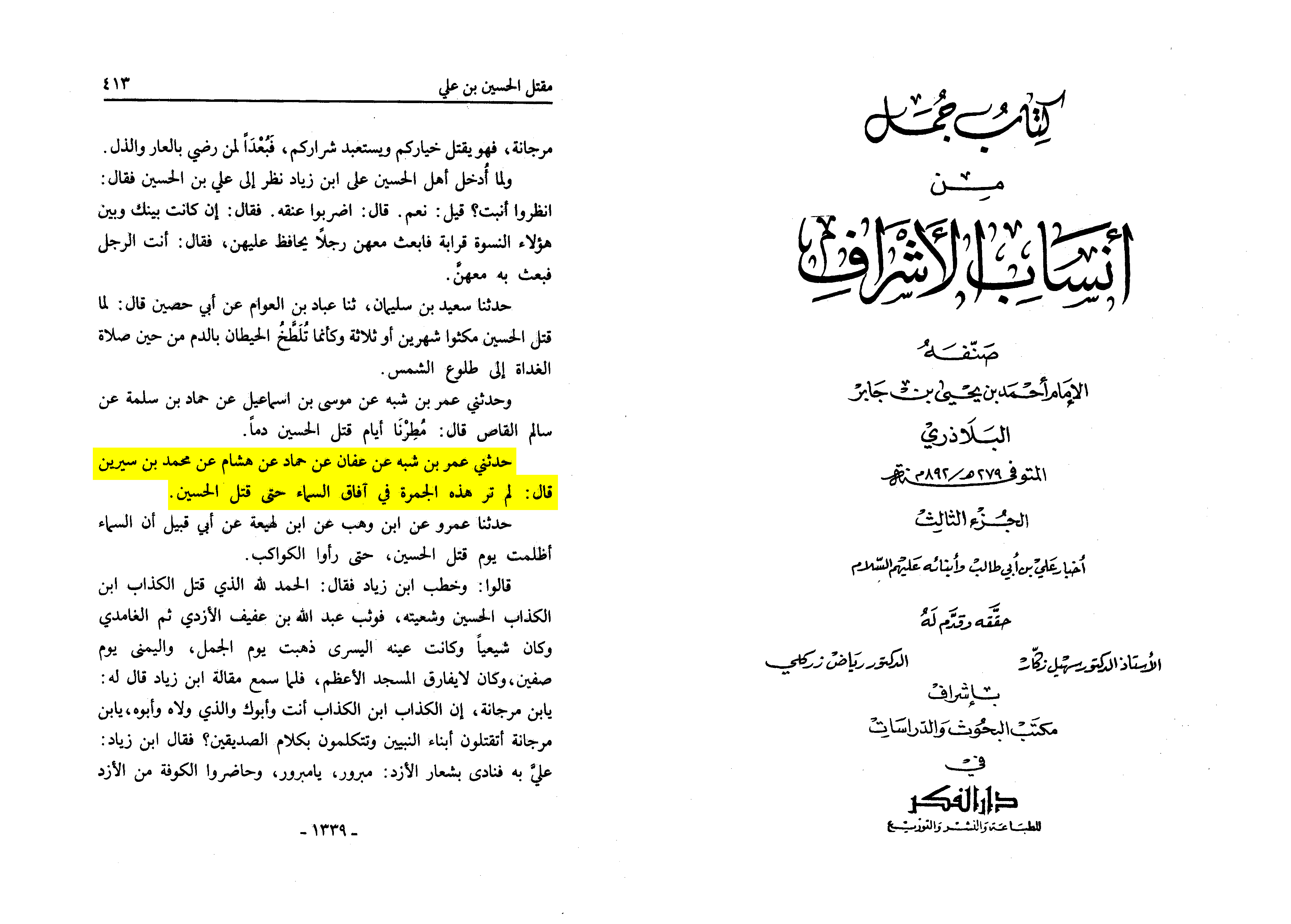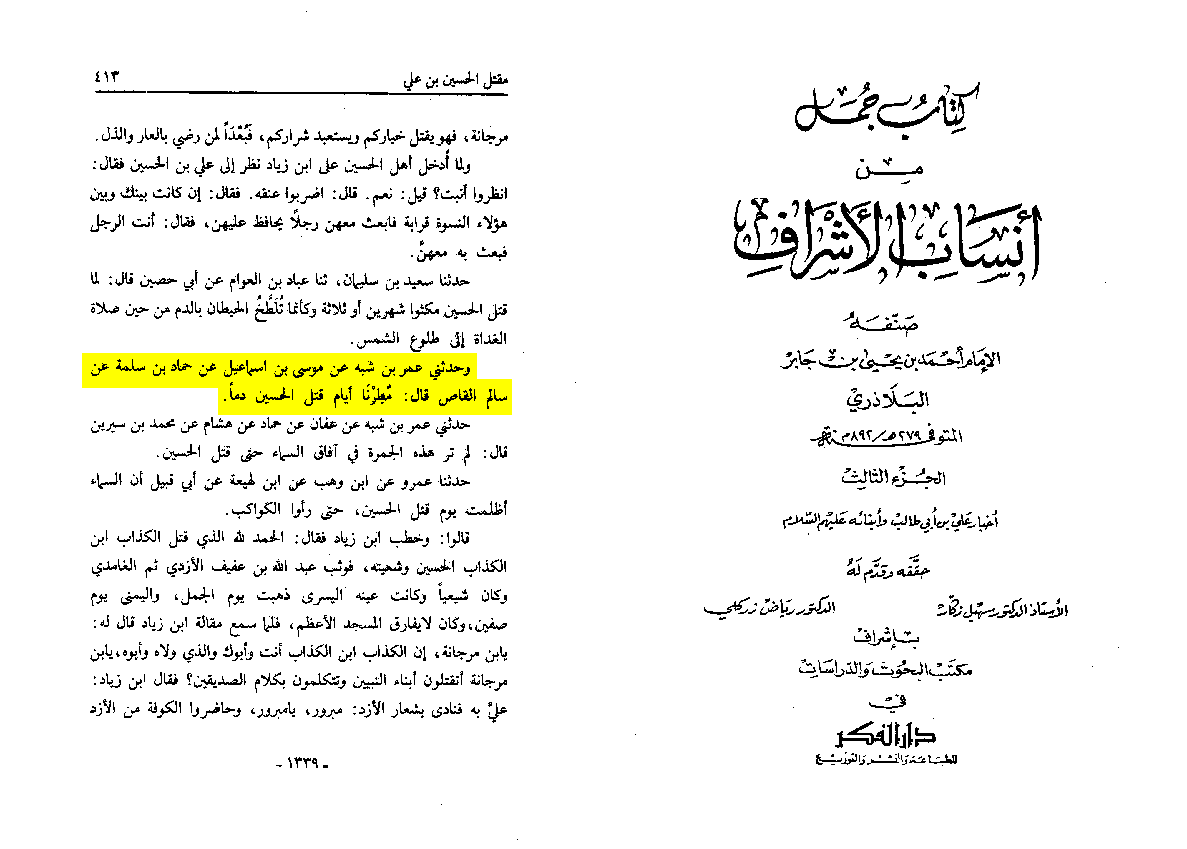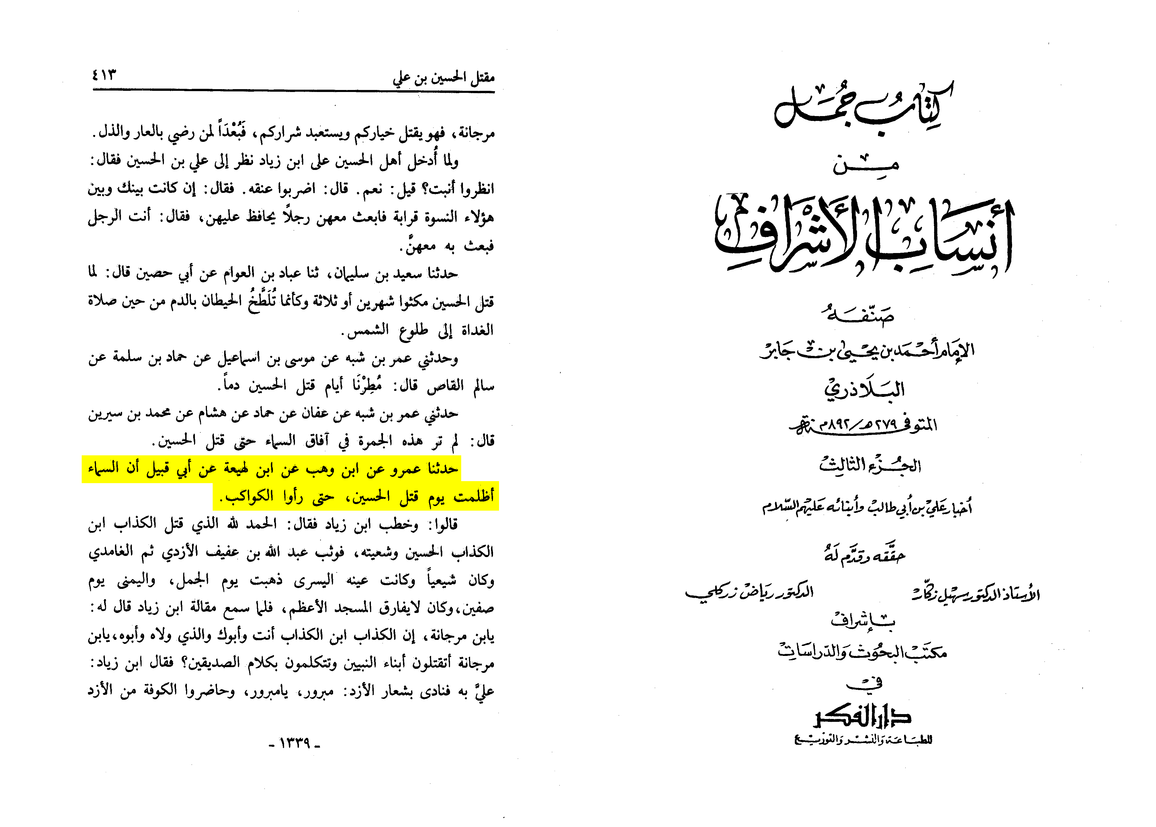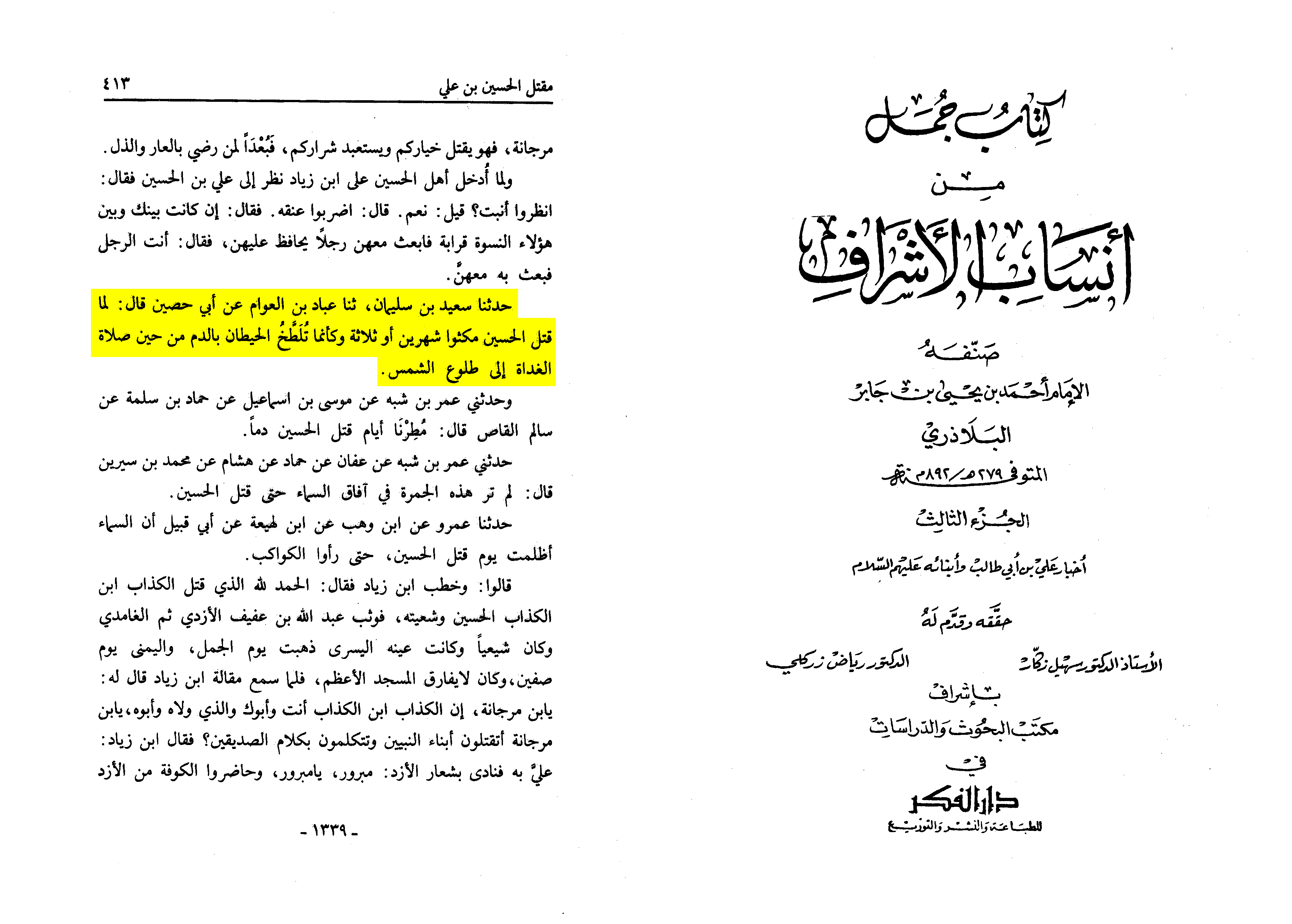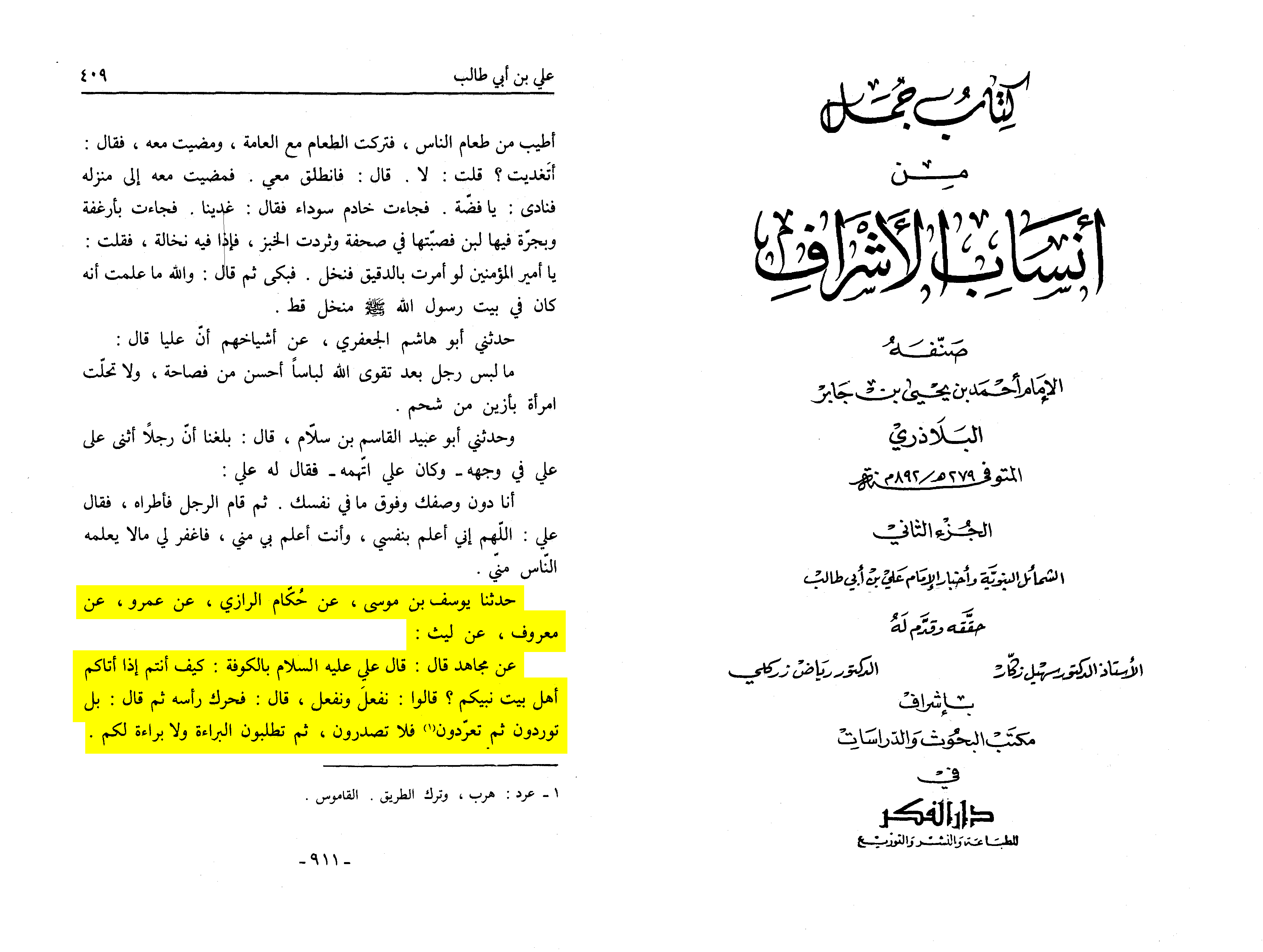 It can also be seen from a report in Ansab al-Ashraf, Vol. 2, pg. 409: