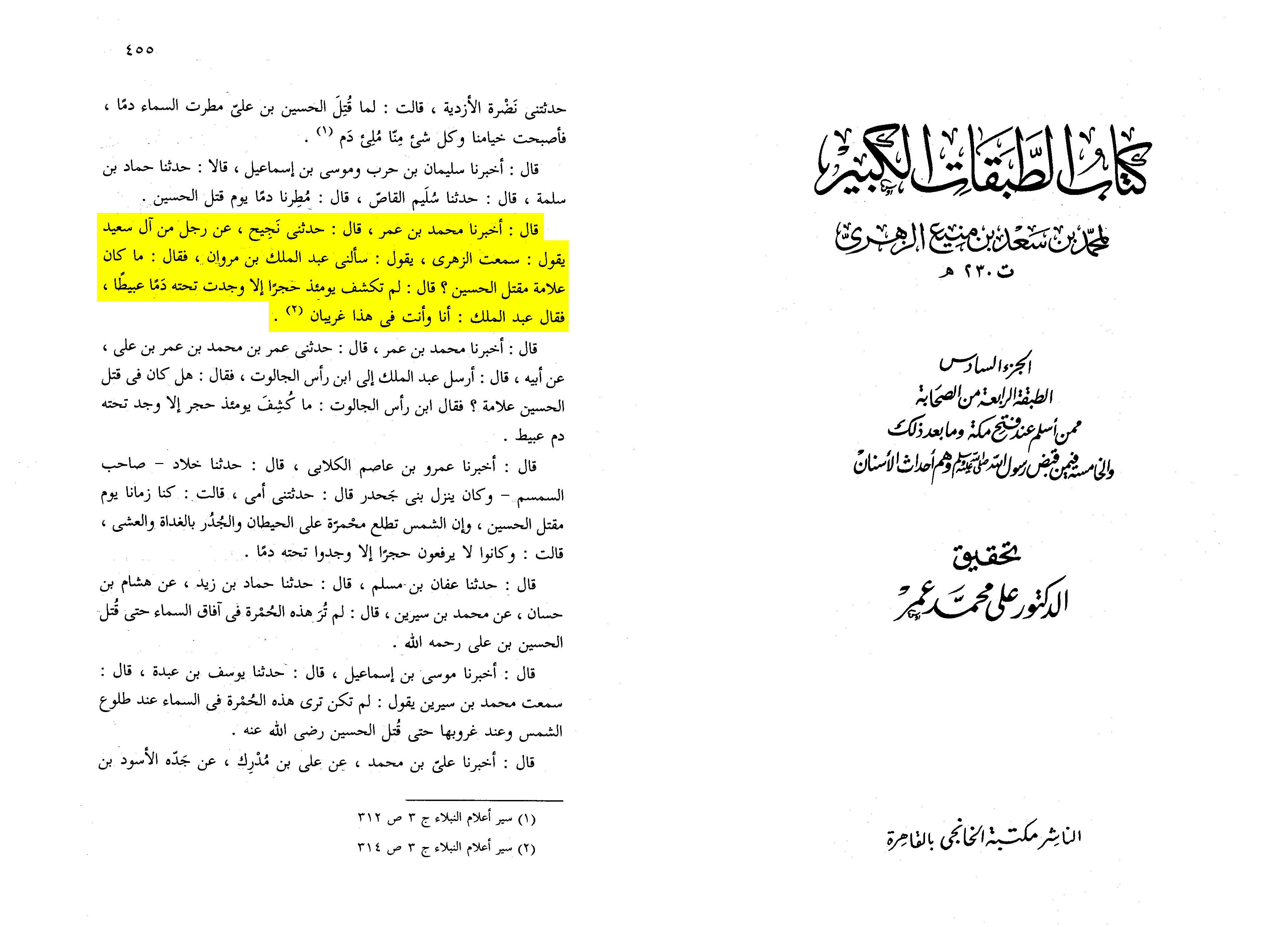 … And then Sulayman and his companions made a circle around the tomb and Sulayman said, "Praise be to God who, if He had wished, would have honored us with martyrdom with al Husayn. Oh my God, since you forbade us it together with him, do not forbid us it on his account after him."