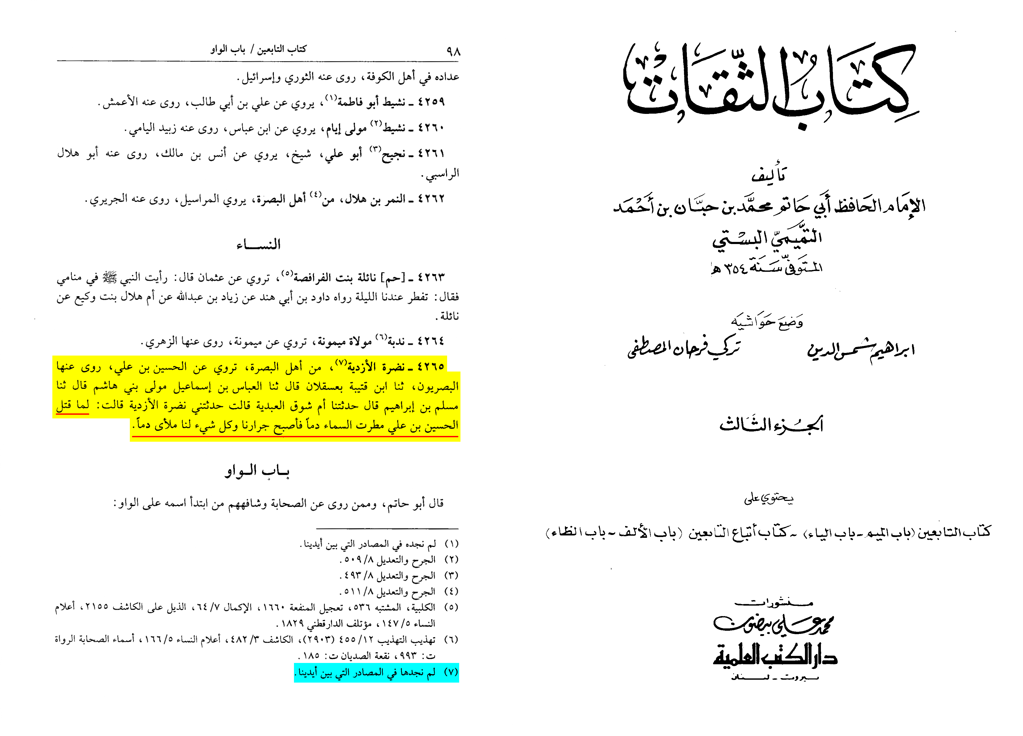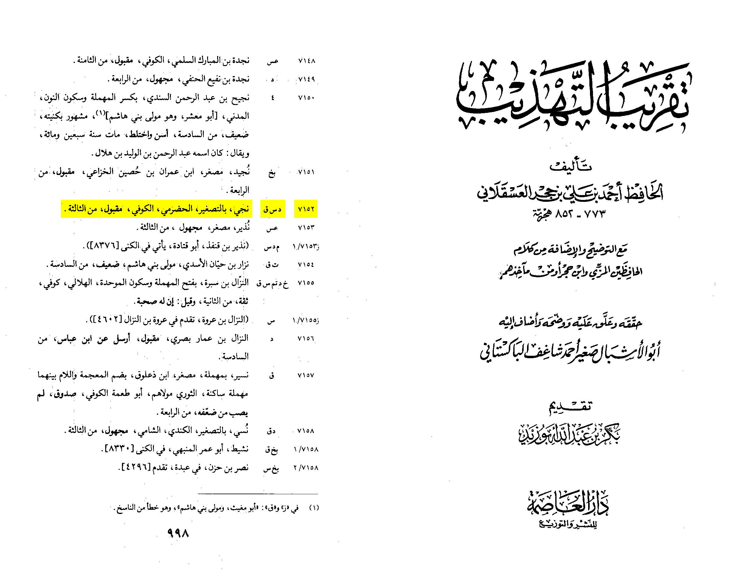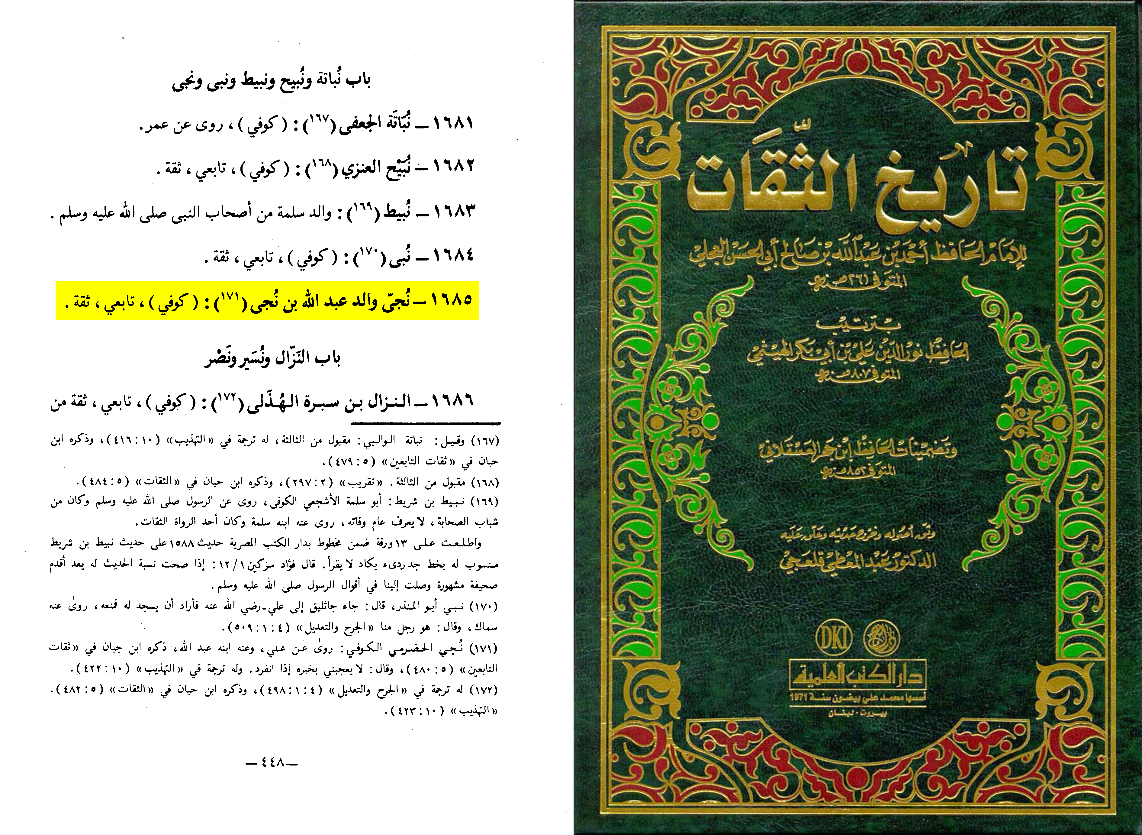His father is also in Kitab al-Thiqat, pg. 448, Bio. # 1685 by al-’Ijli and Kitab al-Thiqat Vol. 5, pg. 480 by Ibn Hibban and al-Bukhari mentions him in Tarikh al-Kabir without criticism. Ibn Hajar concludes that he is acceptable (maqbul) in his Taqrib pg. 998, Bio. # 7152.