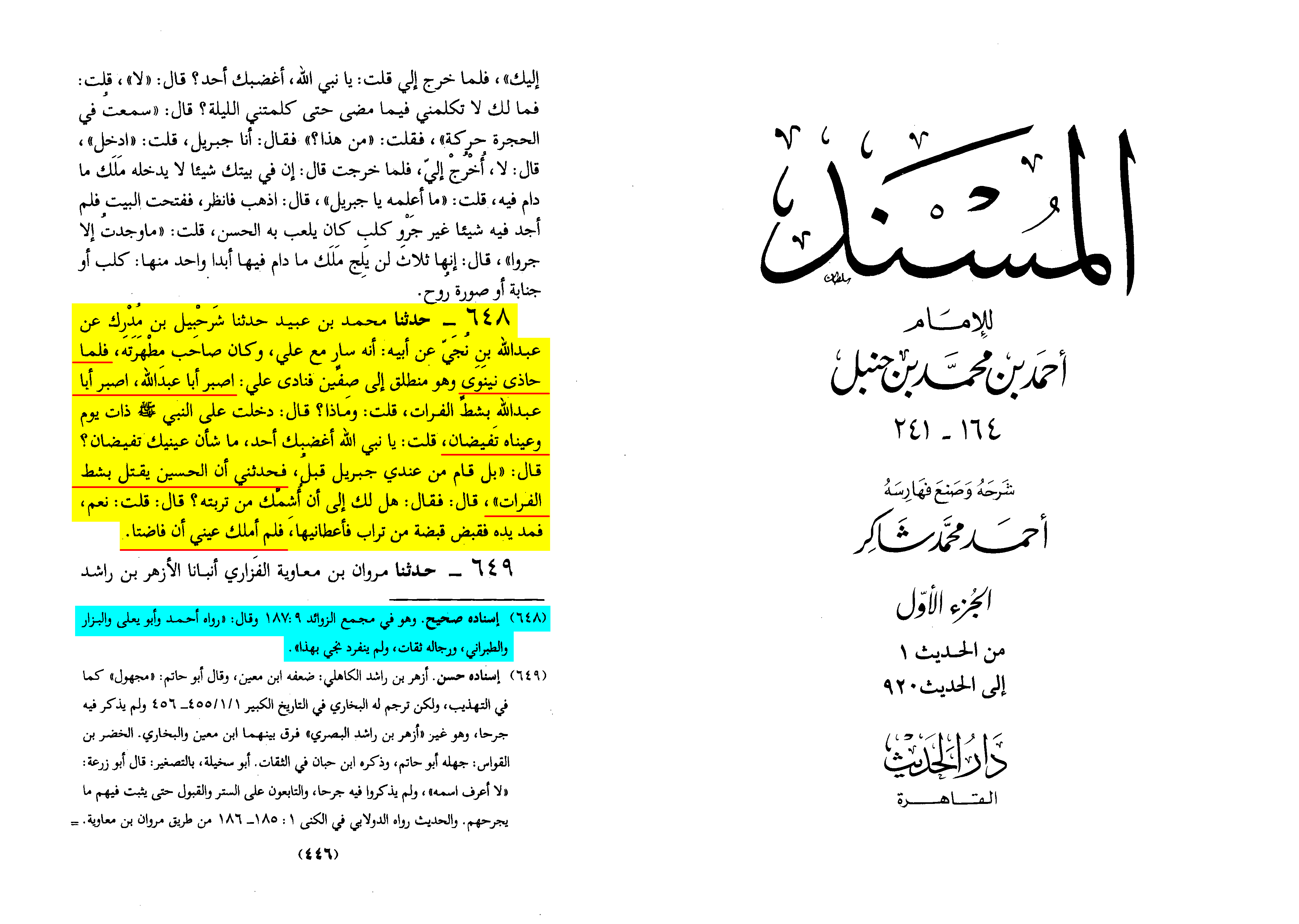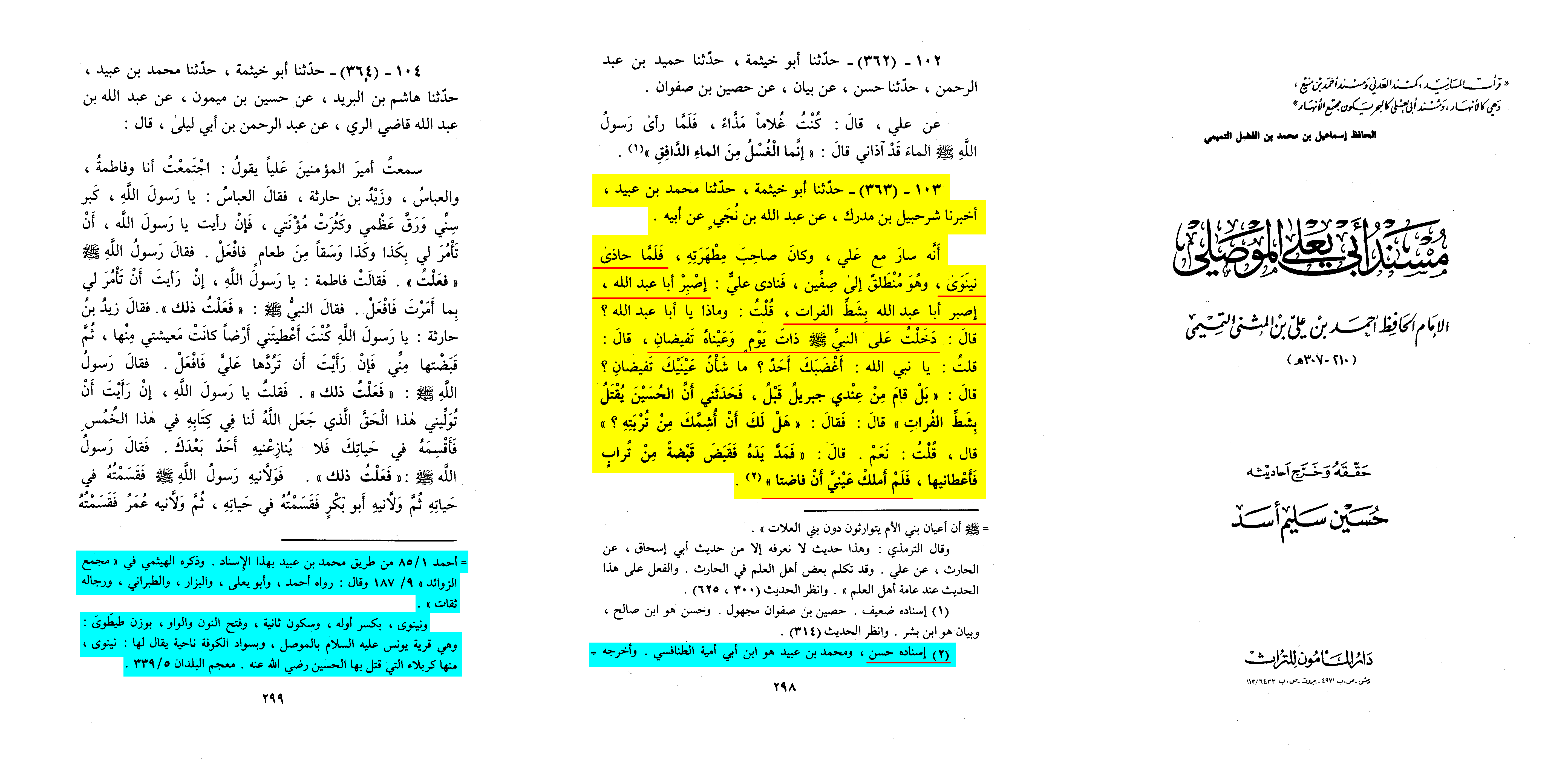 ‘Hasan’ in Musnad Abi Ya'la Vol 1, pg. 298, Hadith # 103-(363) by Dr. Sulaym Asad.