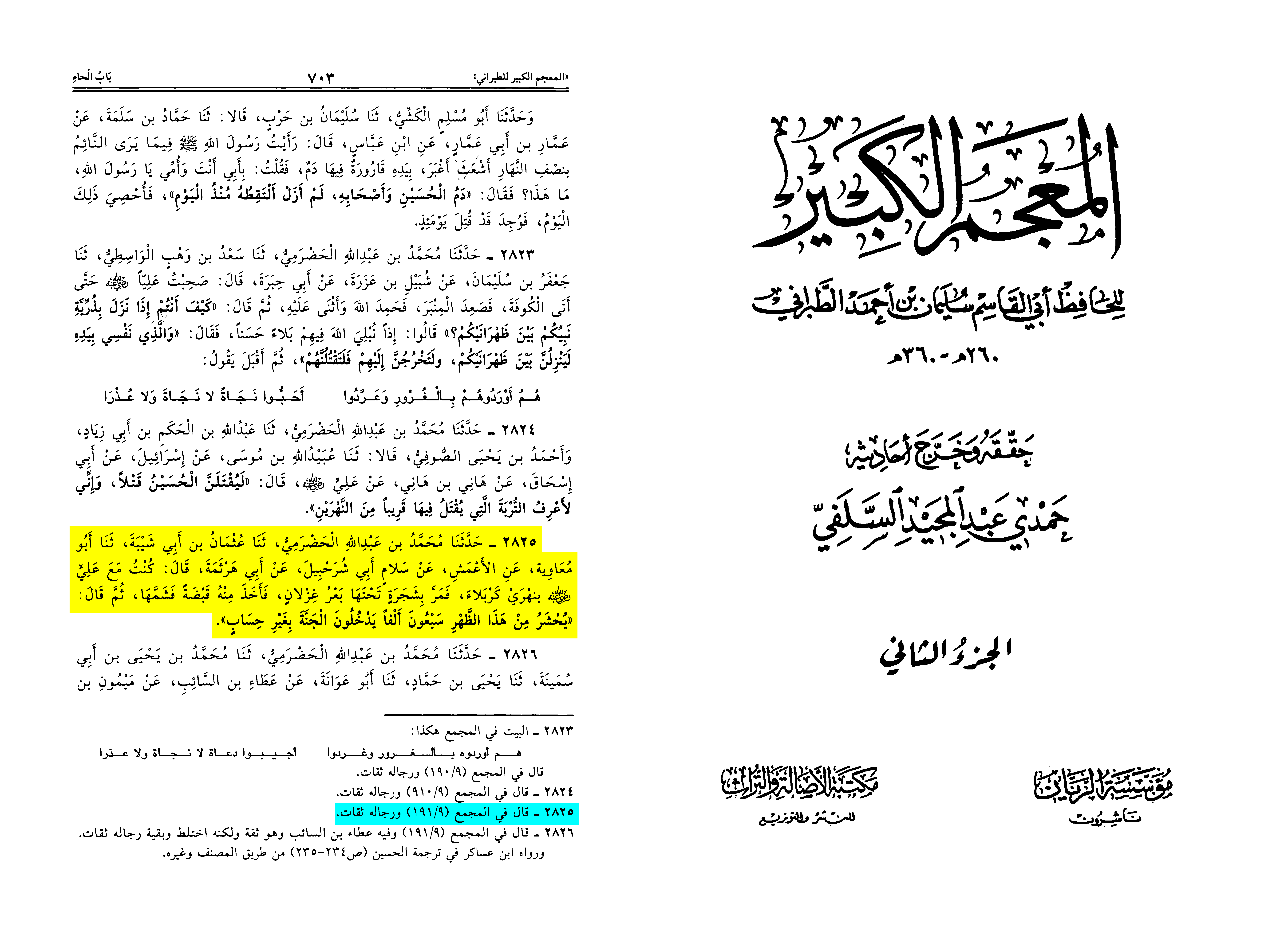 حَدَّثَنَا مُحَمَّدُ بْنُ عَبْدِ اللهِ الْحَضْرَمِيُّ، حَدَّثَنَا عُثْمَانُ بْنُ أَبِي شَيْبَةَ، ثنا أَبُو الْأَعْمَشِ، عَنْ سَلَّامٍ أَبِي شُرَحْبِيلَ، عَنْ أَبِي هَرْثَمَةَ، قَالَ: