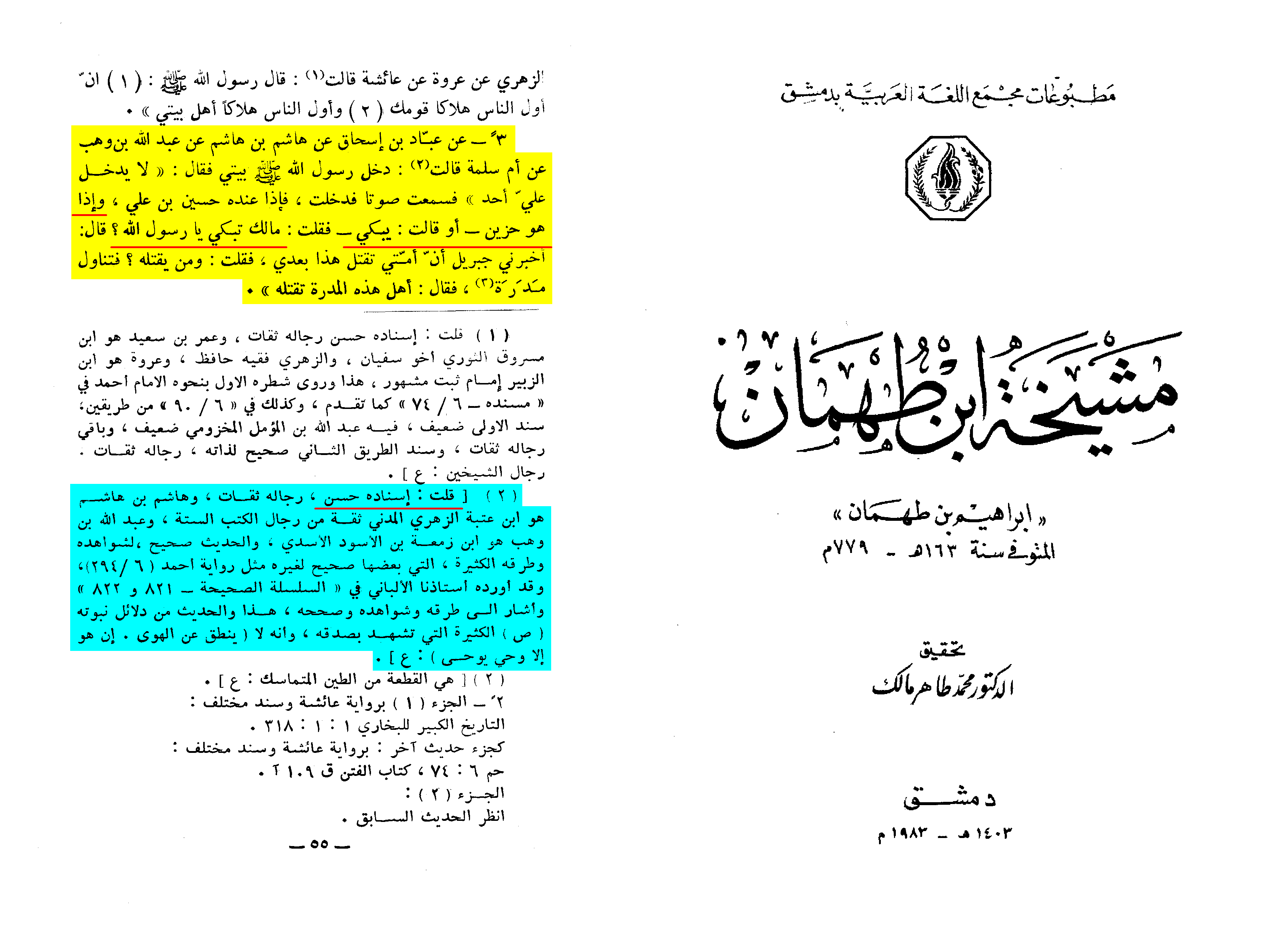 Umm al-Mu’mineen Umm Salamah (SA) is the most prolific narrator of this report. The Prophet (SAW) was in her house when Jibra’il (AS) came down to inform the Prophet (SAW) about the death of al-Husayn (AS). He mourned for his death, and prophesied that his killing would take place.