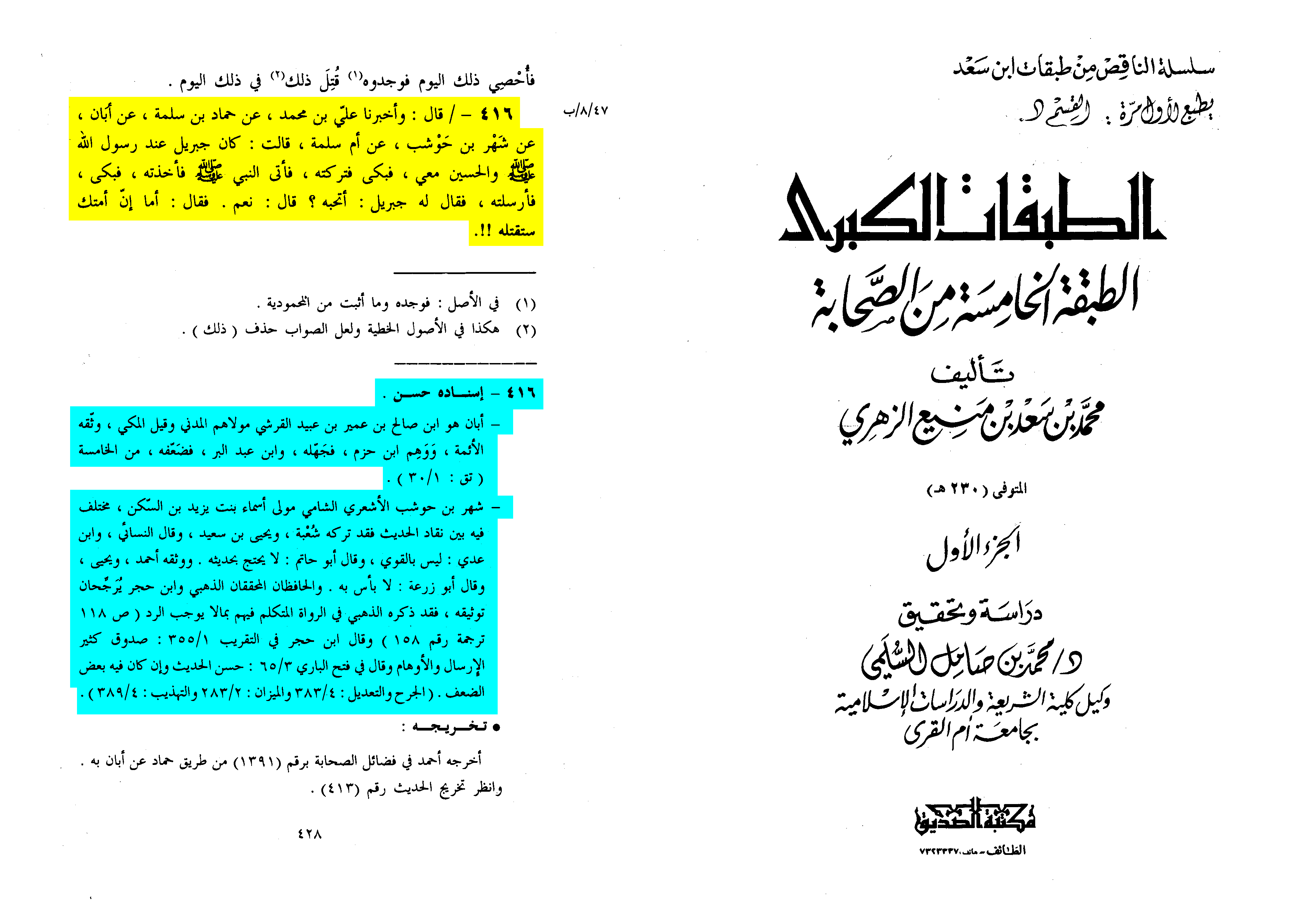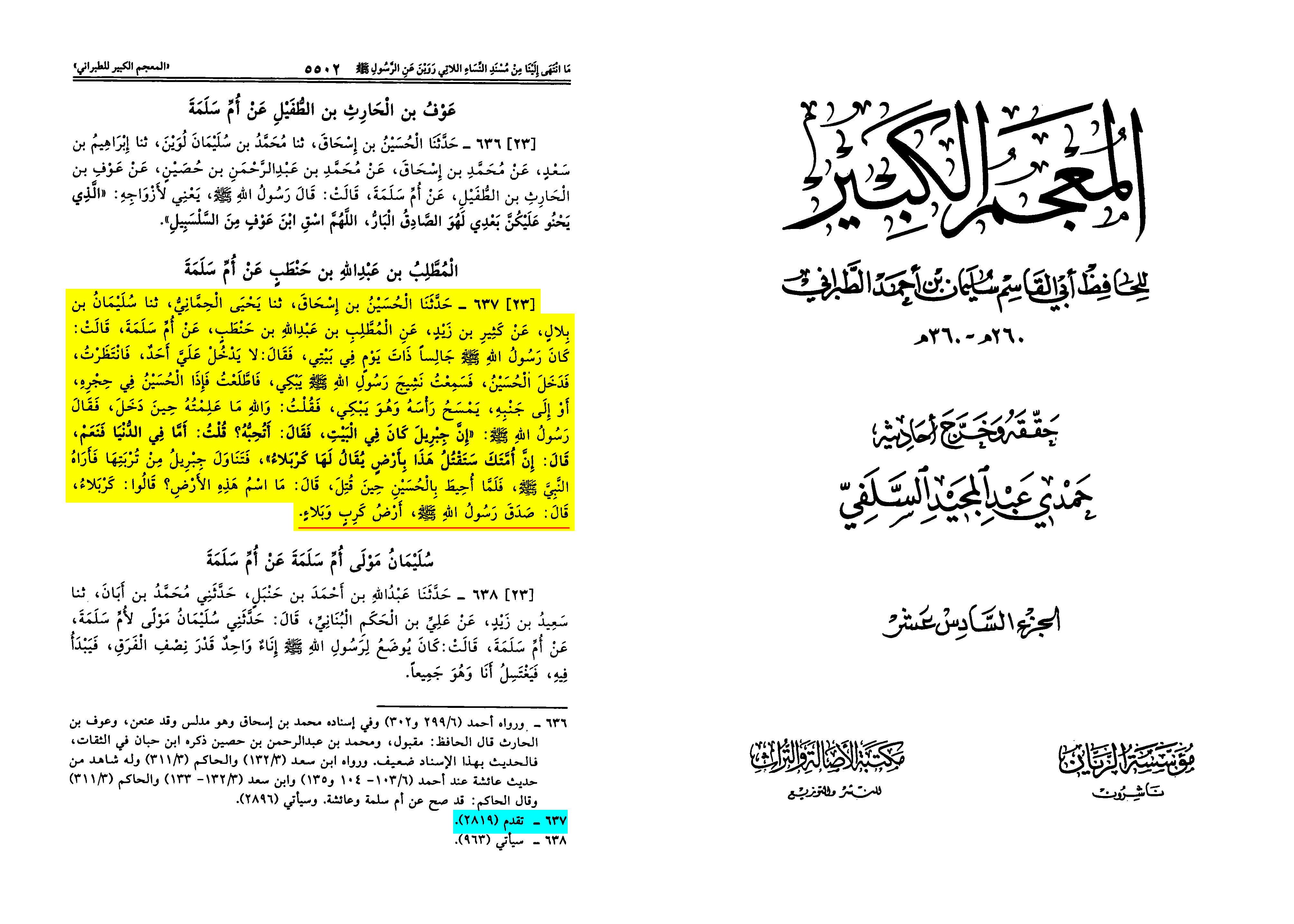 Shahr is another reliable narrator who narrates on the authority of Umm Salamah (SA) in Ahmad b. Hanbal’s Fada’il al-Sahaba Vol 2, pg. 782, Hadith # 1391: